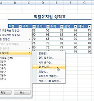 이번에는 정렬 대화상자를 이용하여 더욱 더 복잡한 정렬작업을 해보겠습니다.