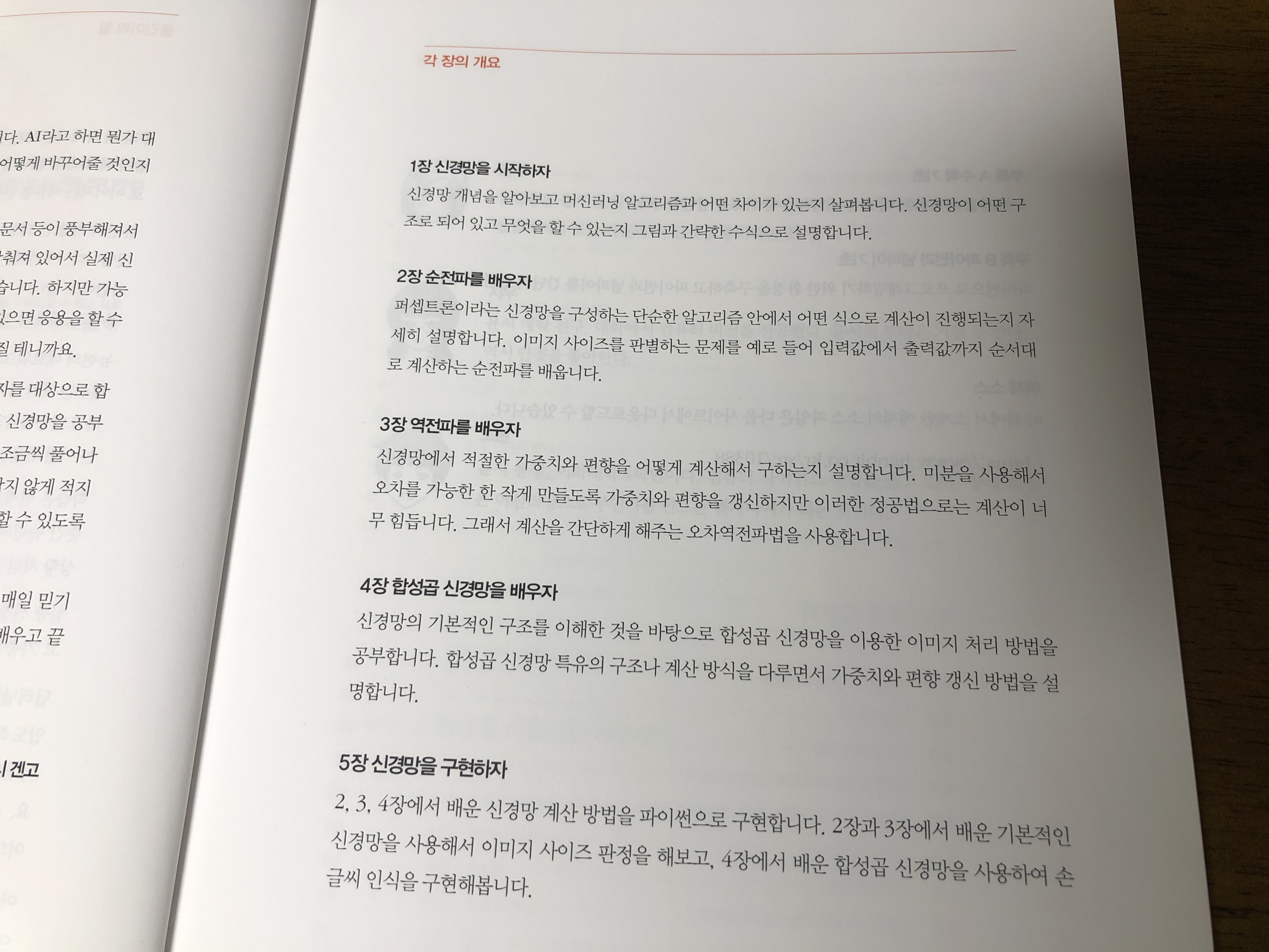 인공 신경망(딥러닝)은 인간의 뇌, 뉴런 네트워크가 기억을 형성하는 방식을 따릅니다. 계속 비슷한 패턴을 학습하는 방식으로 딥러닝(학습)이 이루어집니다. 이때 나오는 용어에는 가중치, 편향이 있습니다. 이런 용어부터 기초 하나하나 이 책에서 배울 수 있습니다. 인공 신경망 공부의 시작은 가장 단순한 알고리즘인 퍼셉트론으로 시작합니다. 처음에는 생소한 용어가 많아 불편한데 읽다 보면 적응이 됩니다.