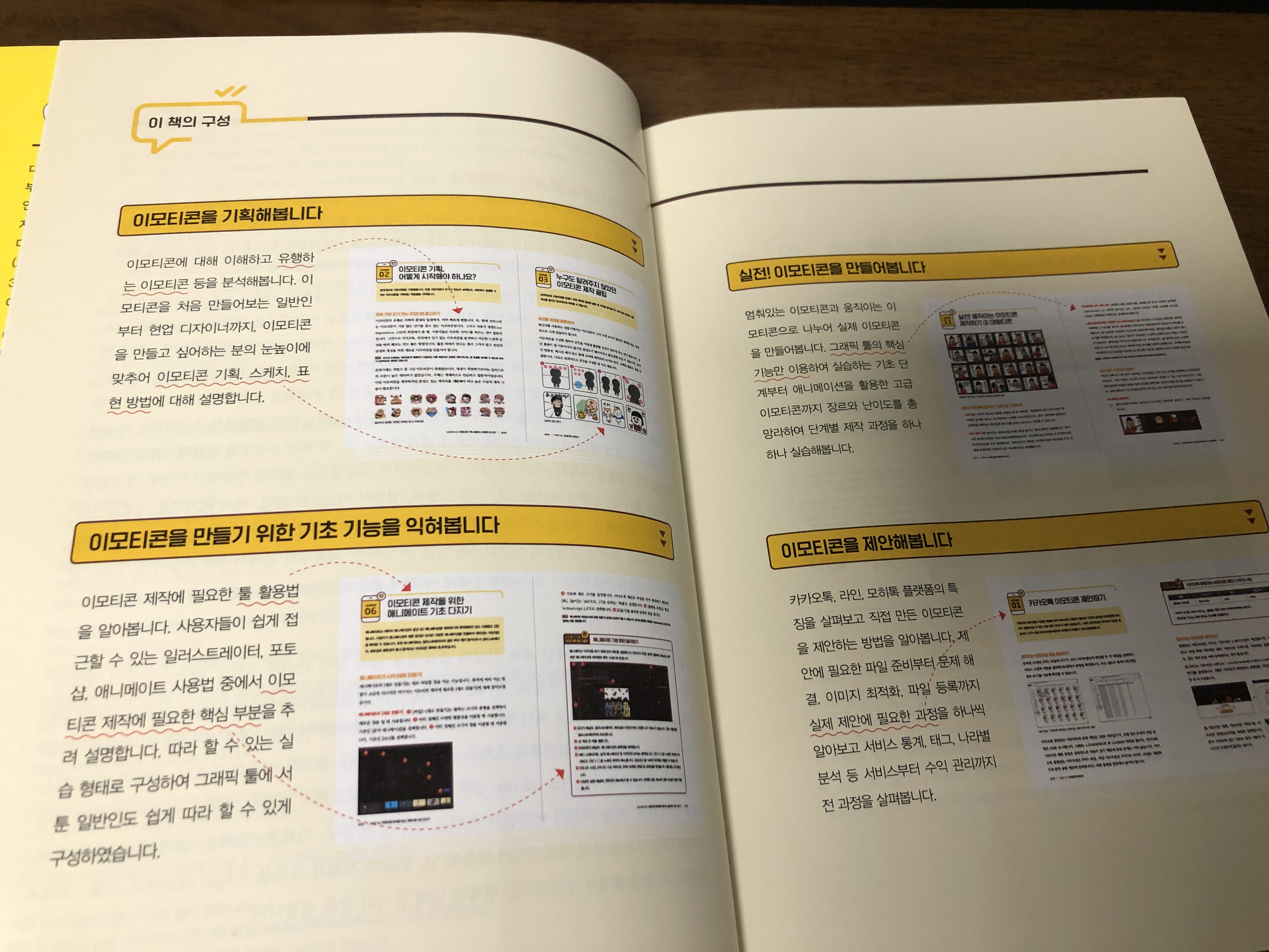 예전에 어디에선가 이모티콘으로 대기업 월급만큼 벌었다는 이야기를 본 적이 있습니다. 물론 쉬운 일은 아니겠지만 가능하다는 말이지요. 그래서 호시심에 책을 한 권 봤습니다. ‘이모티콘으로 돈 벌기’라는 책인데 제목과 딱 어울리는 내용이었습니다. 이 책은 총 5개의 파트로 되어 있습니다.