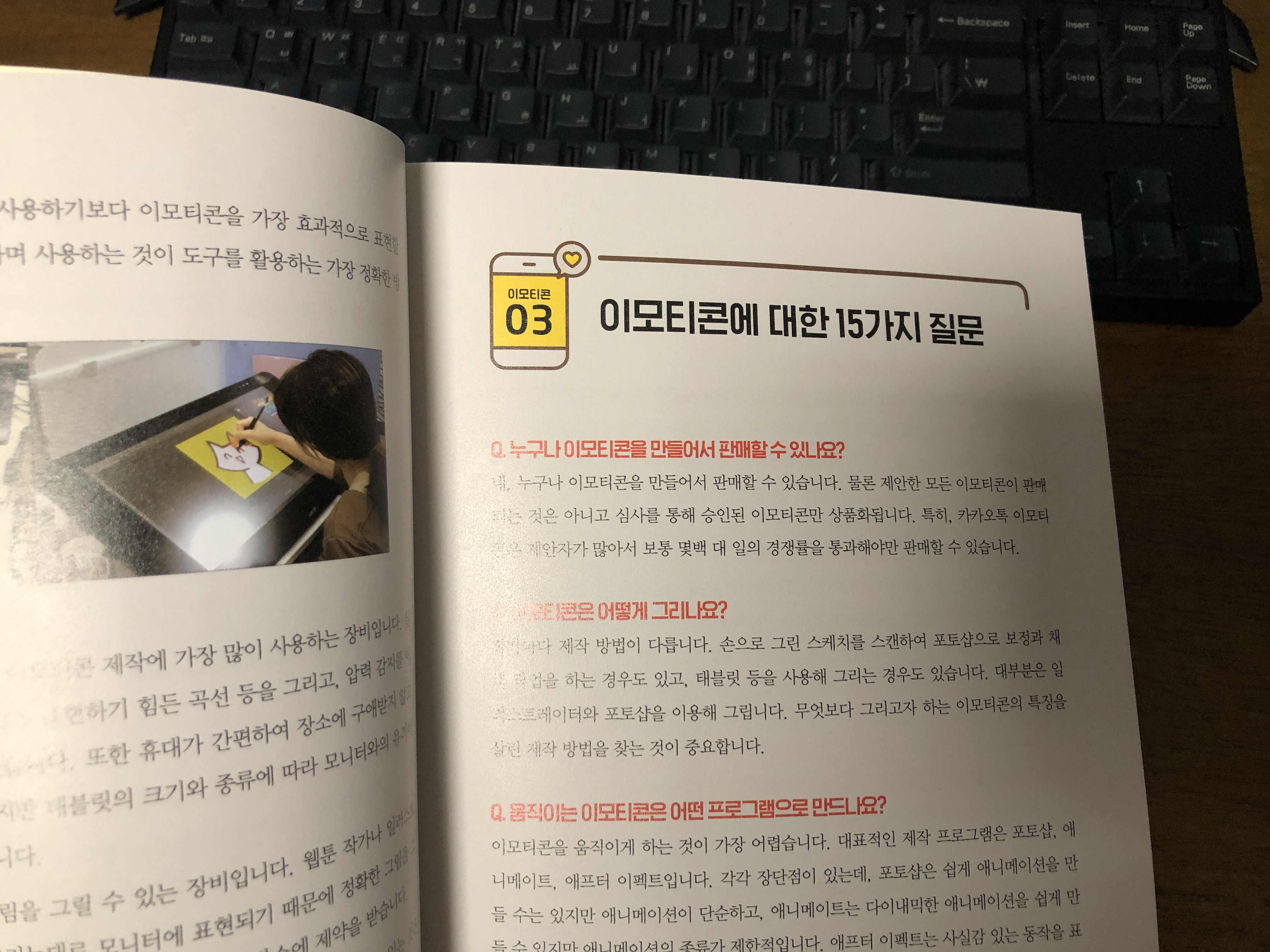 이모티콘 세계를 이해하는데 책 초반에 나오는 '이모티콘에 대한 15가지 질문'이 큰 도움이 되었습니다. 서점 가서 바쁘면 이 부분만이라도 한번 쭈욱 읽어보세요.