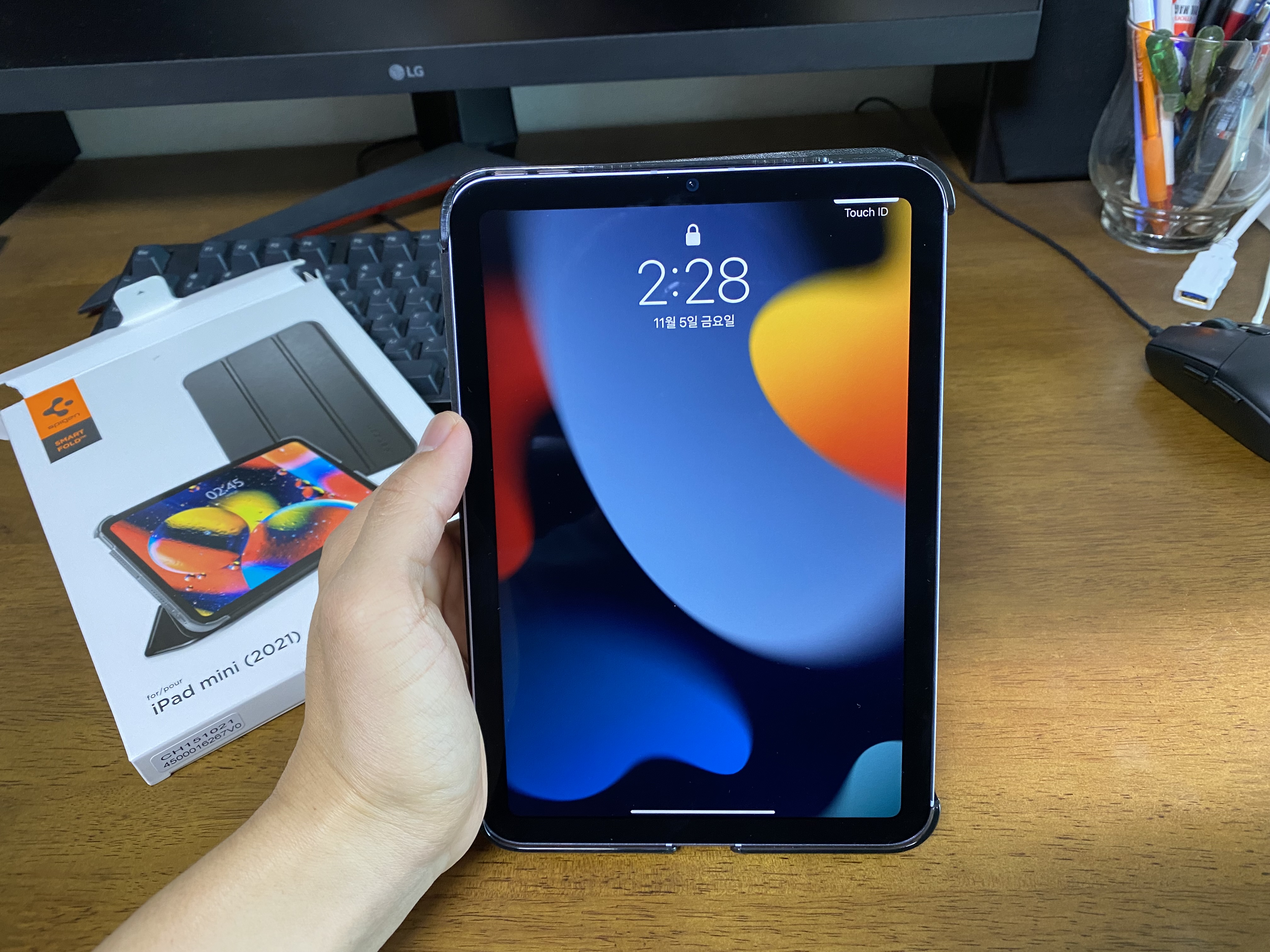 슈피겐 케이스에 아이패드 미니6을 장착한 모습