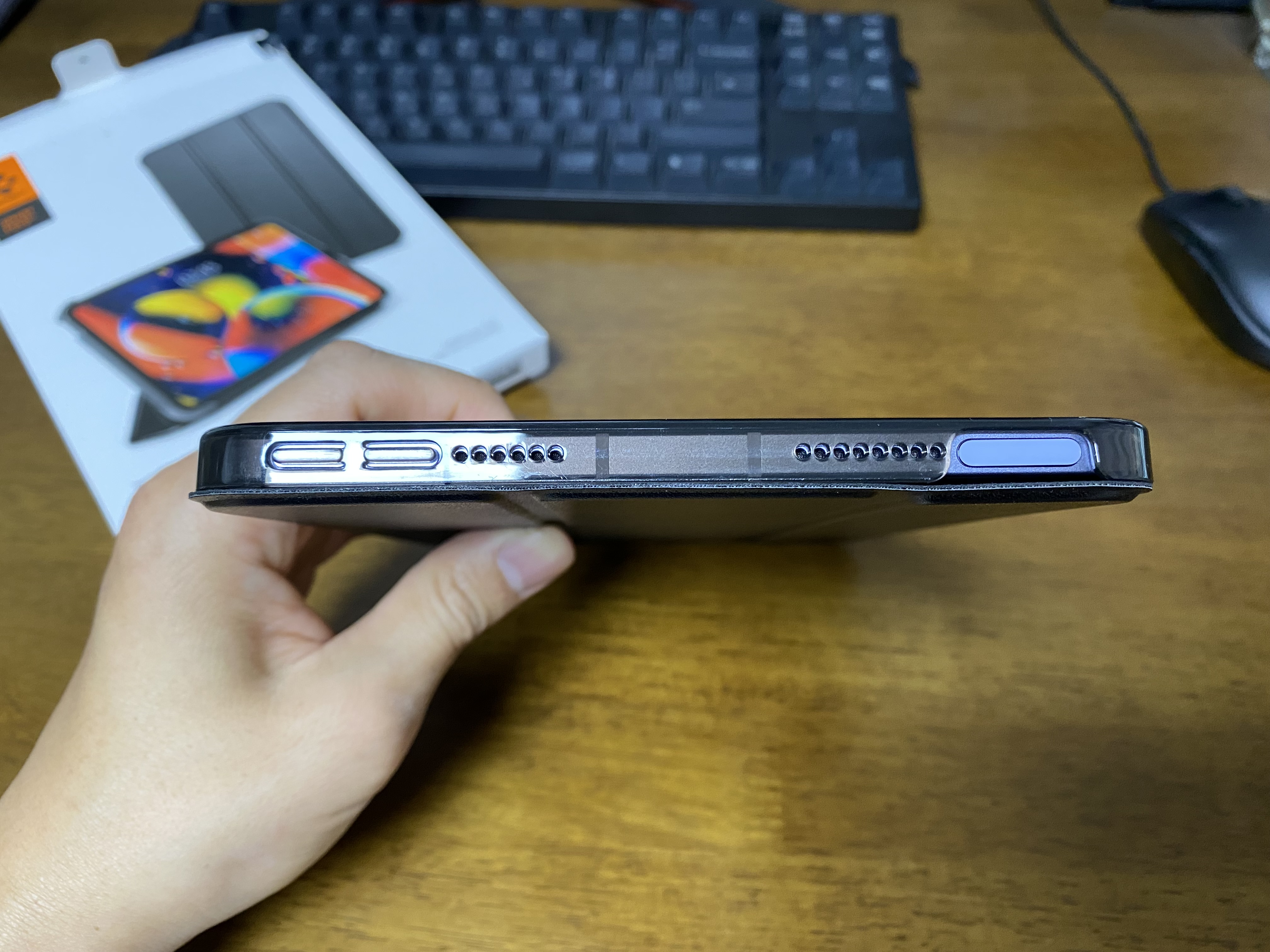 저렴한 케이스는 뒤로 밀면 삼각 지지대가 풀리는 경우가 있는데 이 제품은 자력이 좋아서 웬만해서는 풀리지 않습니다. 예전에 사용하던 아이패드 미니4 케이스와는 차원이 다르네요.