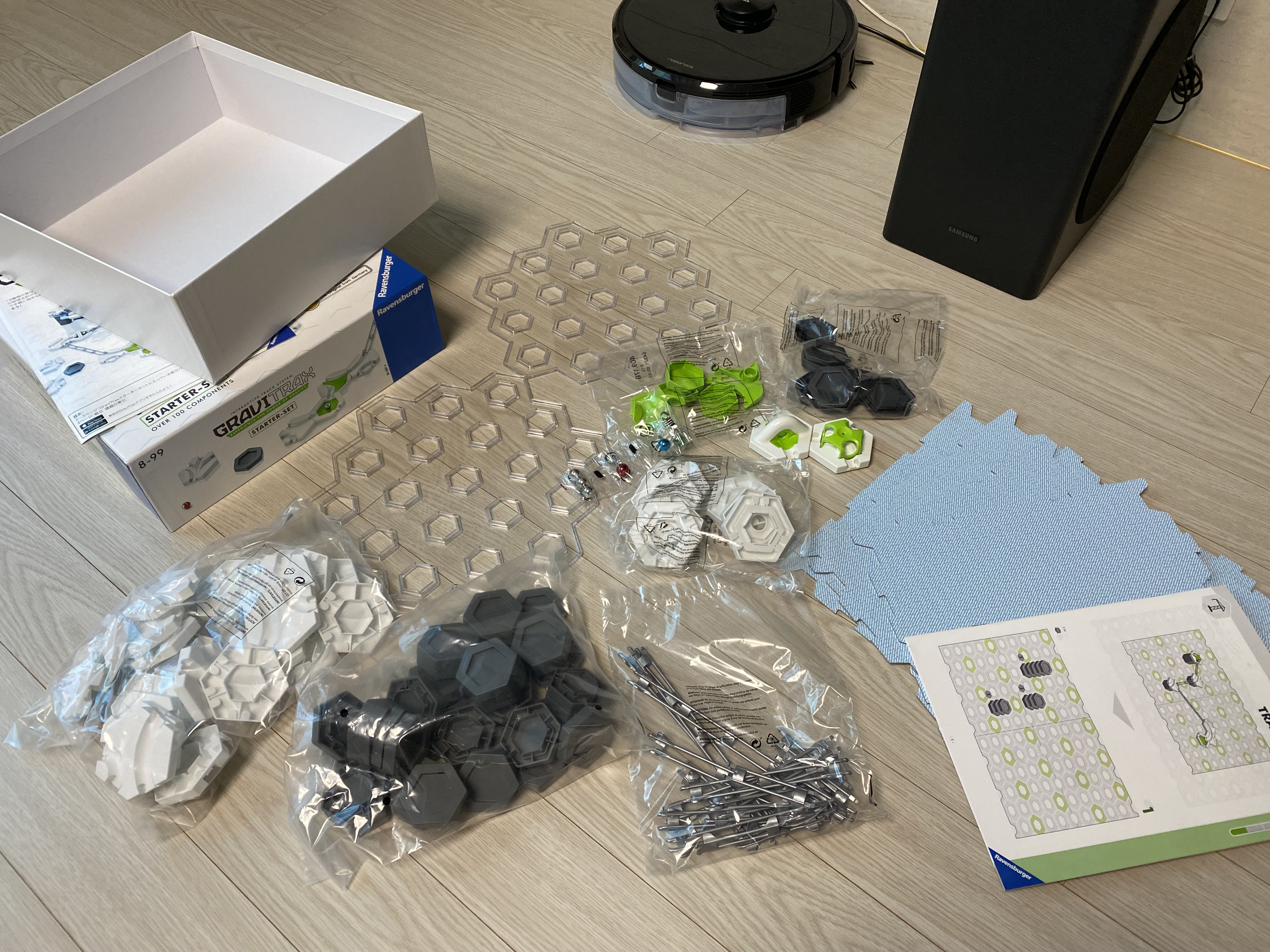 그래비트랙스 스타터 세트. 광고에 나오는 신기한 트랙을 만들기 위해서는 더 많은 제품을 구매해야 하는 것을 알았습니다. 제품 퀄리티가 좋아서 아이들이 잘 갖고 놀면 구성품을 더 구매할 생각입니다. 근데 2~3일 잘 놀다 지금은 잠시 창고에 들어가 버렸습니다. 언제 돌아올지는 모르겠네요.