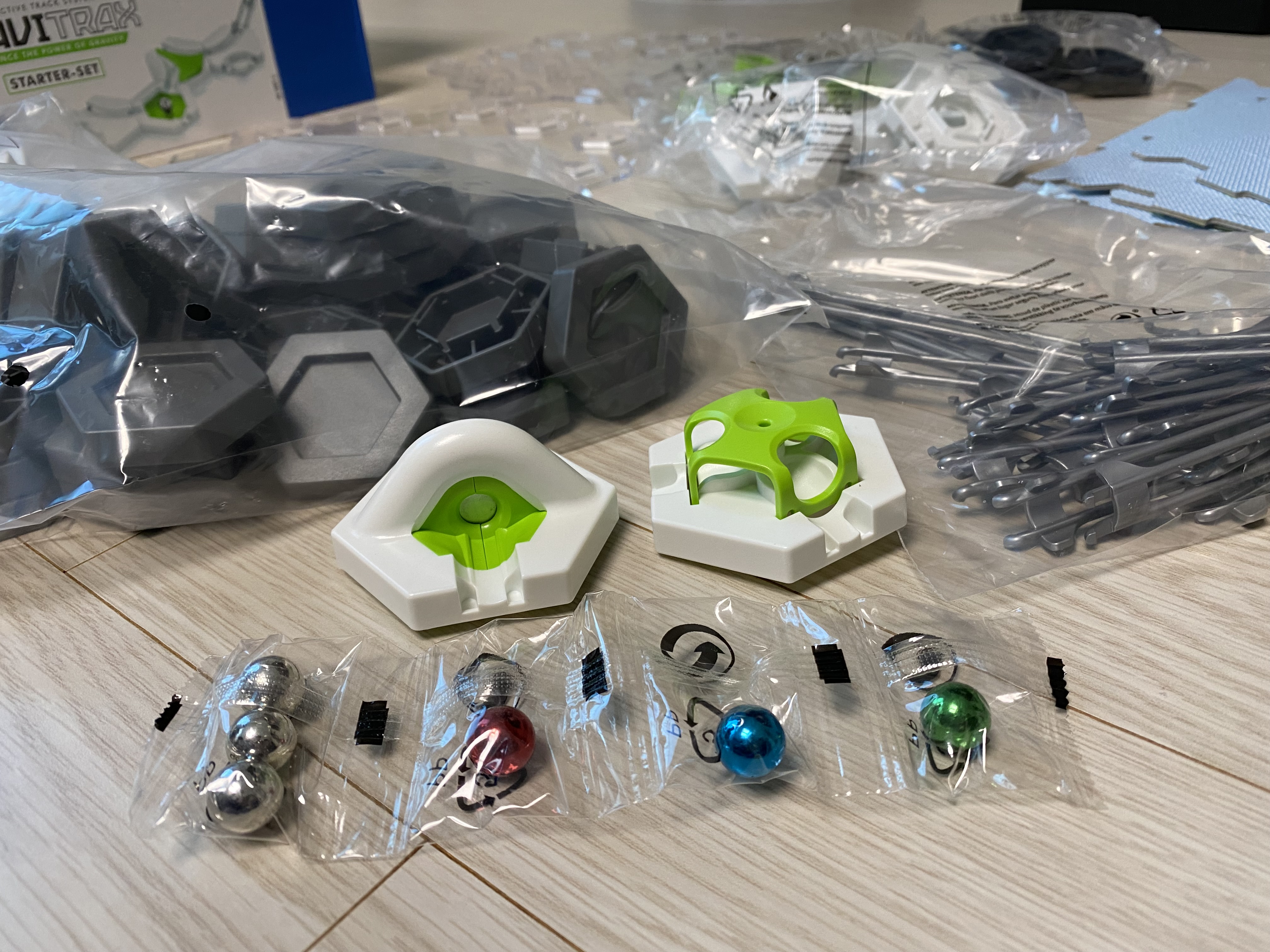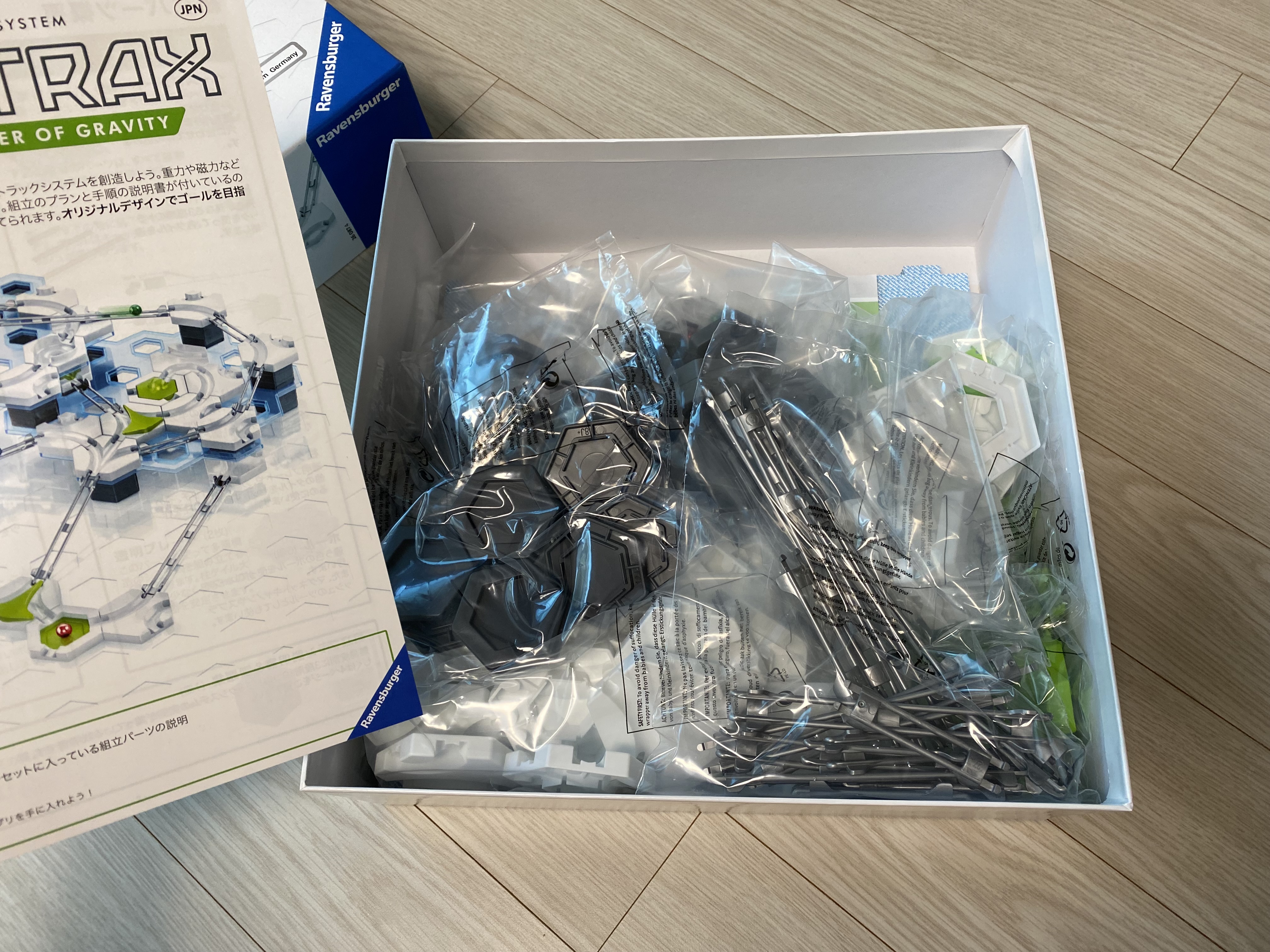 그래비트랙스 스타터 세트 구성품은 대강 이렇습니다. 여기서 팁을 드리자면 부품 봉지를 개봉할 때 가위로 잘 열어서 최대한 봉지를 재활용하세요. 부품이 섞이고 돌아다니면 찾기 어렵거든요.