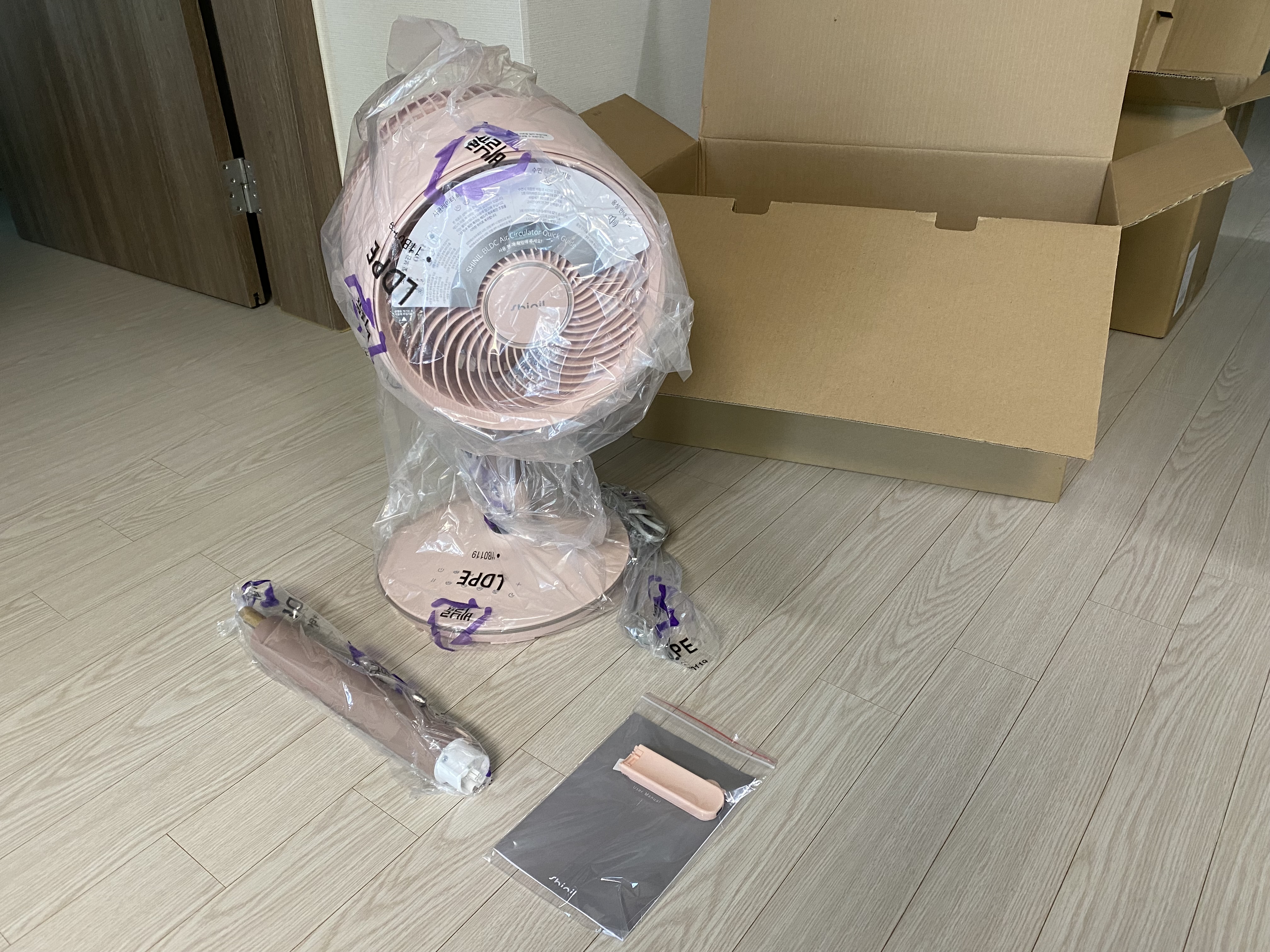 신일 3D BLDC 공기순환기 SIF-KF30M를 개봉한 모습.