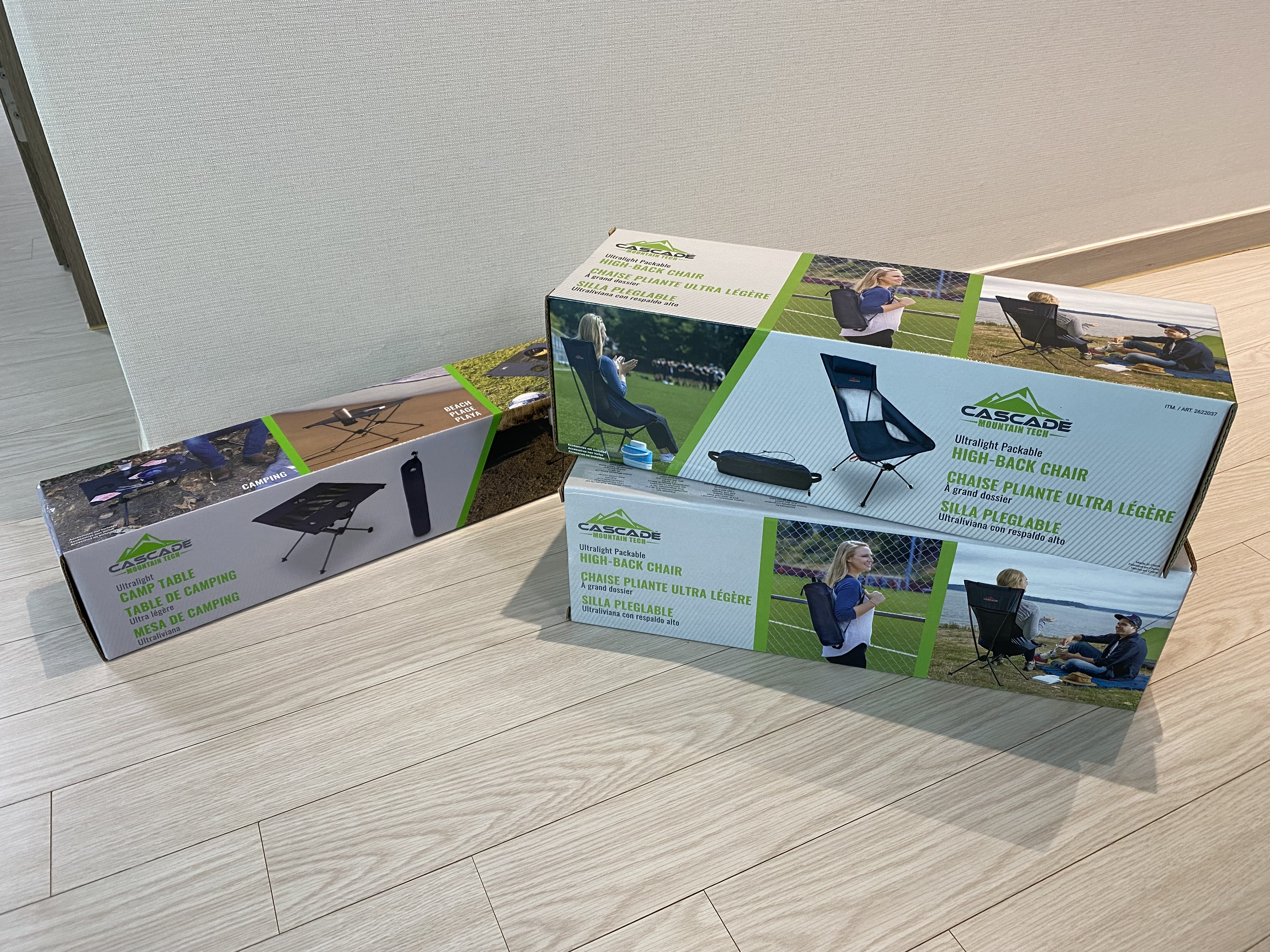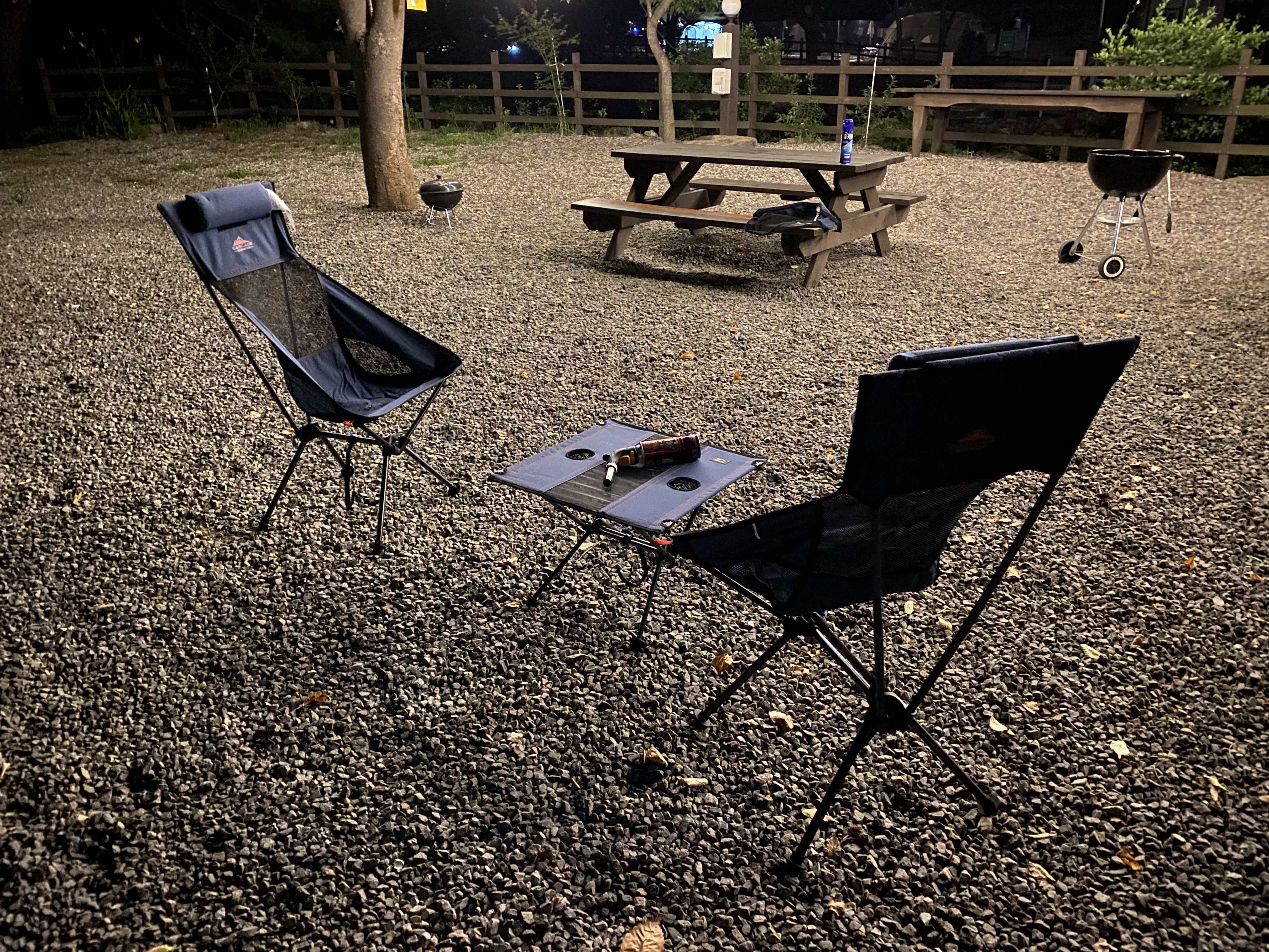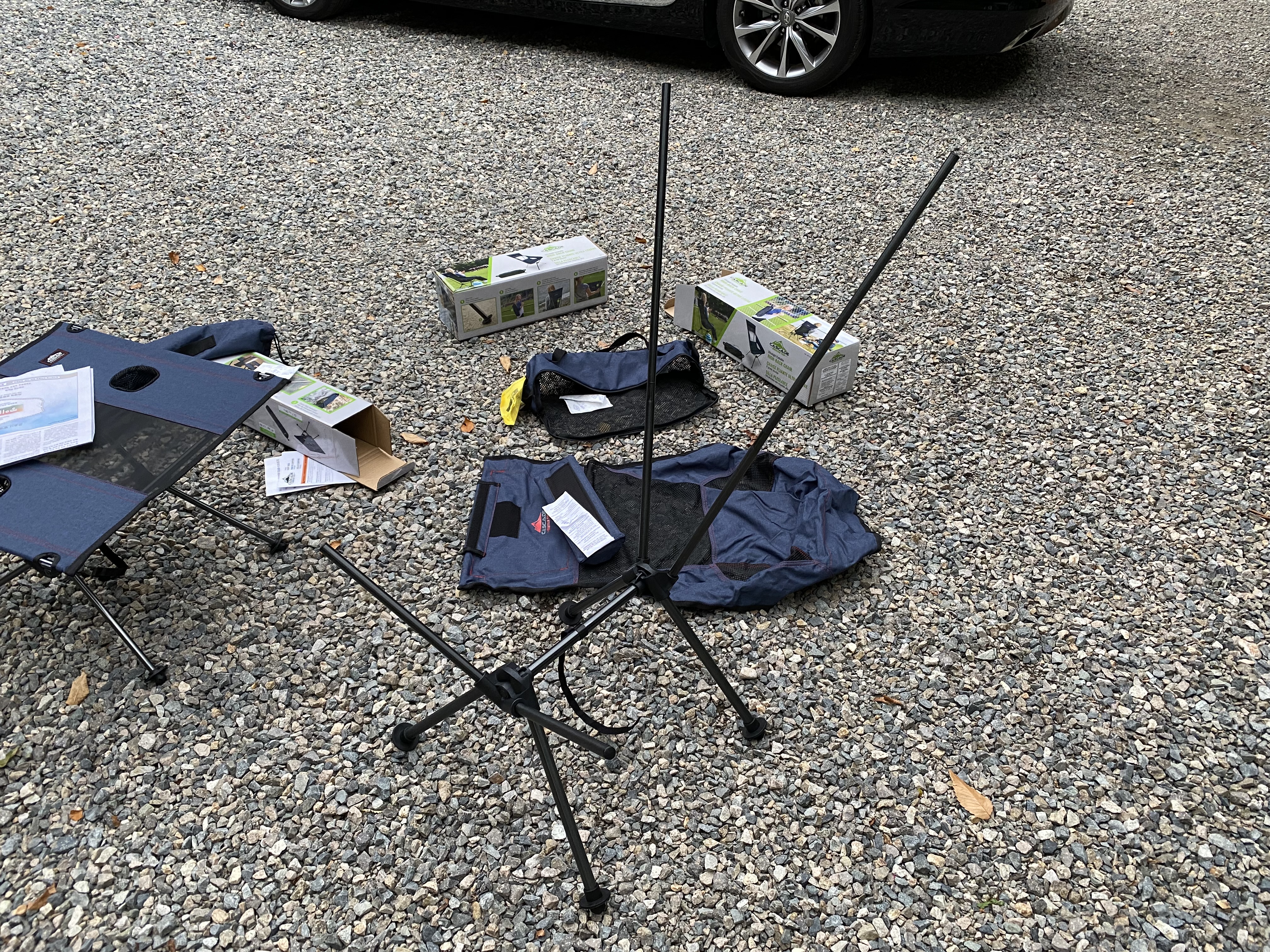 캐스케이드 캠핑용 의자 2개와 접이식 테이블 1개를 사 왔습니다.