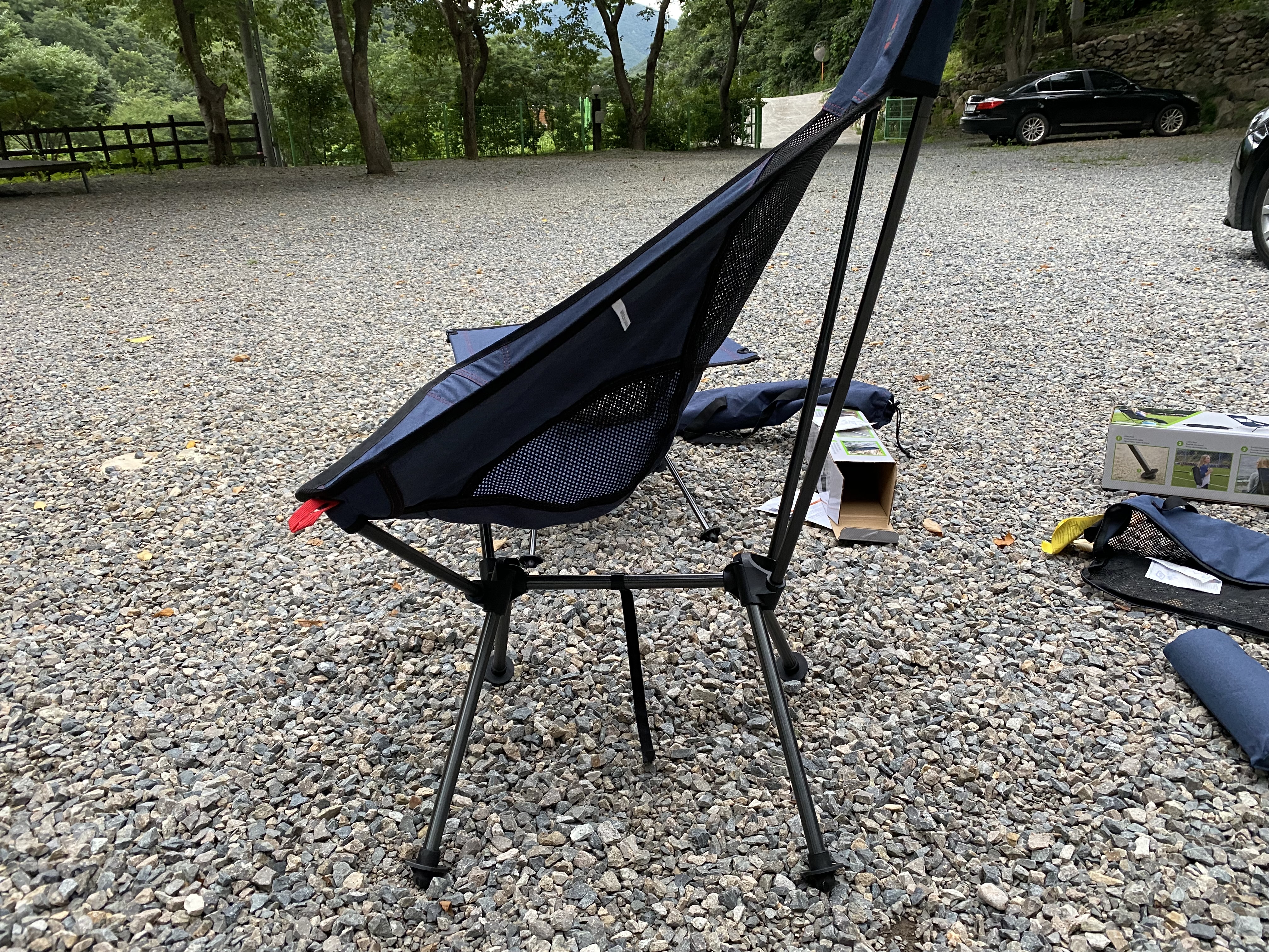 캐스케이드 패커블 하이백 체어도 쓸만합니다. 다른 제품이 없어서 비교는 불가능하지만 생각보다 가볍고 괜찮네요. 진짜 편하다고는 할 수 없지만 앉는 위치를 조절하면 최적의 자세를 찾을 수는 있습니다. 이 프레임으로 113킬로까지 커버가 가능하다고 하는데 테스트는 못해봤습니다. 아이를 안고 (100킬로 정도가) 앉아도 큰 문제는 없었습니다. 고장 없이 오래 사용 가능하다면 정말 잘 만든 제품이라 생각합니다. 일단 가격이 저렴하니까요. 접는 것도 조립의 역순이라 큰 문제없이 해체해서 가방에 다시 넣을 수 있습니다.