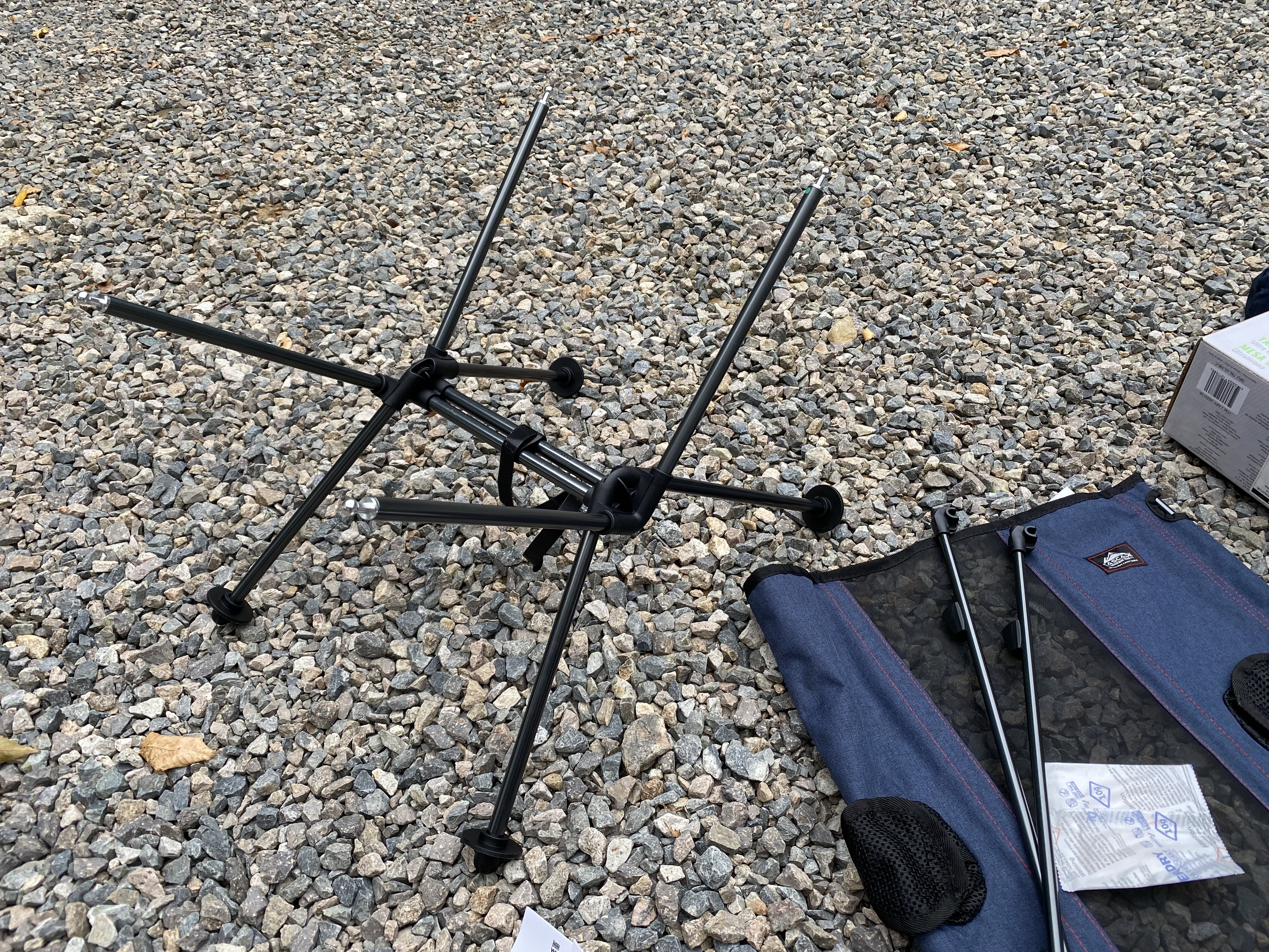 캐스케이드 패커블 캠핑 체어를 조립한 모습. 프레임에 의자천을 끼우면 되는데 3개는 쉽게 연결이 되고 마지막 하나는 조금 힘을 줘서 연결하면 됩니다. 정말 간단합니다.