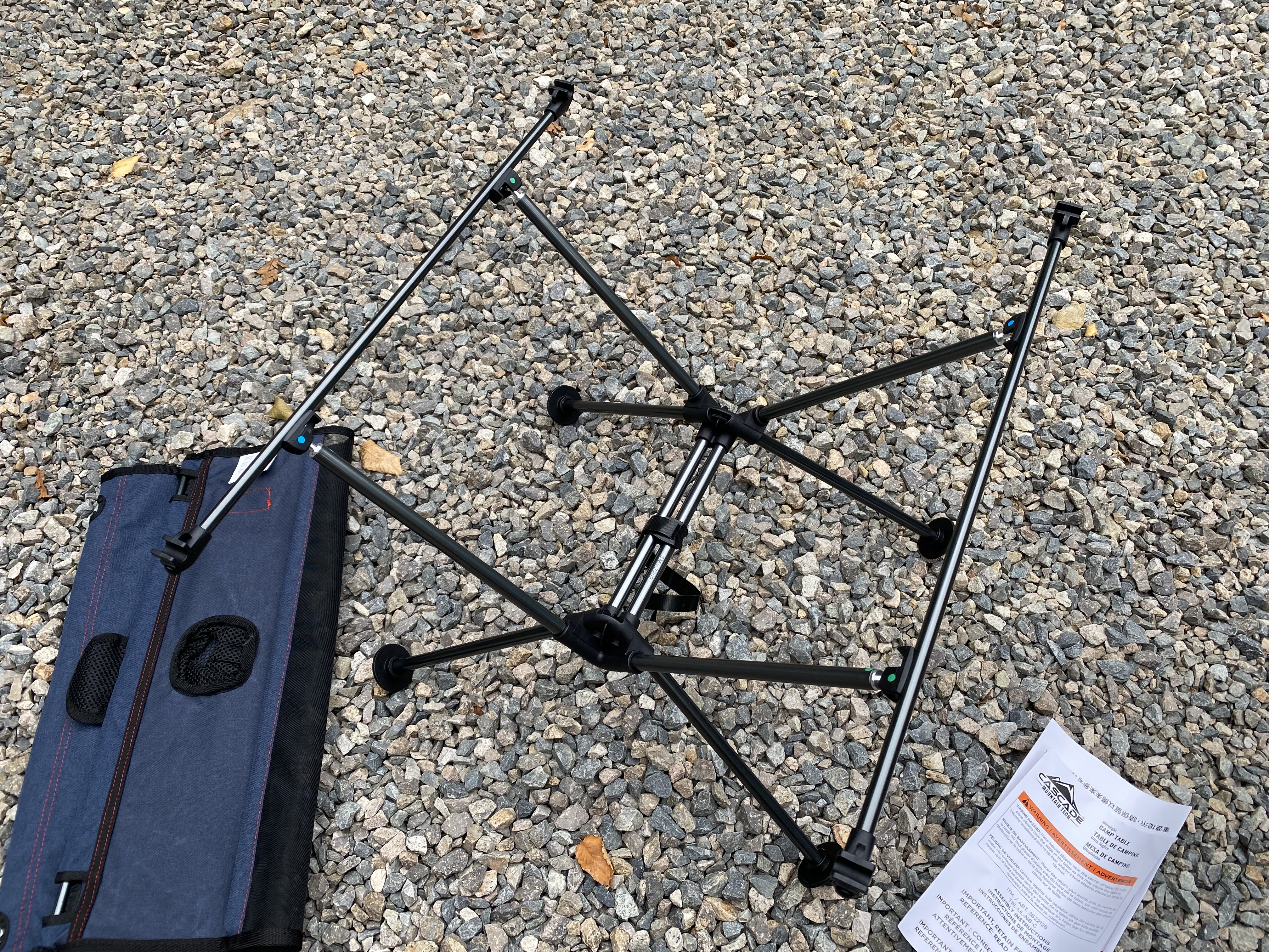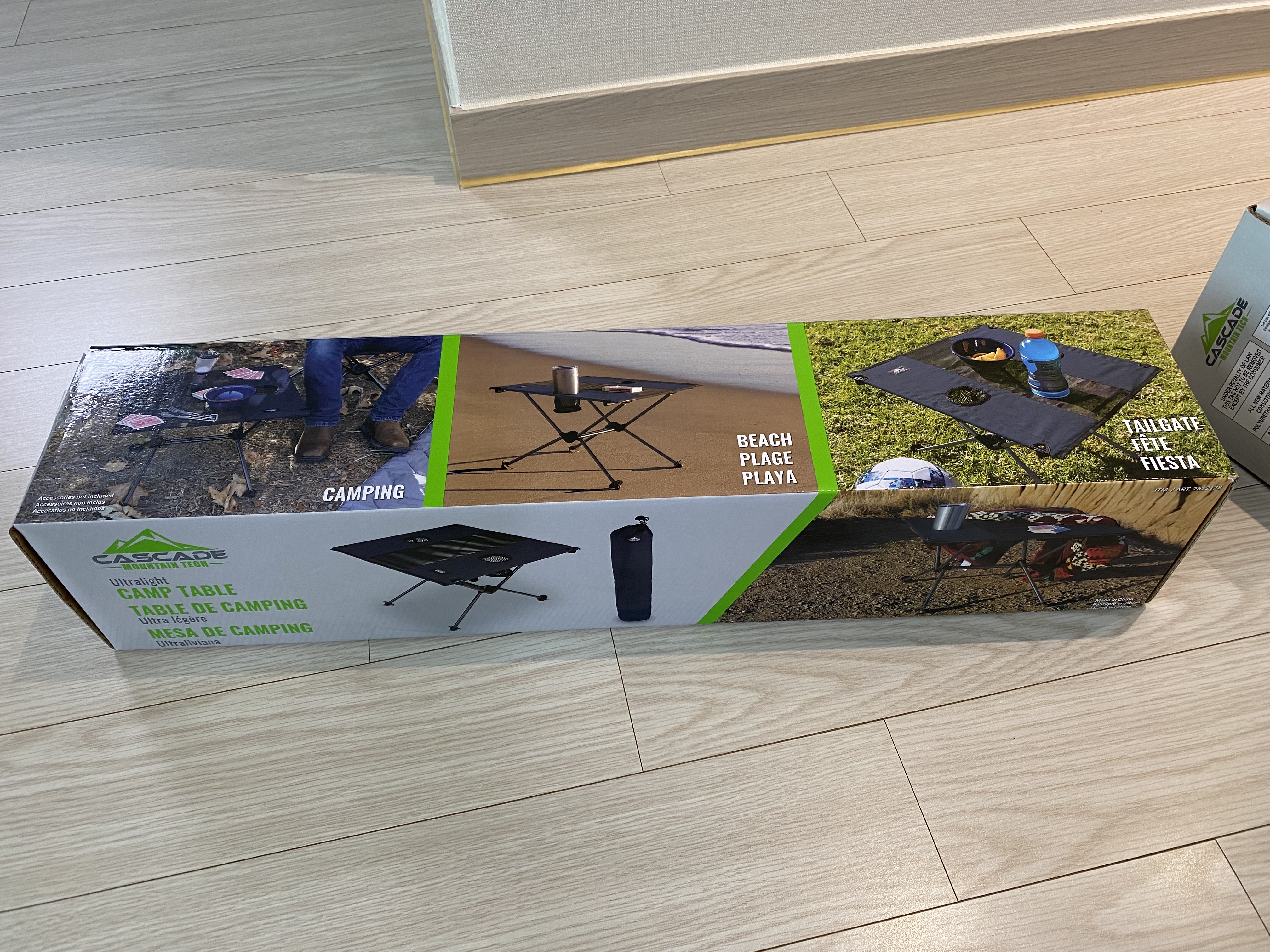 캐스케이드 접이식 테이블을 개봉한 모습.