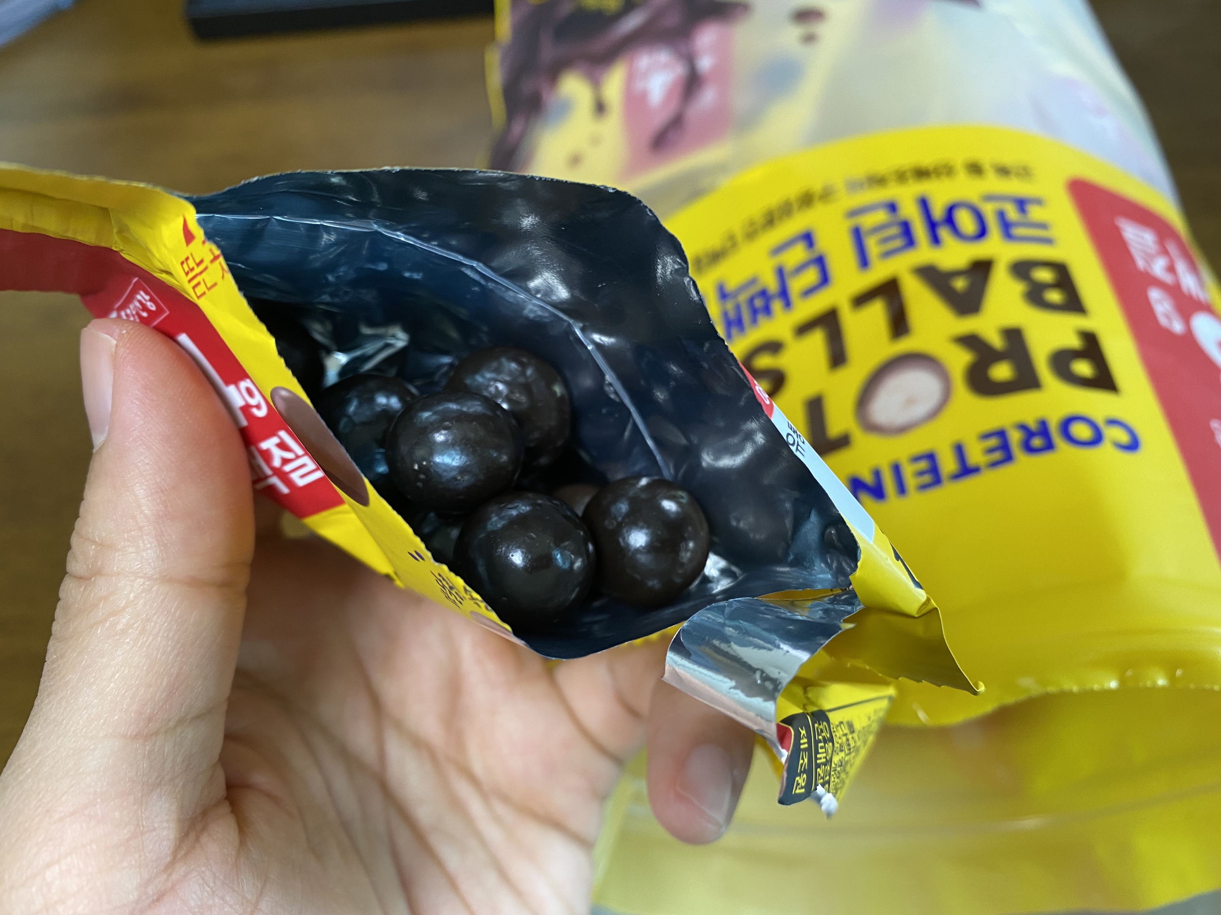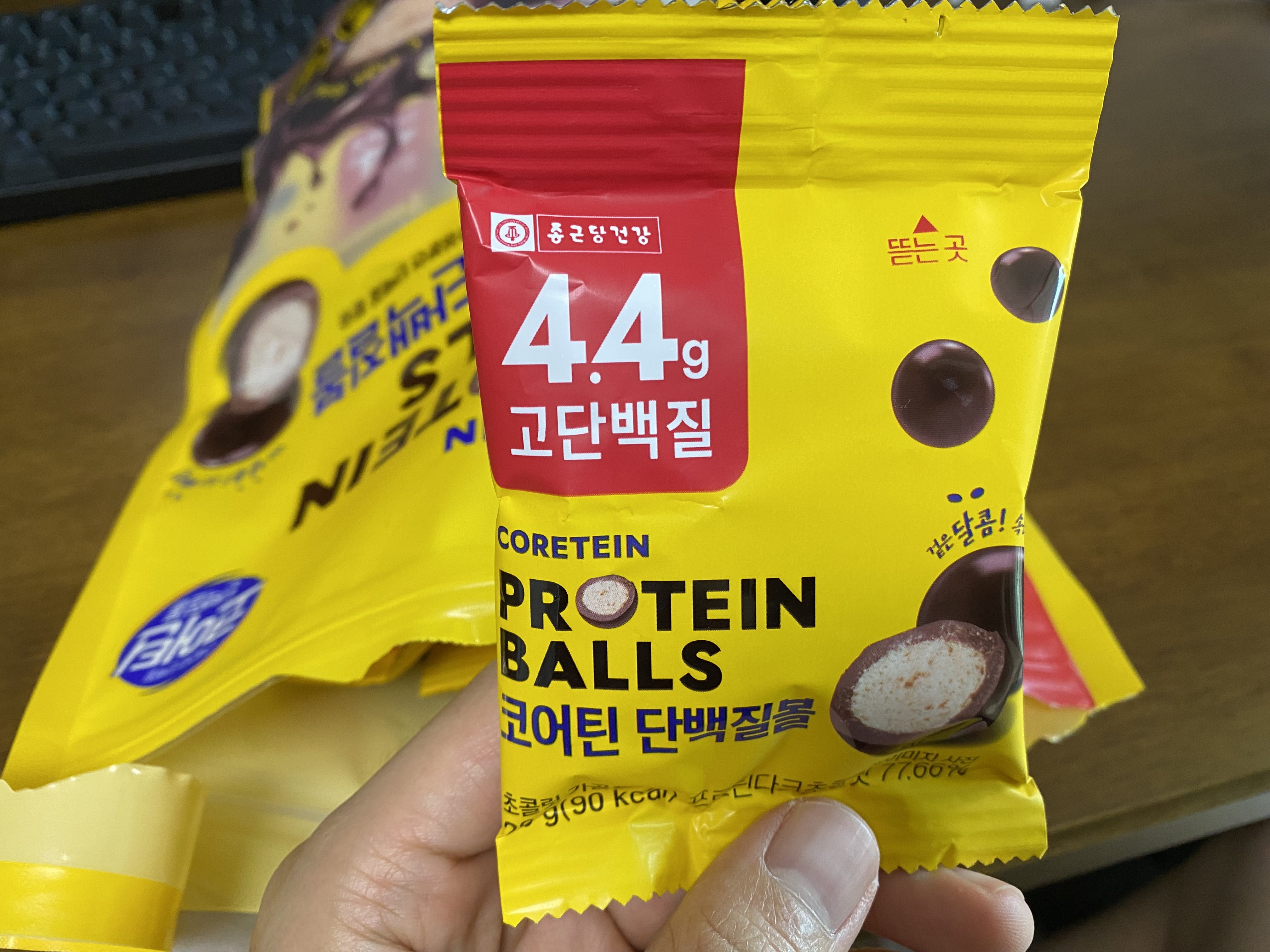 종근당건강 코어틴 단백질볼. 생각보다 맛은 나쁘지 않습니다. 겉은 초콜릿이고 안은 바삭한 과자라 맛이 없을 수가 없는 구조입니다. 근데 역시 단백질이 많이 들어서 그런지 끝 맛이 어색한 건 어쩔 수가 없네요. 아이들도 처음에는 잘 먹다가 나중에 어색함을 느낍니다. 근데 못 먹을 정도는 아닙니다. 한봉 정도는 기분 좋게 먹을 수 있습니다. 다음에 또 살지 말지는 고민이 됩니다. 다양한 방법으로 단백질을 보충하고 싶은 분에게 추천합니다.