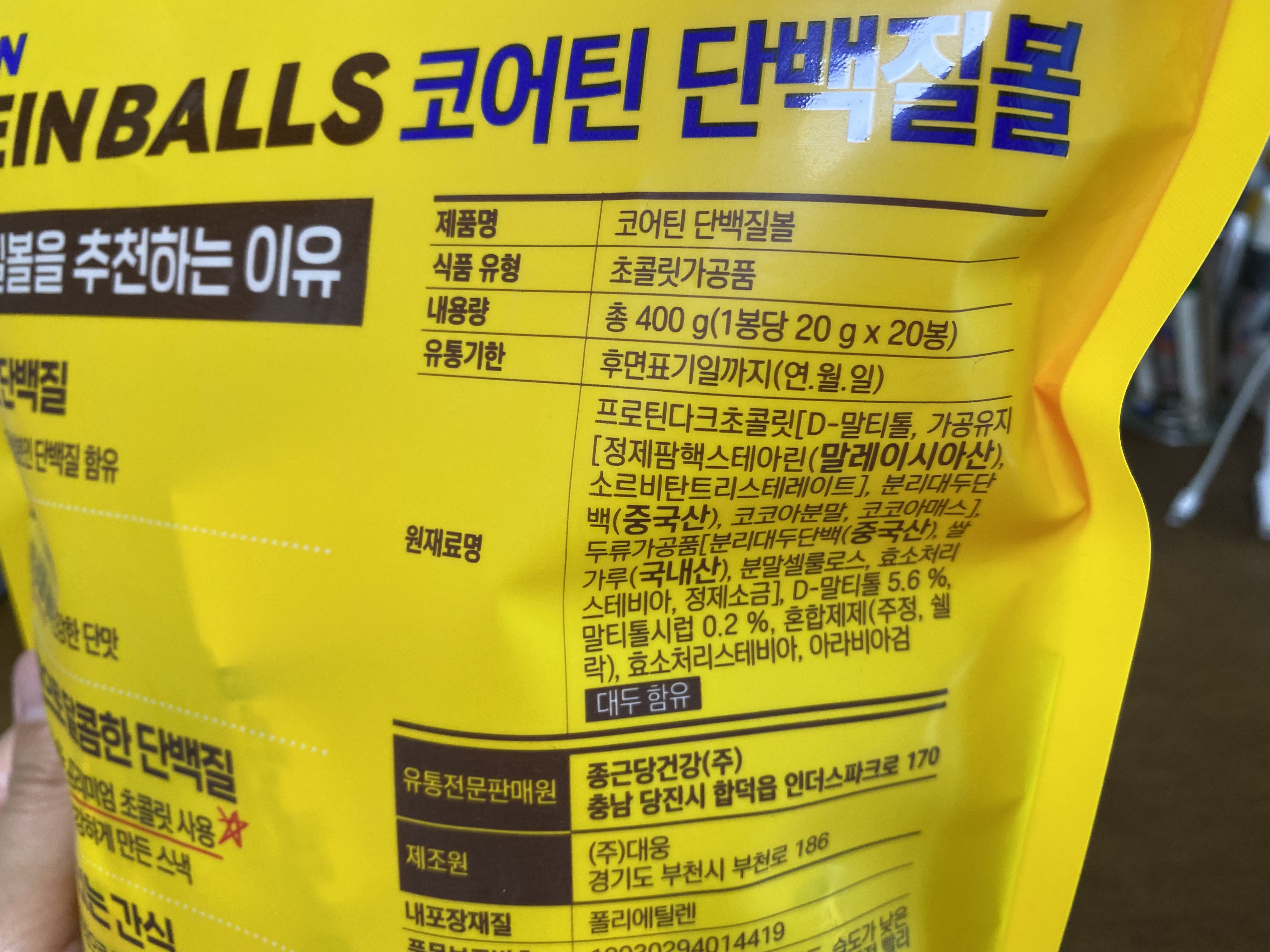 사실 종근당건강 코어틴 단백질볼을 산 가장 큰 이유는 우유가 안 들어서입니다. 가족 중 한 명이 우유 알레르기가 있어서 새로 나온 간식에 우유가 없으면 속는 셈 치고 한번 사봅니다.