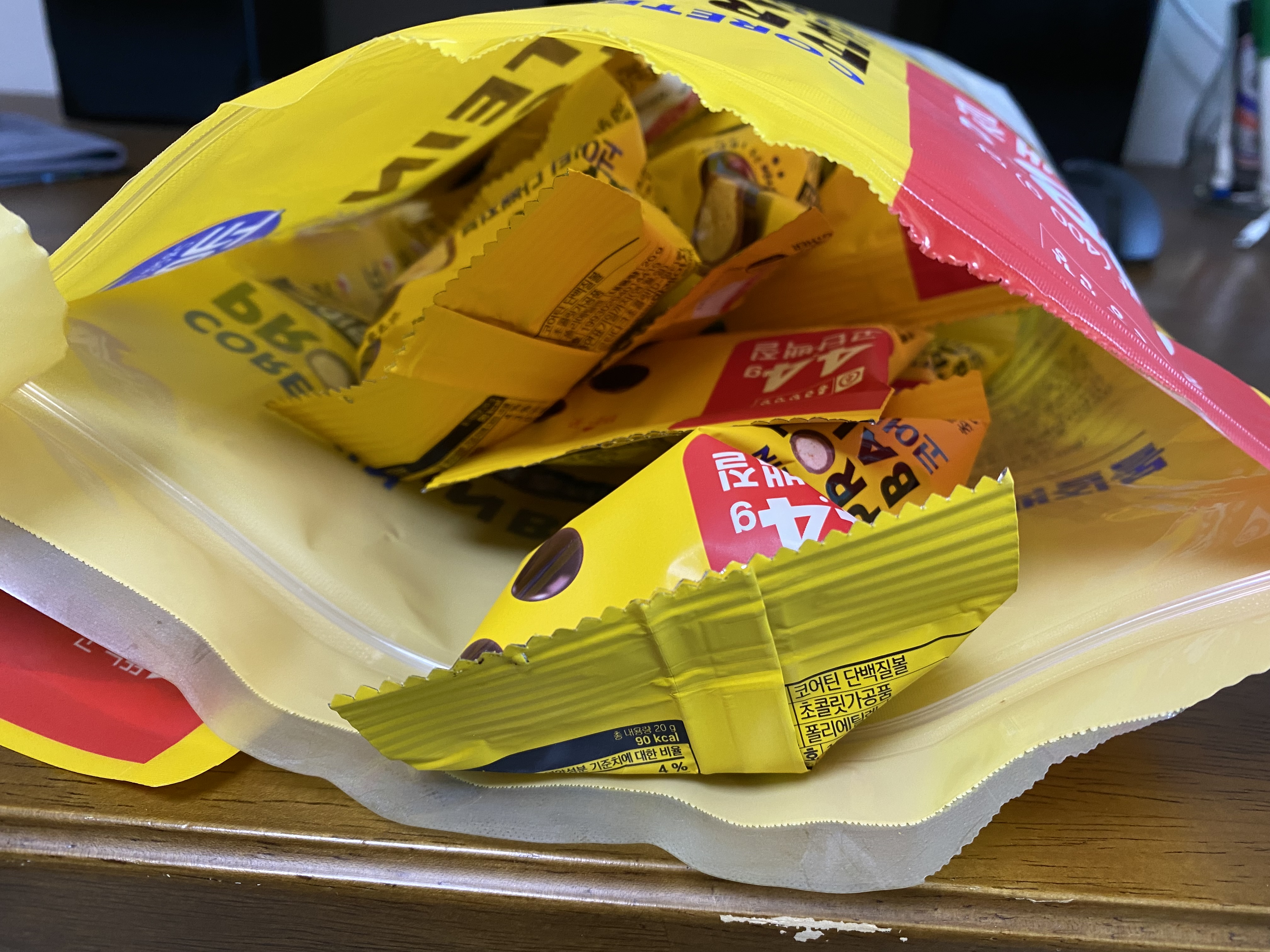 낱개 포장이 되어 있어서 하나씩 까먹기 좋습니다.