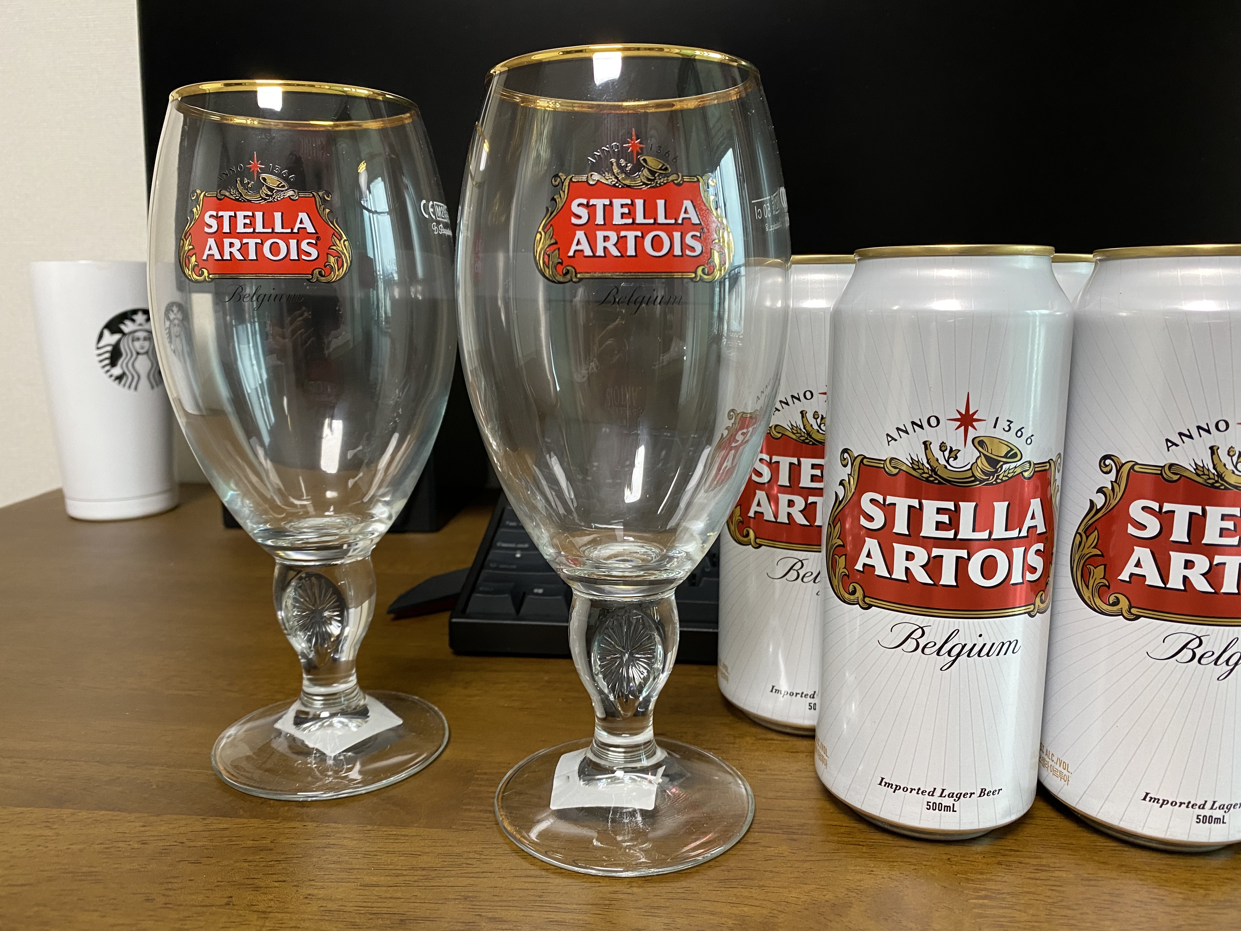 스텔라 아르투아 전용잔 세트. 잘 산 것 같습니다. 이 맥주잔을 겟하기 전에는 칼스버그 전용잔을 주로 썼는데 이제는 이걸로 대체할 생각입니다. 이 잔으로 마시니 다른 맥주도 다 맛있어 보입니다.