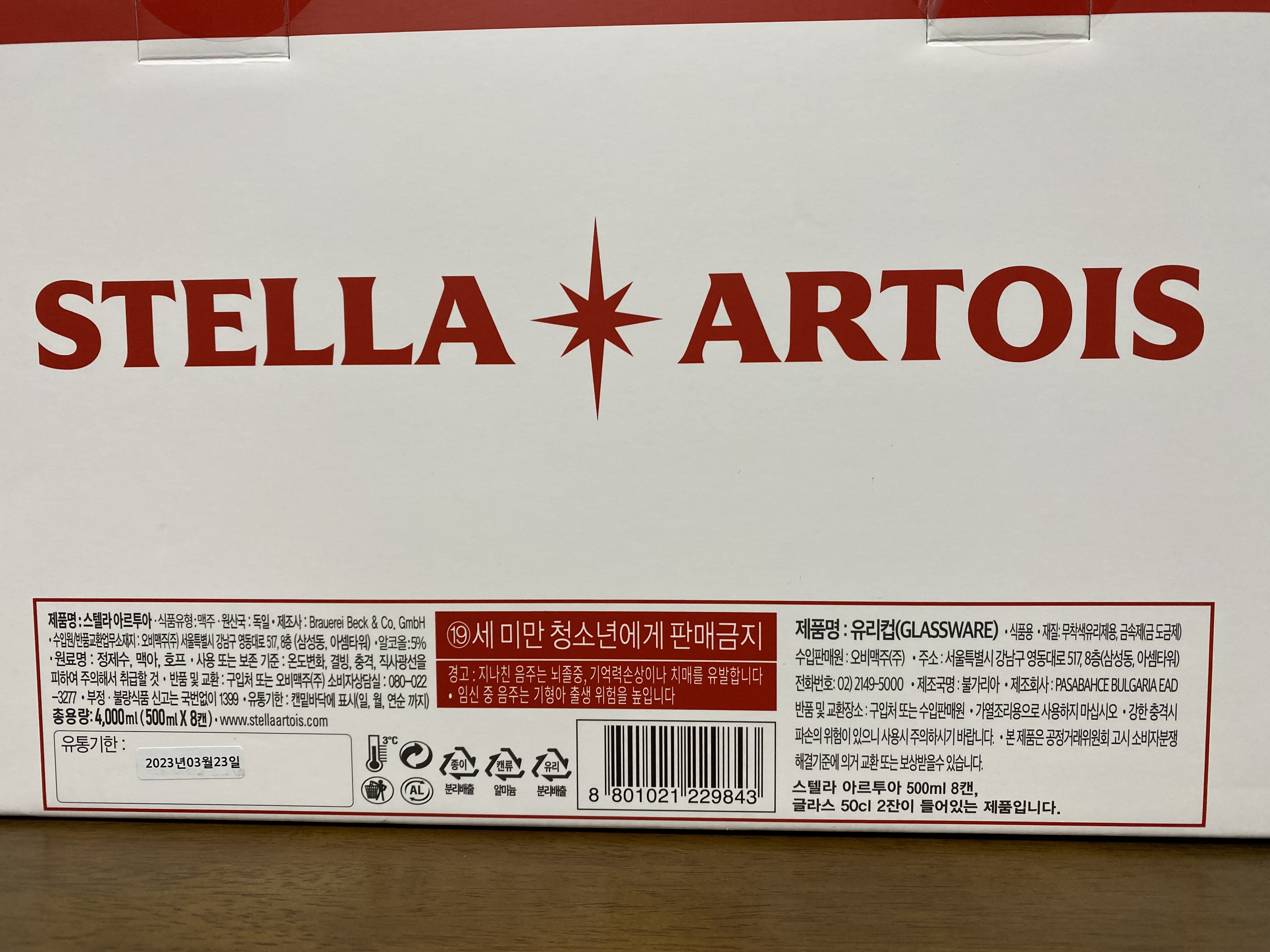 유리잔은 불가리아에서 만들었네요. 가끔 전용잔을 사다보면 마감처리가 엉망인 경우가 있는데 제 경험상 스텔라 아르투아 전용잔은 상당히 퀄리티가 괜찮습니다.