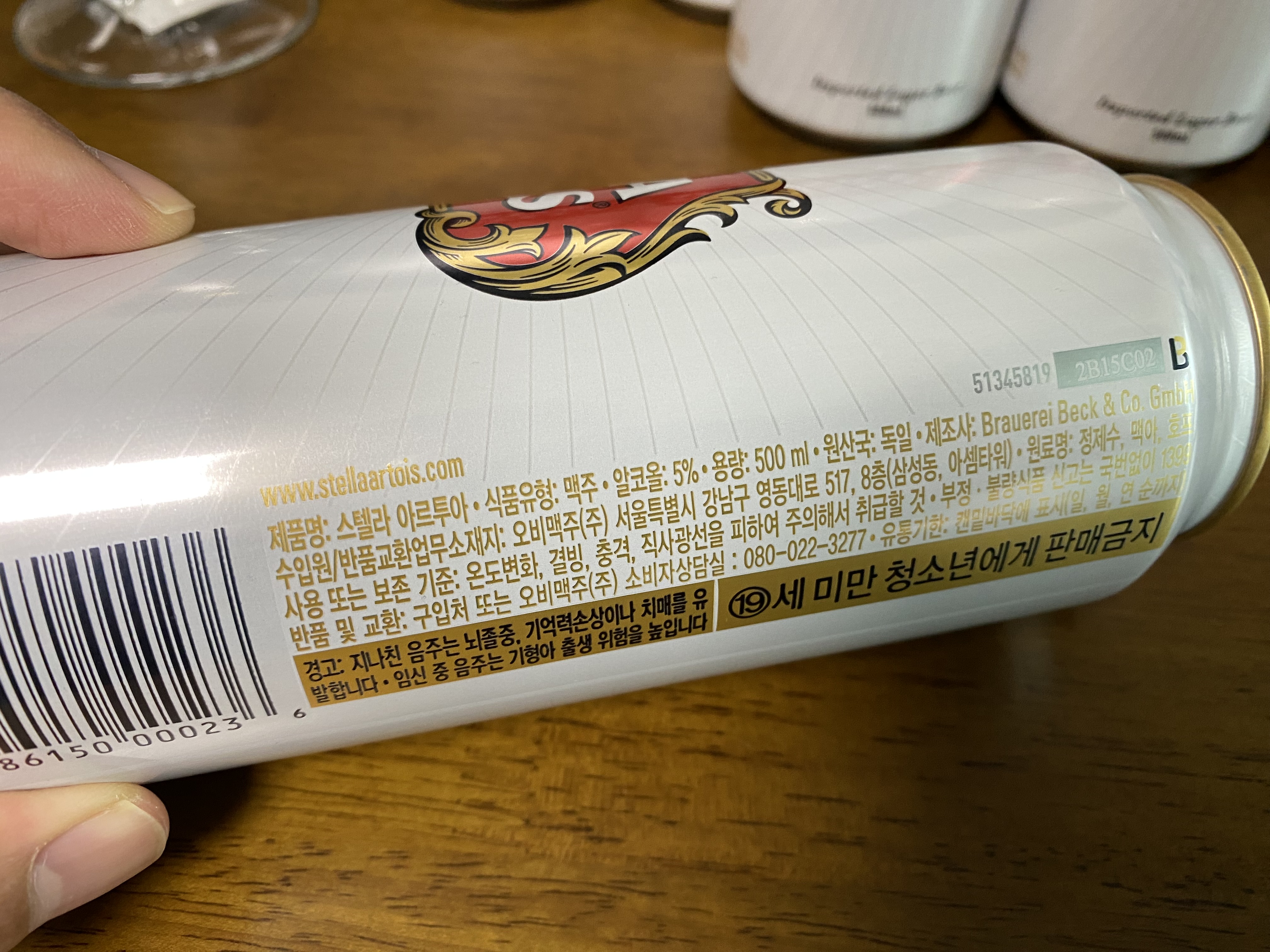 스텔라 아르투아 캔 앞에는 벨기에라고 적혀있는데 원산국은 독일이라고 적혀있네요. 벨기에 맥주를 독일에서 만드는가 봅니다. 참고로 알코올 도수는 5%입니다.