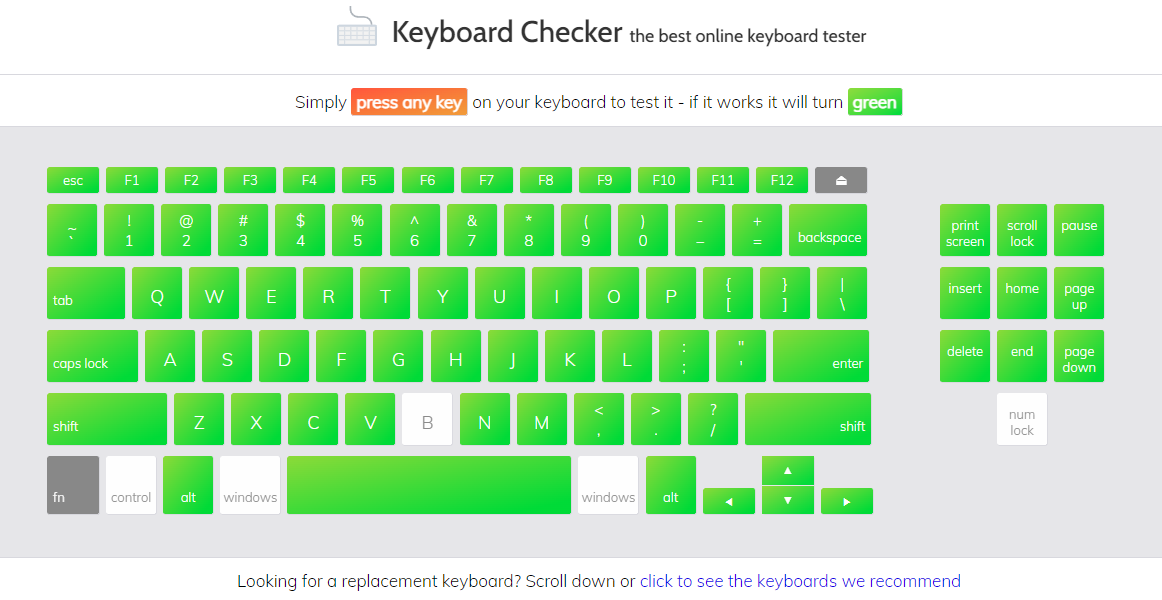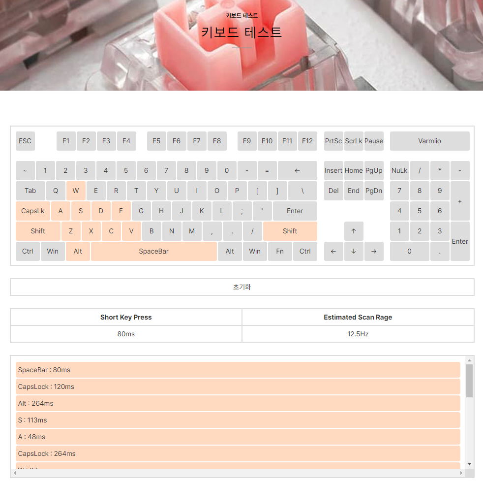 참고로 키보드가 잘 눌러지는지 확인하는 사이트는 정말 많습니다. 구글에 '키보드 테스트' 치면 정말 많은 사이트가 뜨는데 제가 사용한 사이트 링크 2개를 공유합니다.