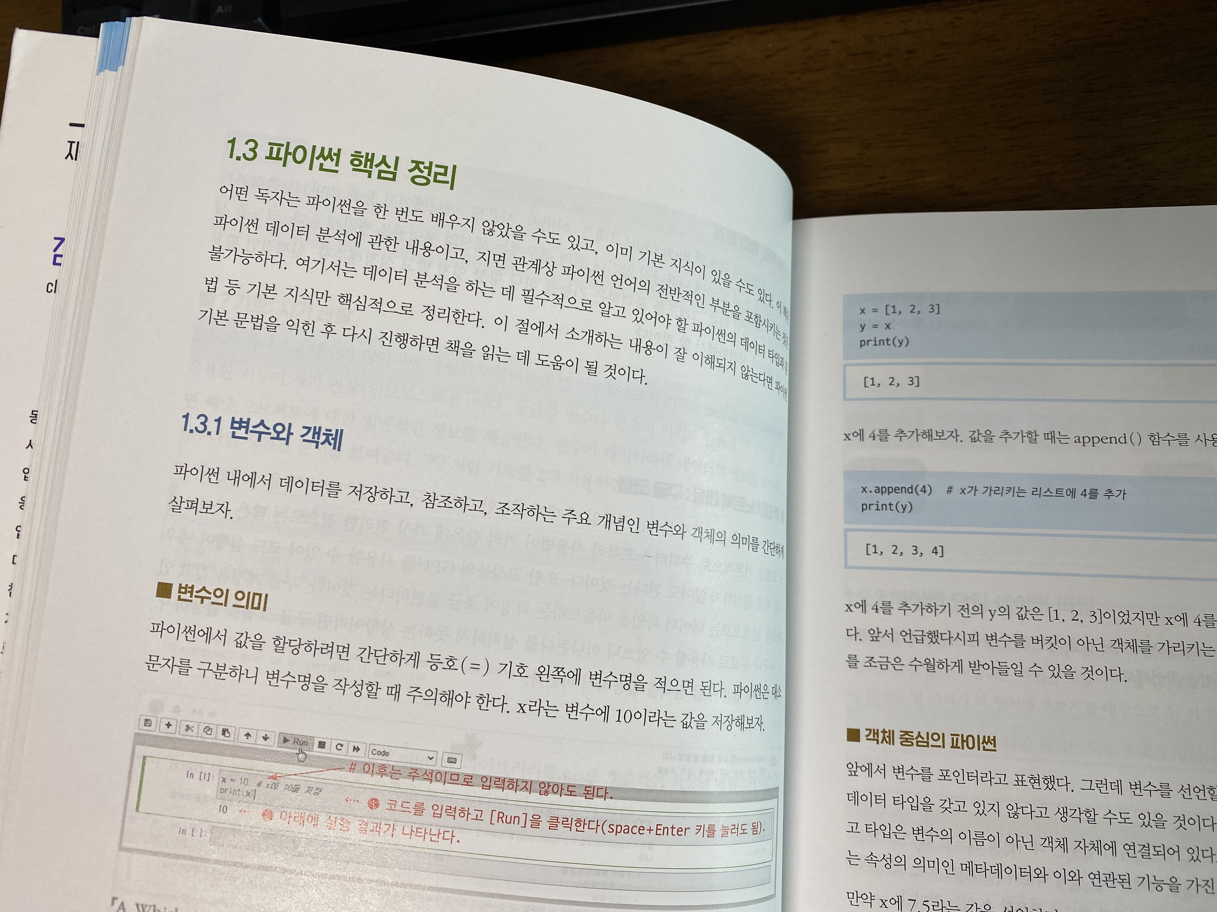 제가 이책을 처음부터 끝까지 본 결과. 처음부터 모든 걸 알려는 마음으로 꼼꼼하게 읽는 건 비효율적으로 보입니다. 챕터1~3은 데이터 분석 기초이기 때문에 순서대로 차근차근 읽어도 되지만 챕터 4~7은 무슨 내용이 있는지 대강만 알고 필요할 때 찾아보면 될 것 같습니다. 병합, 피벗, groupby와 같은 내용은 데이터 분석에 익숙해지기 전에 배우기보단 쓰면서 필요성을 느끼고 적용하면 될 것 같습니다. 엑셀이나 데이터베이스, SQL에 익숙한 사람이라면 모를까 아무것도 모르고 이런 걸 공부하면 가슴만 답답해질 뿐.