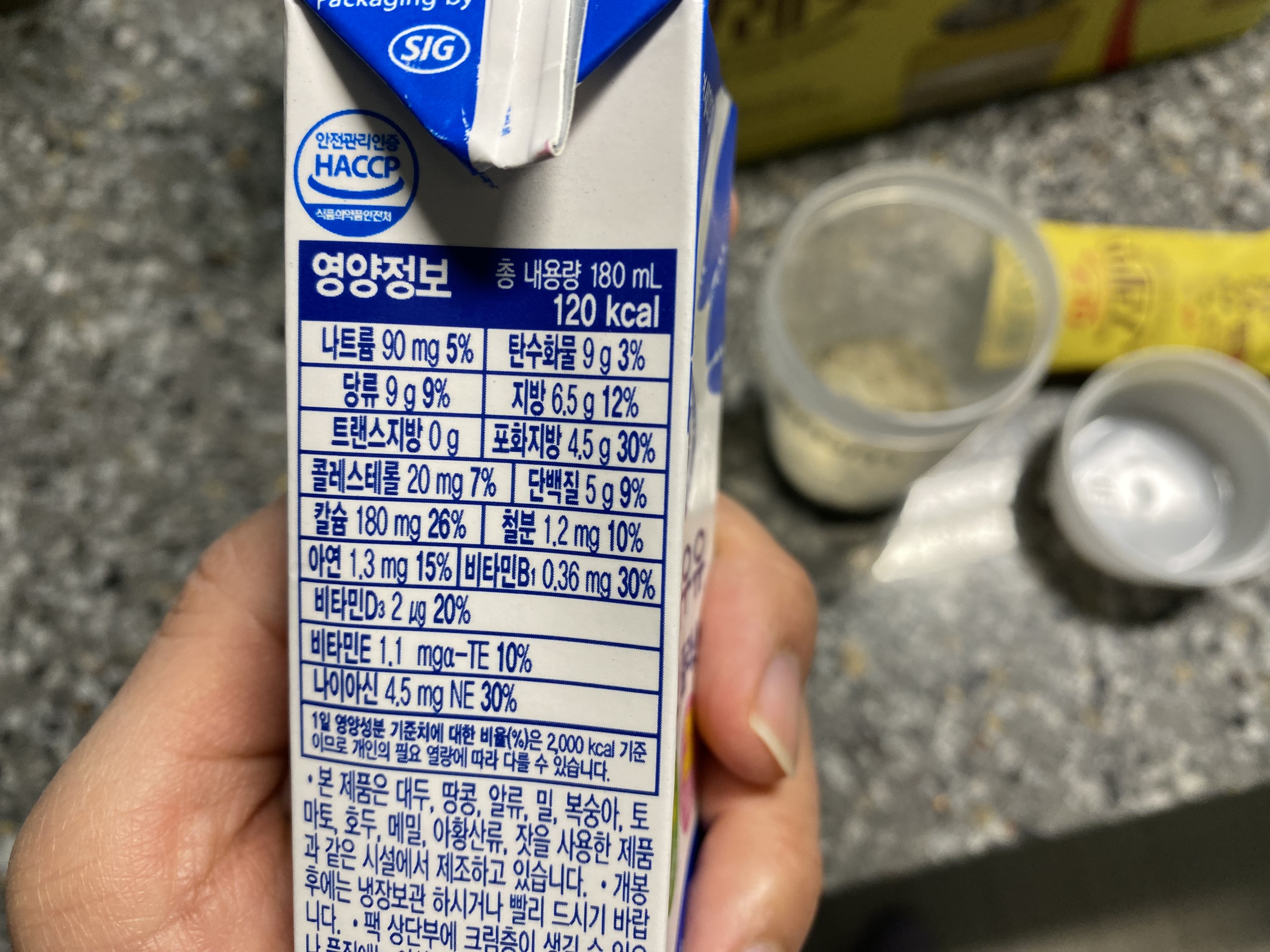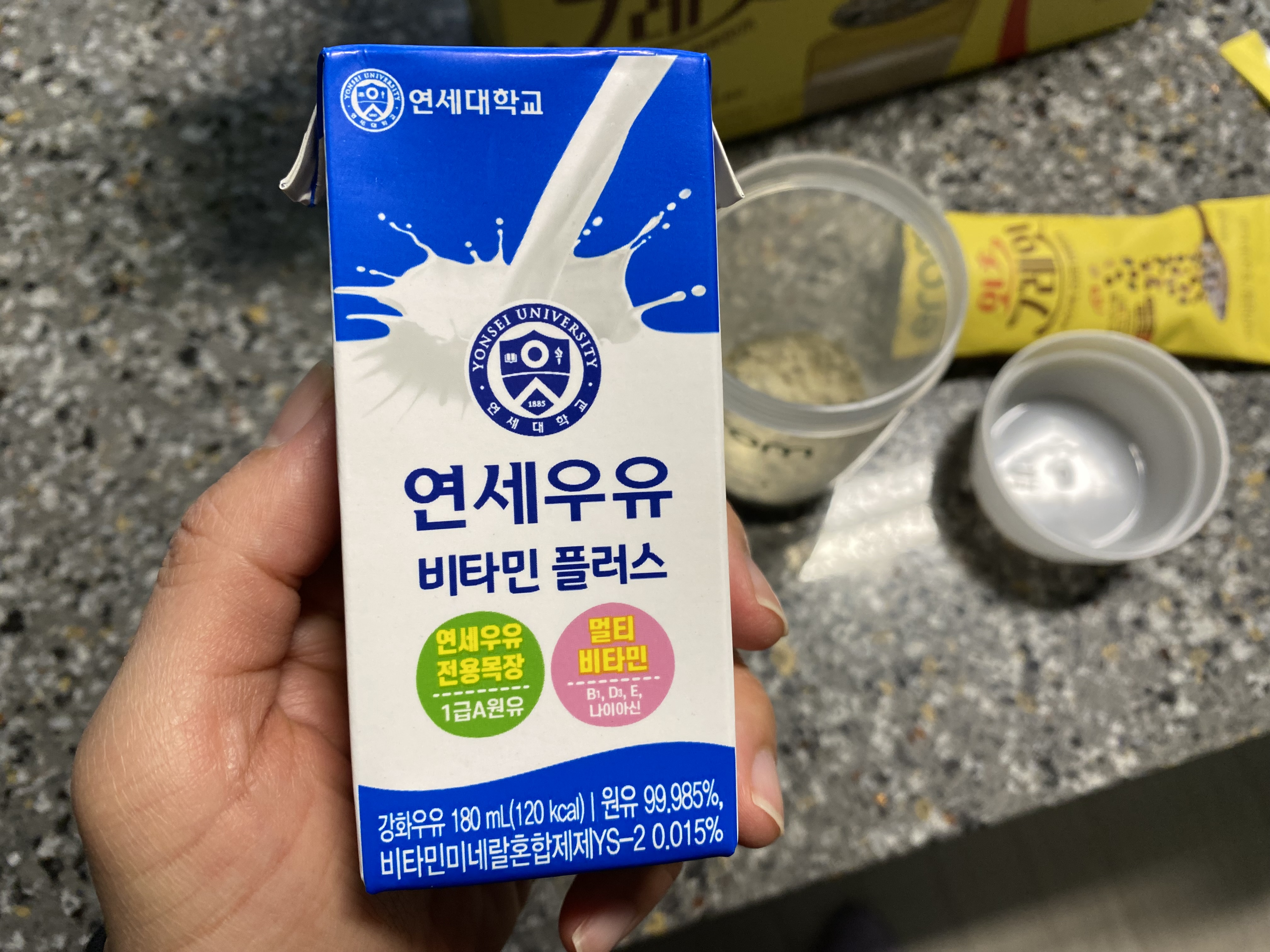 멸균우유 하나가 딱 180mL. 만드는 법에서 본 바로 그 용량입니다. 그리고 칼로리를 한번 계산해보면 잇츠그레잇 1포에 100kcal, 우유가 120kcal 니까 더하면 220kcal 입니다. 공기밥이 보통 250칼로리니까 이게 조금 더 낮네요. 사람이 보통 한끼에 700~900칼로리를 먹으니까 확실히 저칼로리 맞습니다. 이러면 다이어트에도 도움이 되지 않을까요?! 단 이것만 먹을 경우에... 저는 소식 스타일이라 크게 배가 고프지 않았습니다.