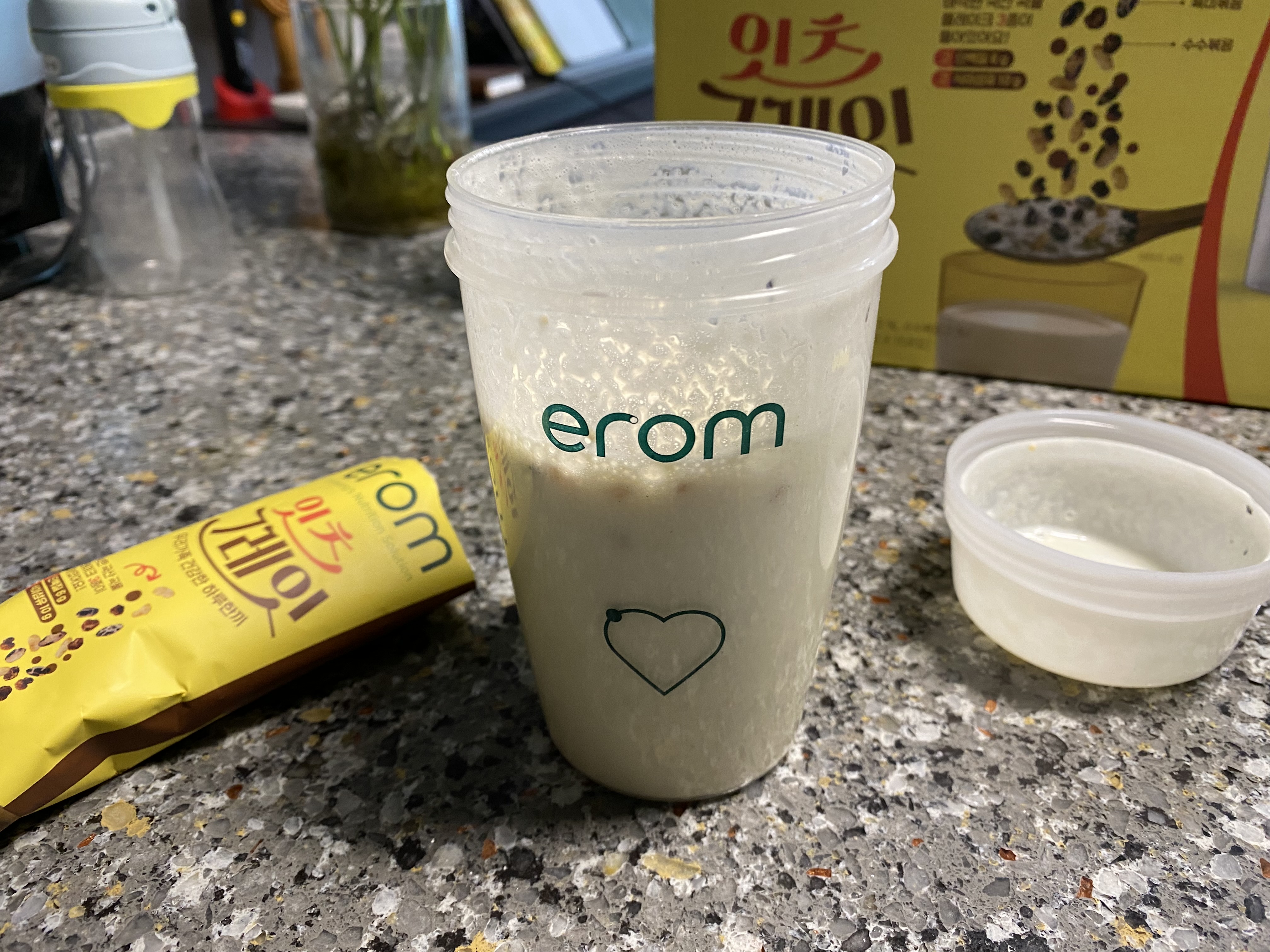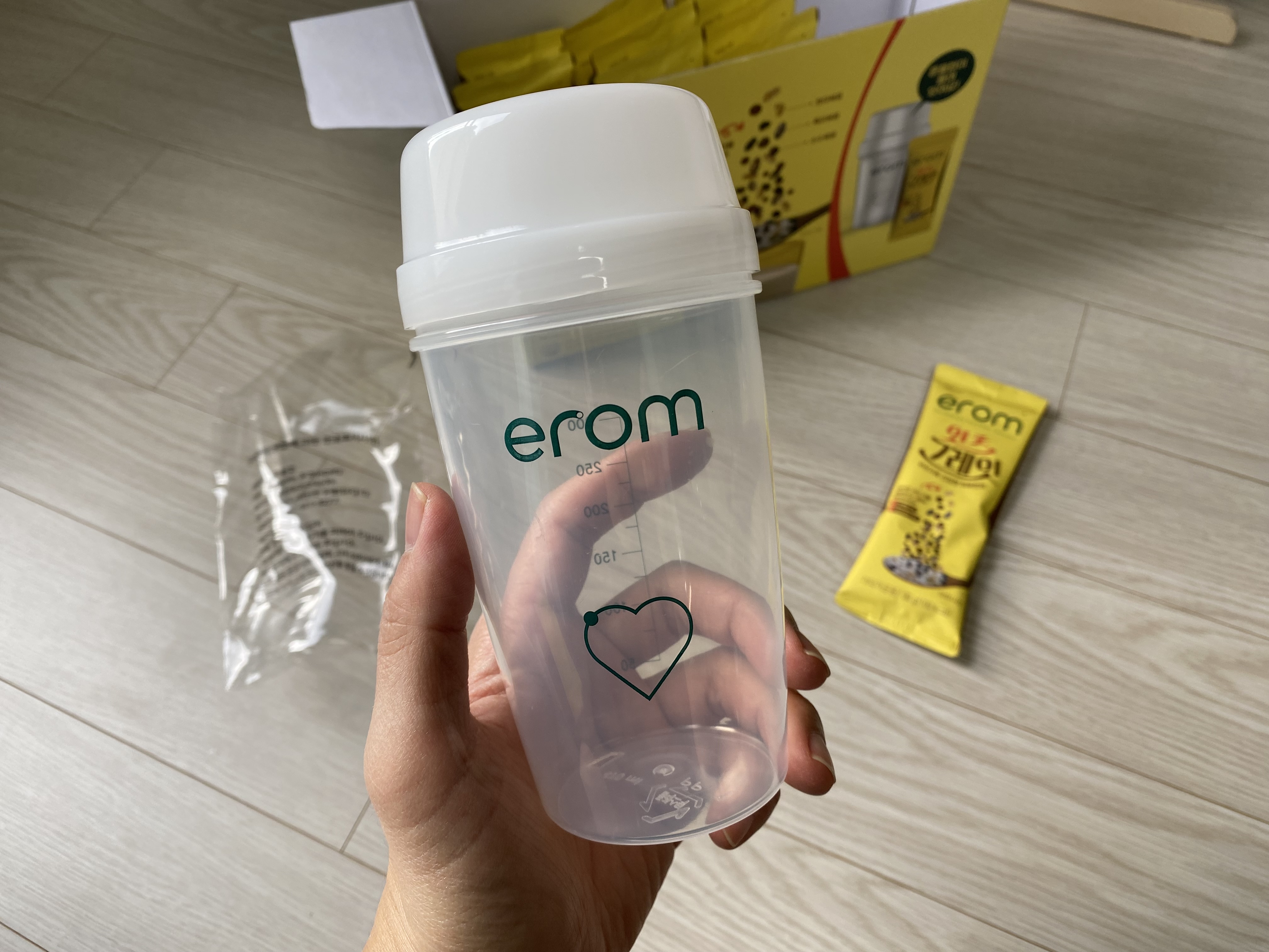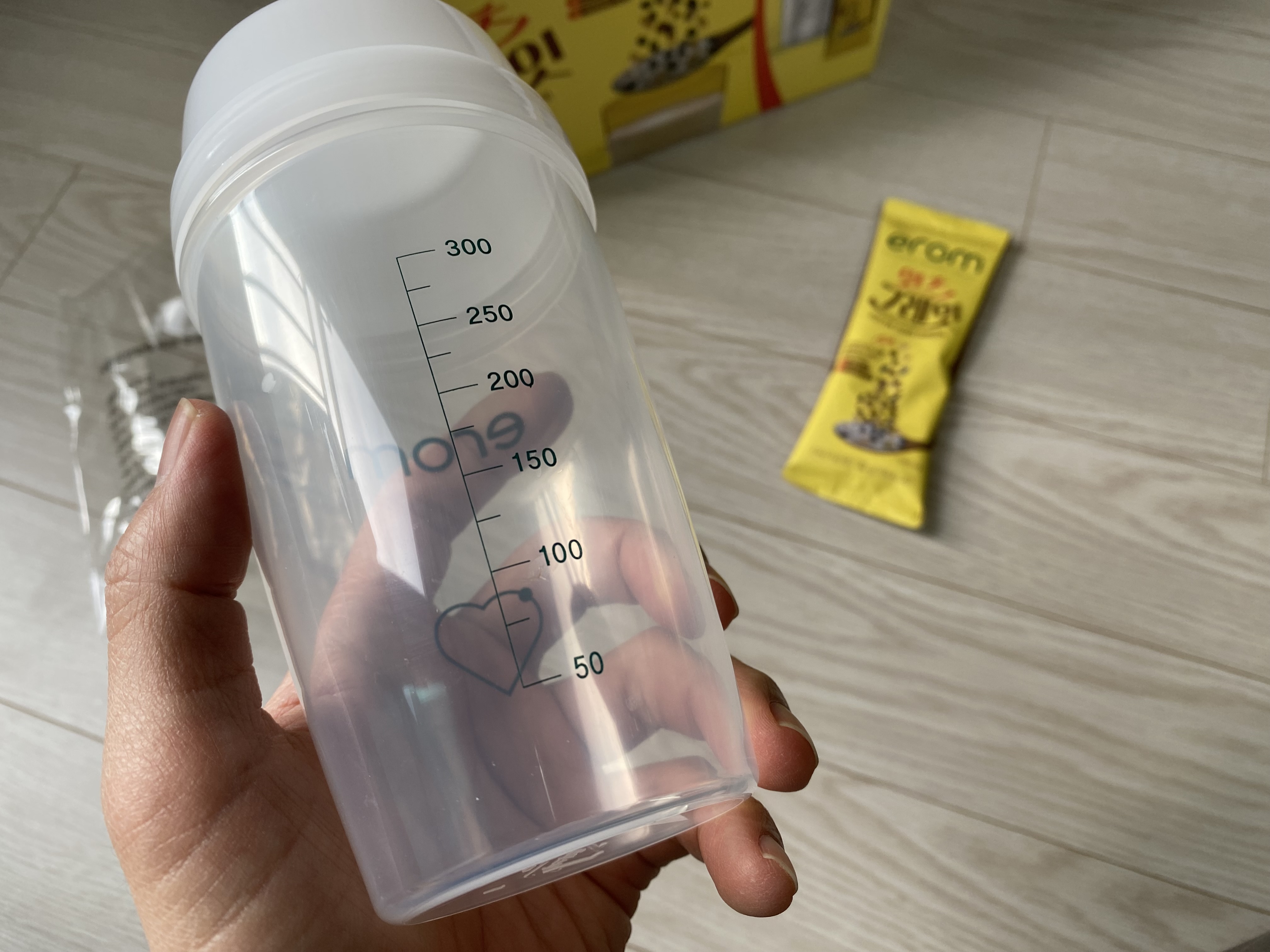 이롬 잇츠그레잇에 포함된 쉐이커 텀블러. 별 필요도 없는 걸 준다 생각했는데 한번 써보고 편해서 계속 이걸 써서 흔들어 먹고 있습니다. 같이 주는대는 다 이유가 있네요 ㅎㅎ