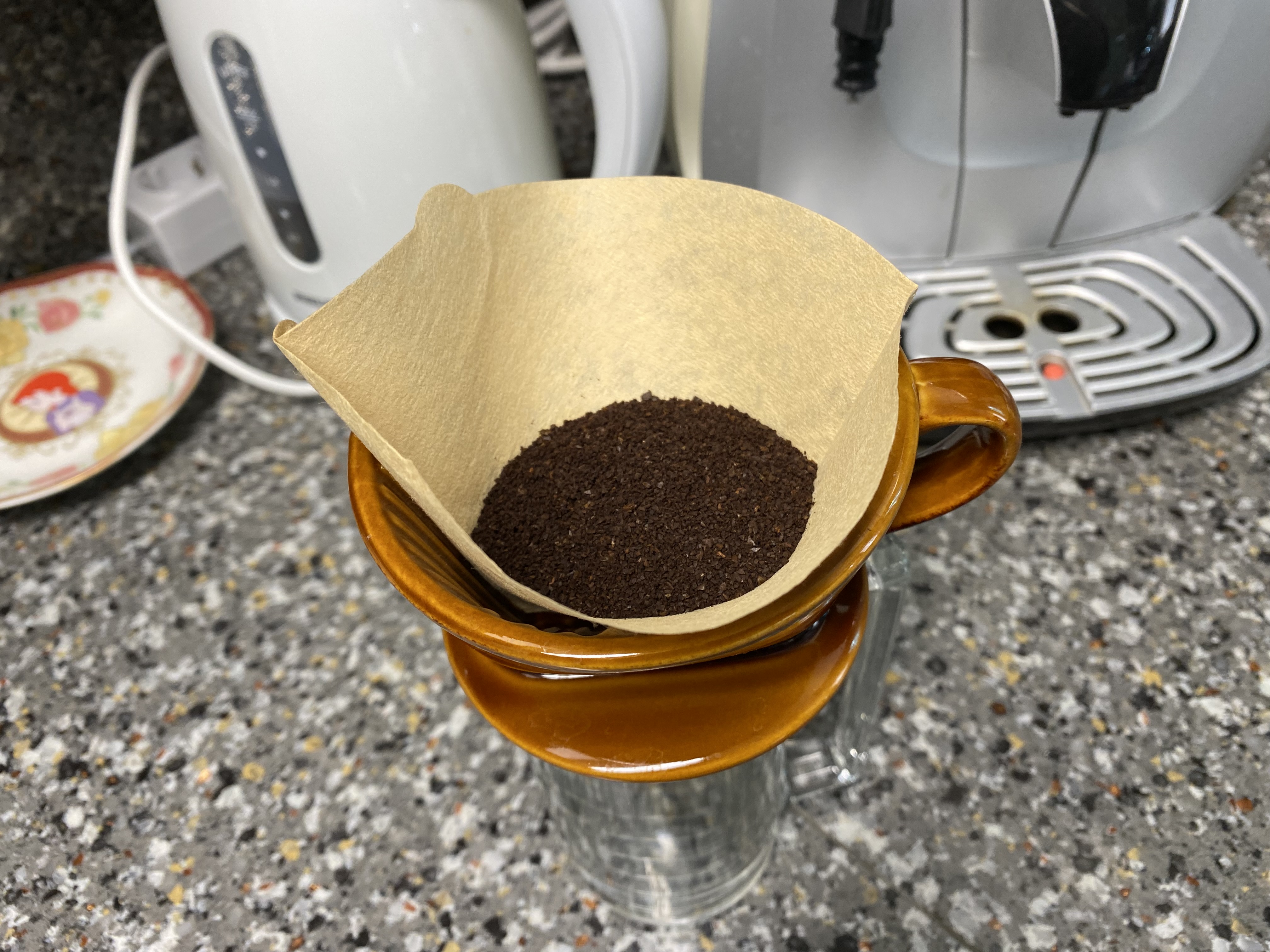 드리퍼 사이즈와 다른 여과지라 그런지 위로 많이 튀어나오네요.