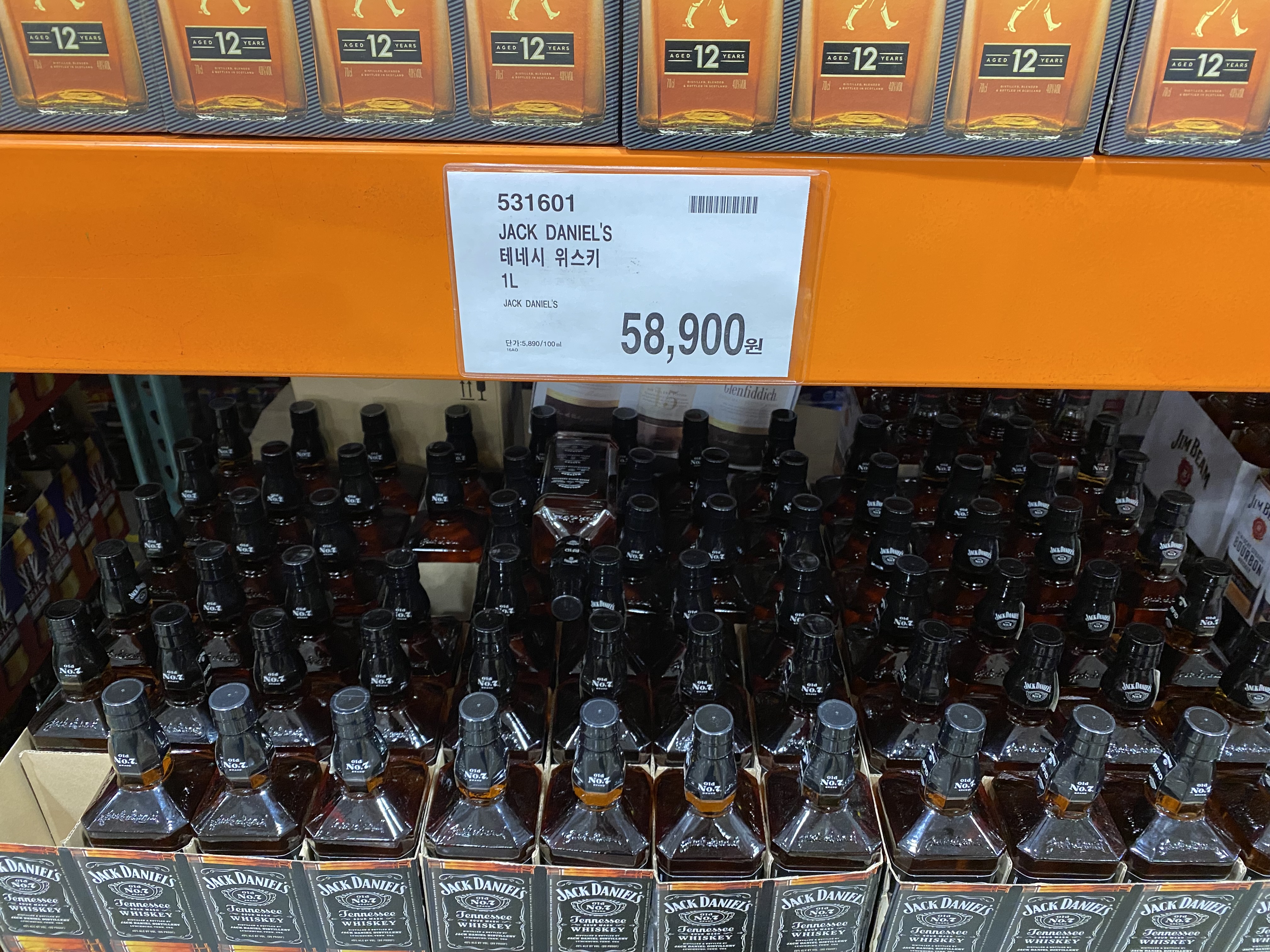 잭 다니엘 JACK DANIEL'S 테네시 위스키 1L 가격은 58,900원 (단위가격 5,890원) 입니다. 그냥 무난한 위스키라 제가 예전에 즐겨 마셨습니다. 꿀이 들어간 허니 버전도 있으니 참고하세요. 이것도 가끔 할인을 합니다. 명절 전에 코스트코에 가면 전용잔이 들어있는 위스키 세트도 살 수 있으니 참고하세요. 가격은 동일합니다.