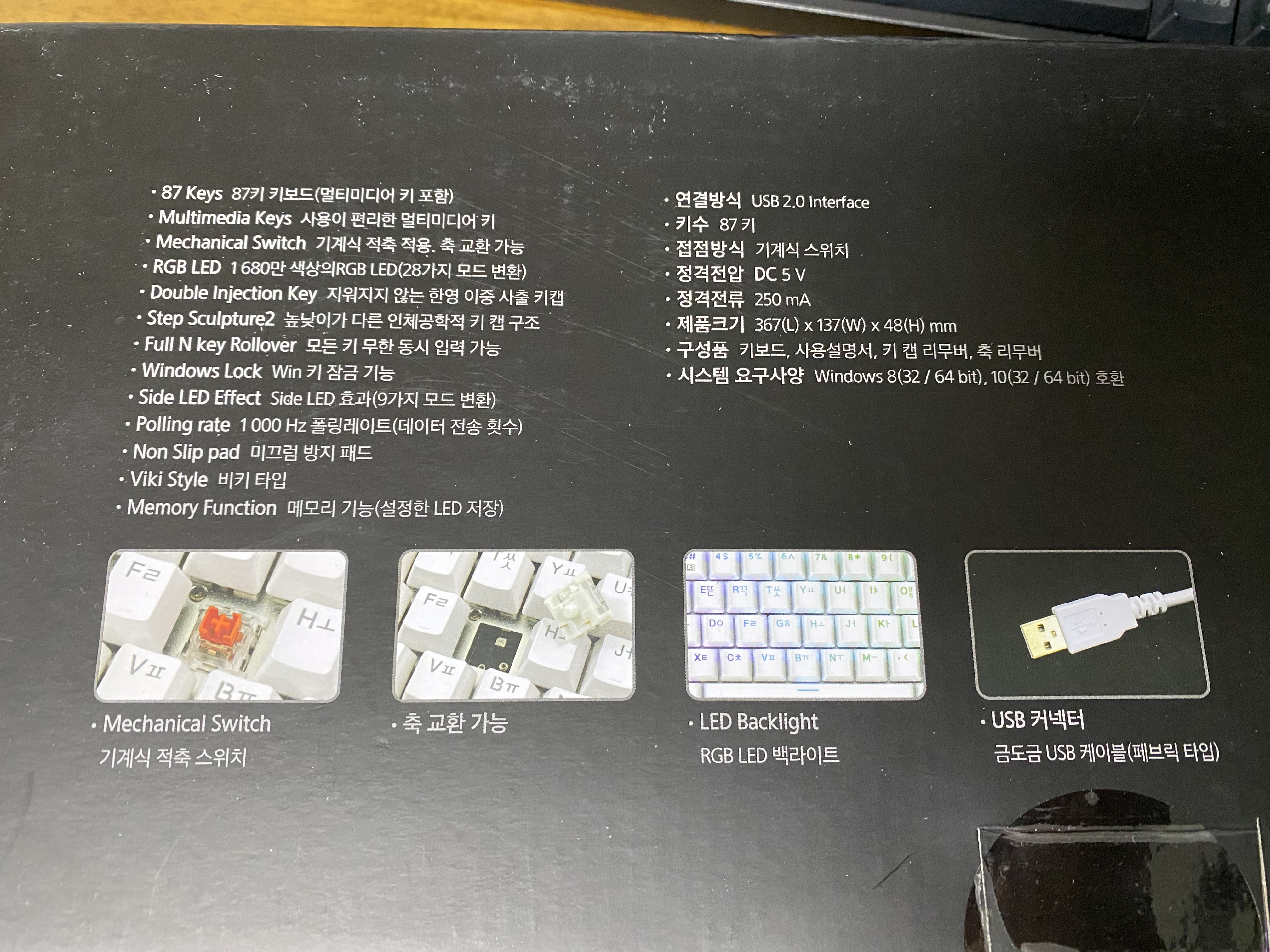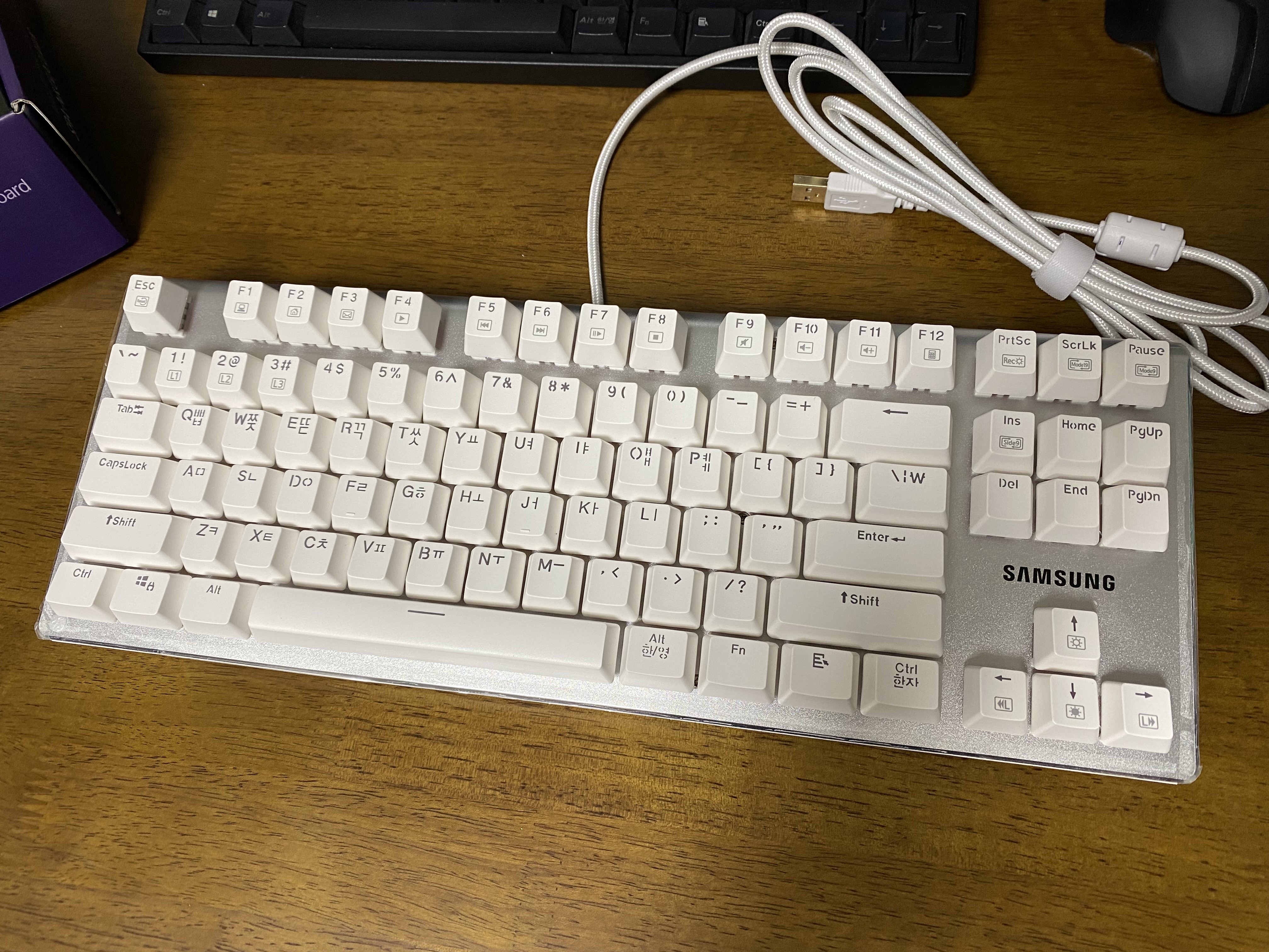삼성 기계식 키보드를 개봉한 모습
