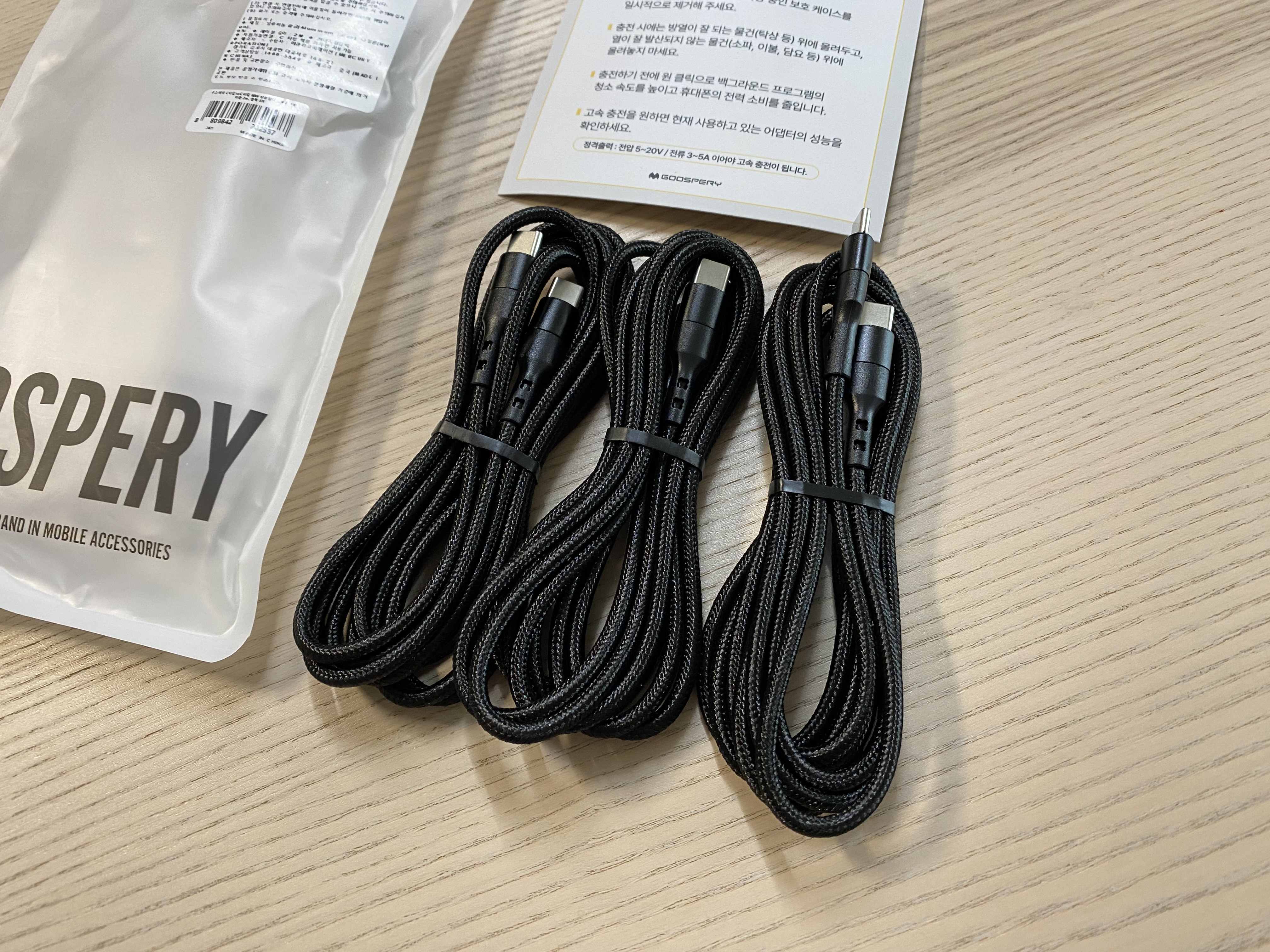 쿠팡 구스페리 C to C 고속 충전케이블. 2m짜리 케이블이 3개가 들어있어서 여기 저기 놔두고 막 사용하기에 좋아 보입니다. 참고로 이 제품은 60W 쾌속 충전은 물론 데이터 전송도 가능한 케이블입니다. C타입 to C타입 가성비 고속 충전 케이블을 찾고 있던 분에게 괜찮은 제품이 아닐까 싶네요. 고장 없이 오래 사용하면 좋겠습니다.
