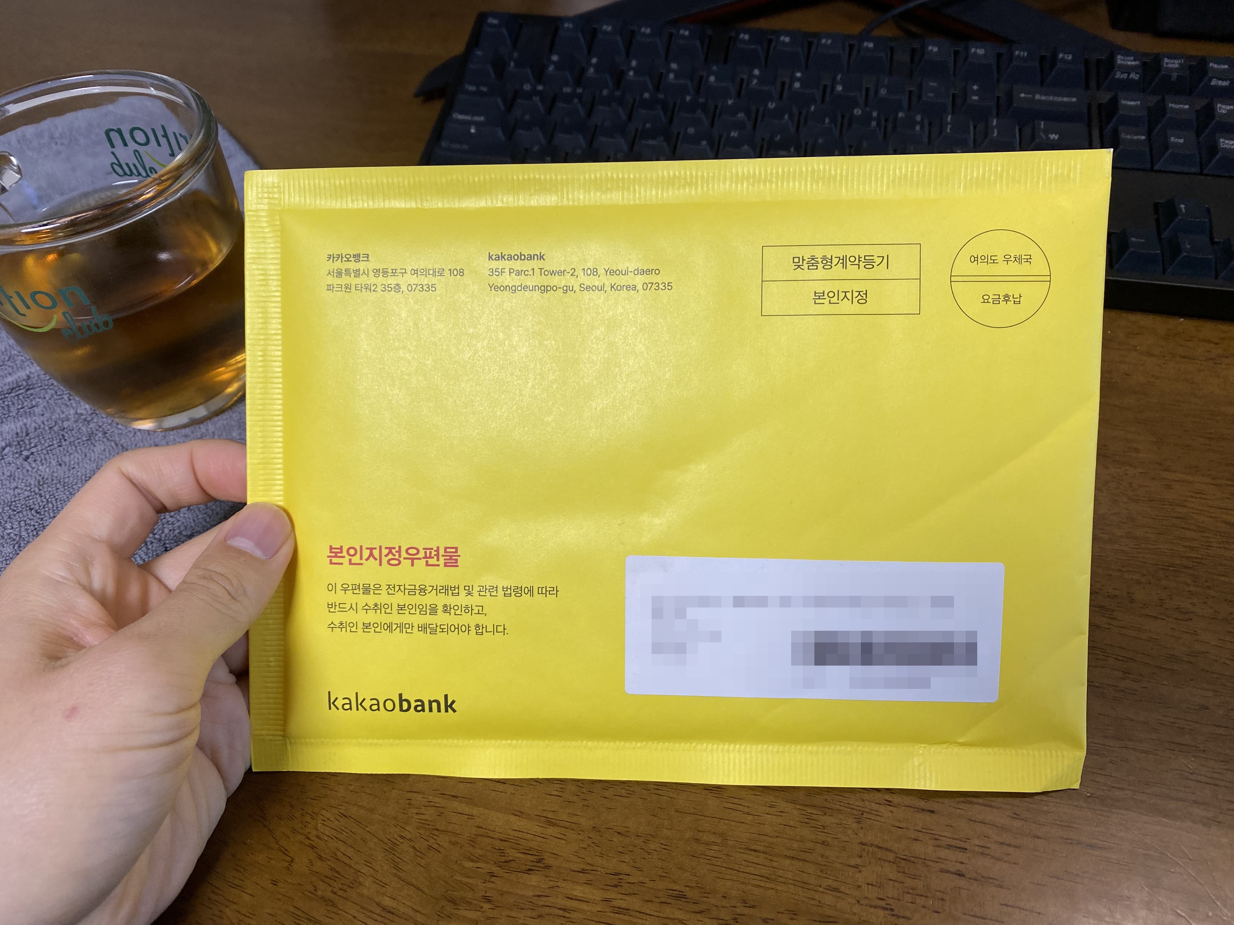 카카오뱅크 OTP 배송 우편을 개봉한 모습