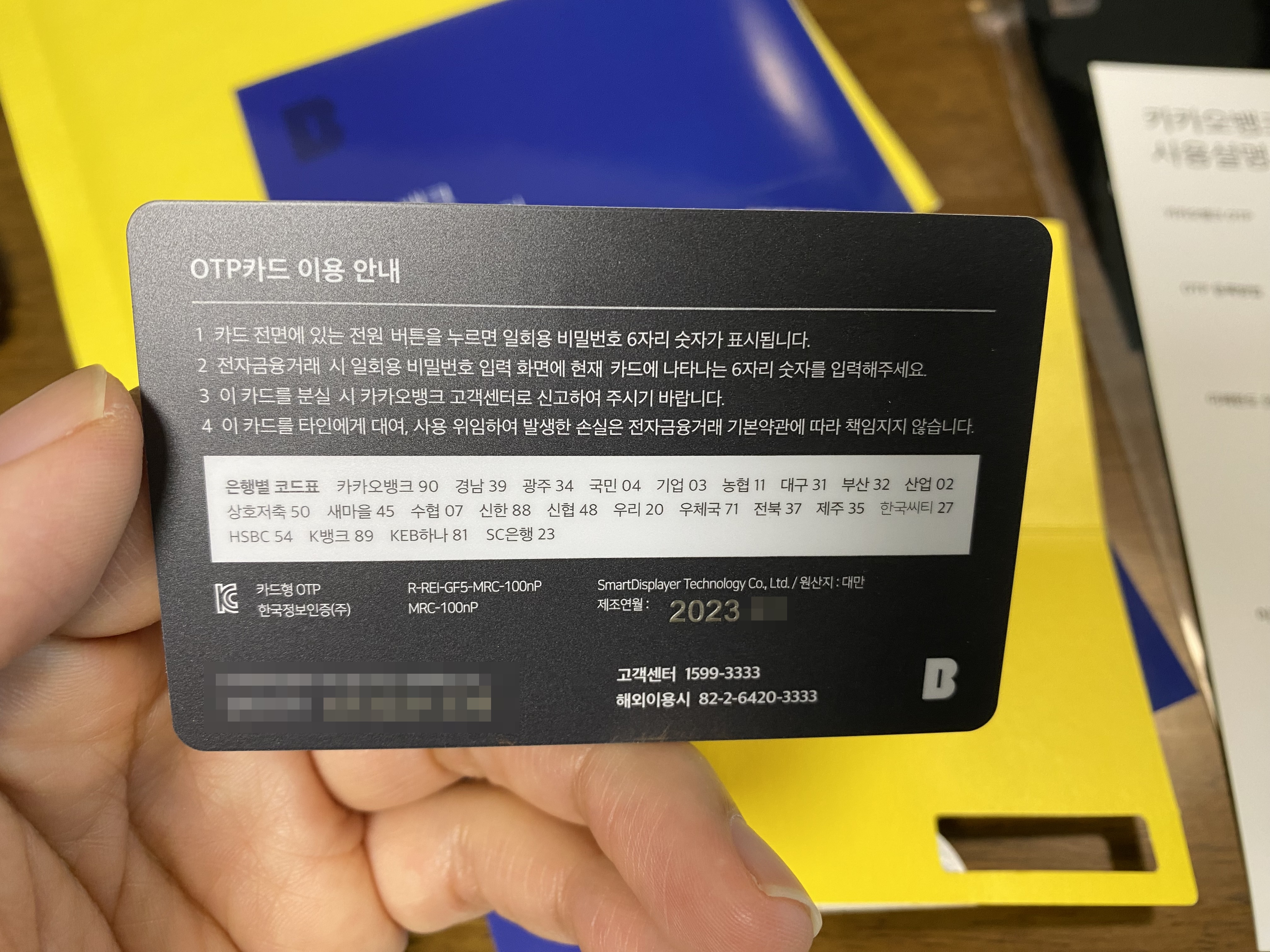 뒷면 아래쪽 모자이크처리된 부분에 일련번호가 있는데 이걸 이용해서 OTP카드를 등록해서 사용하면 됩니다.