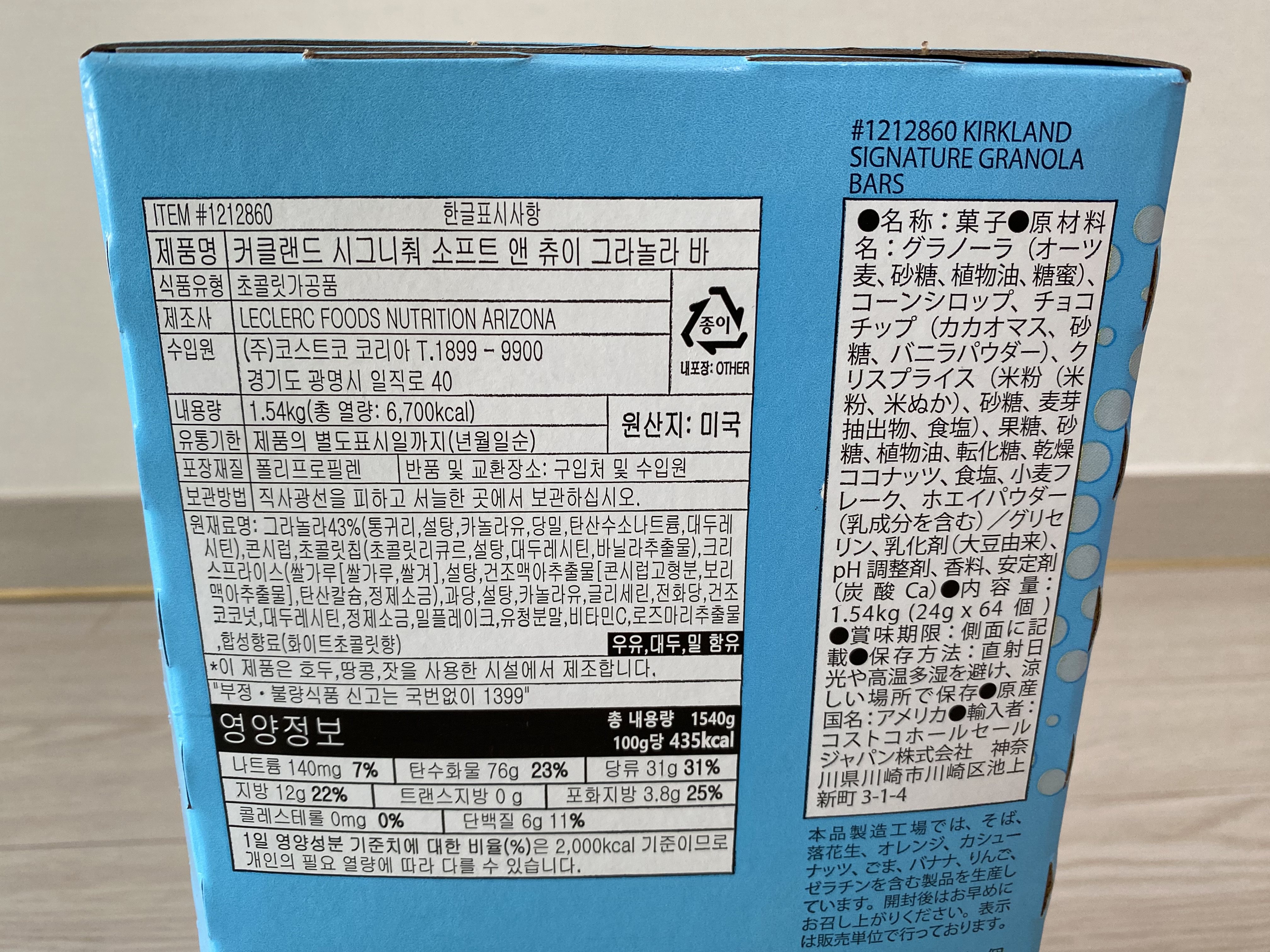 코스트코에서 '커클랜드 시그니춰 소프트 앤 츄이 그래놀라 바'를 두 번째 구매했습니다. 저는 개인적으로 별로 안 좋아하는데 아이들이 잘 먹어서 샀네요. 제가 싫어하는 이유는 '소프트'라는 이름에서도 알 수 있듯 식감이 바삭하지 않아서입니다. 그래도 나름 인기가 있는지 코스트코에서 계속 팔고 있는 그래놀라바입니다.