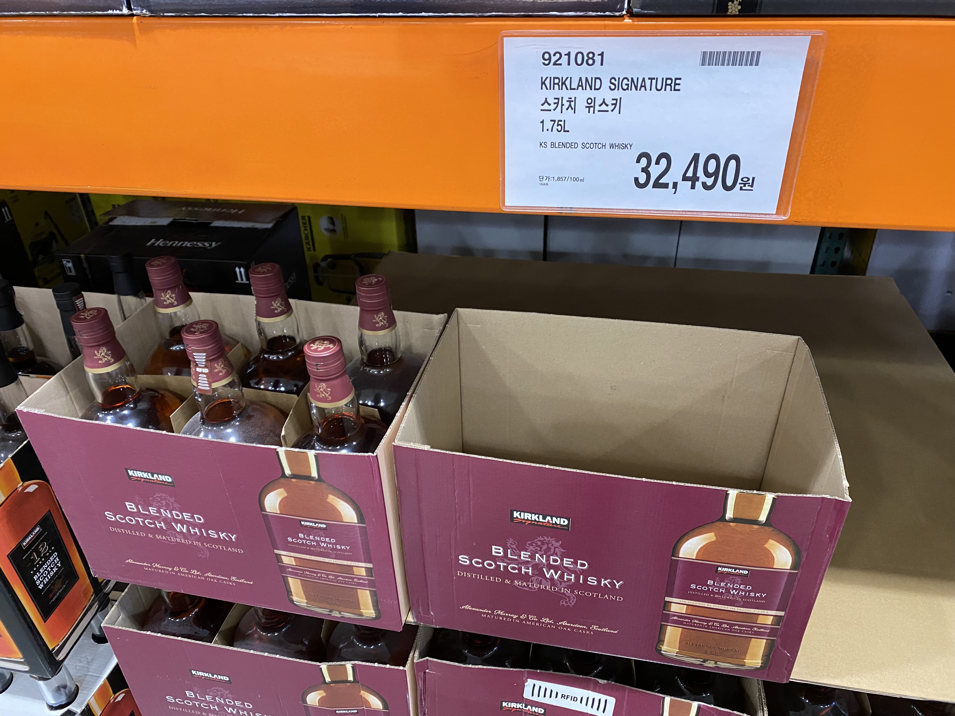 하이볼을 만들 때 막 쓰기 좋은 저렴한 위스키로 코스트코에서 파는 BELL'S 벨즈 위스키가 있습니다. 평소에는 벨즈 위스키를 할인할 때 샀는데 이번에 코스트코 갔을 때는 커클랜드 시그니춰 KIRKLAND SIGNATURE 블랜디드 스카치 위스키 1.75L를 한번 사봤습니다. 위스키 가격은 32,490원. 커클랜드 시그니처는 보통 가성비가 좋아서 위스키도 그렇지 않을까 하는 기대가 컸습니다.