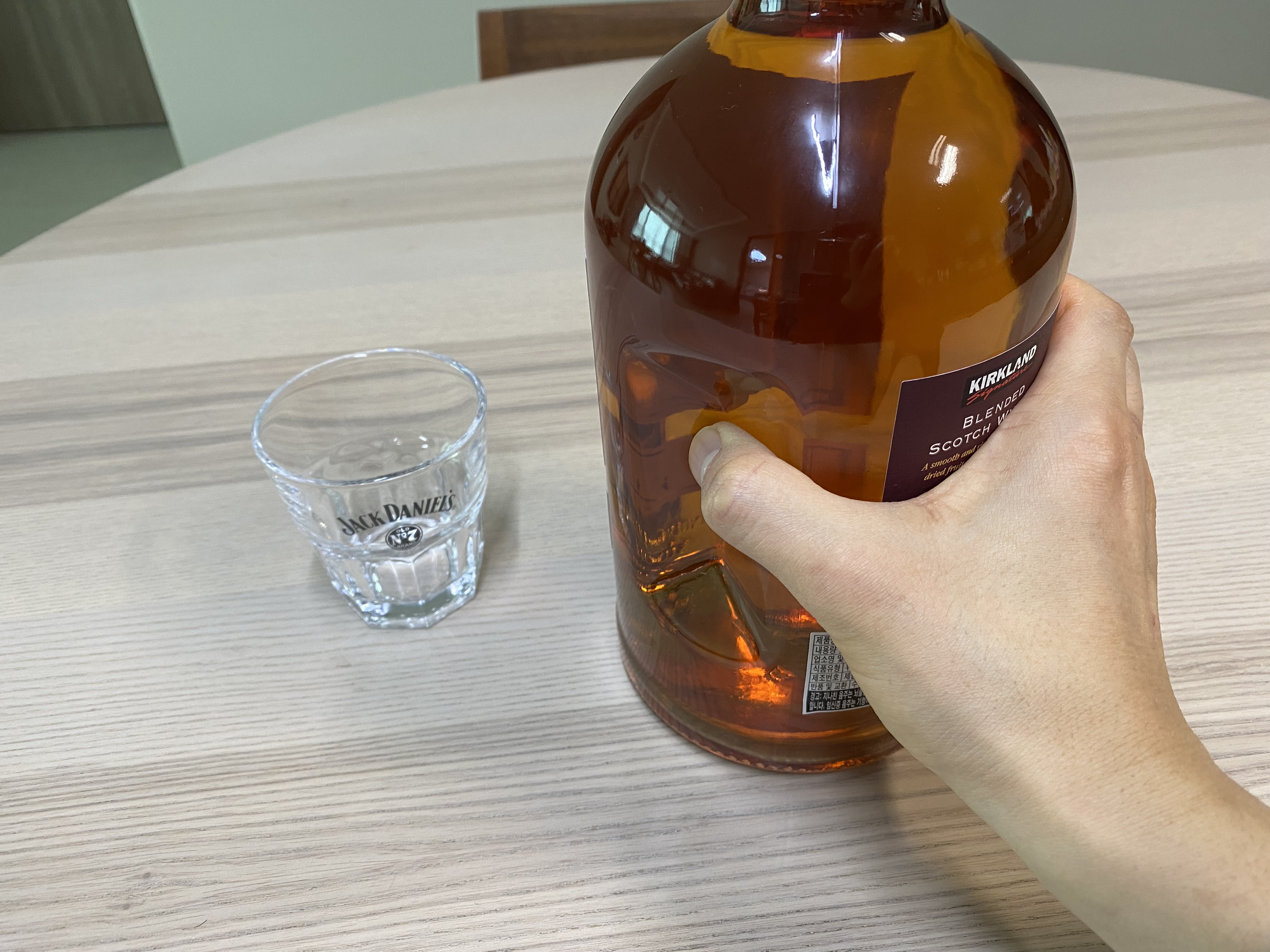 위스키 병이 커서 들기 부담스러운데 그래도 손잡이가 있어서 좀 낫습니다.