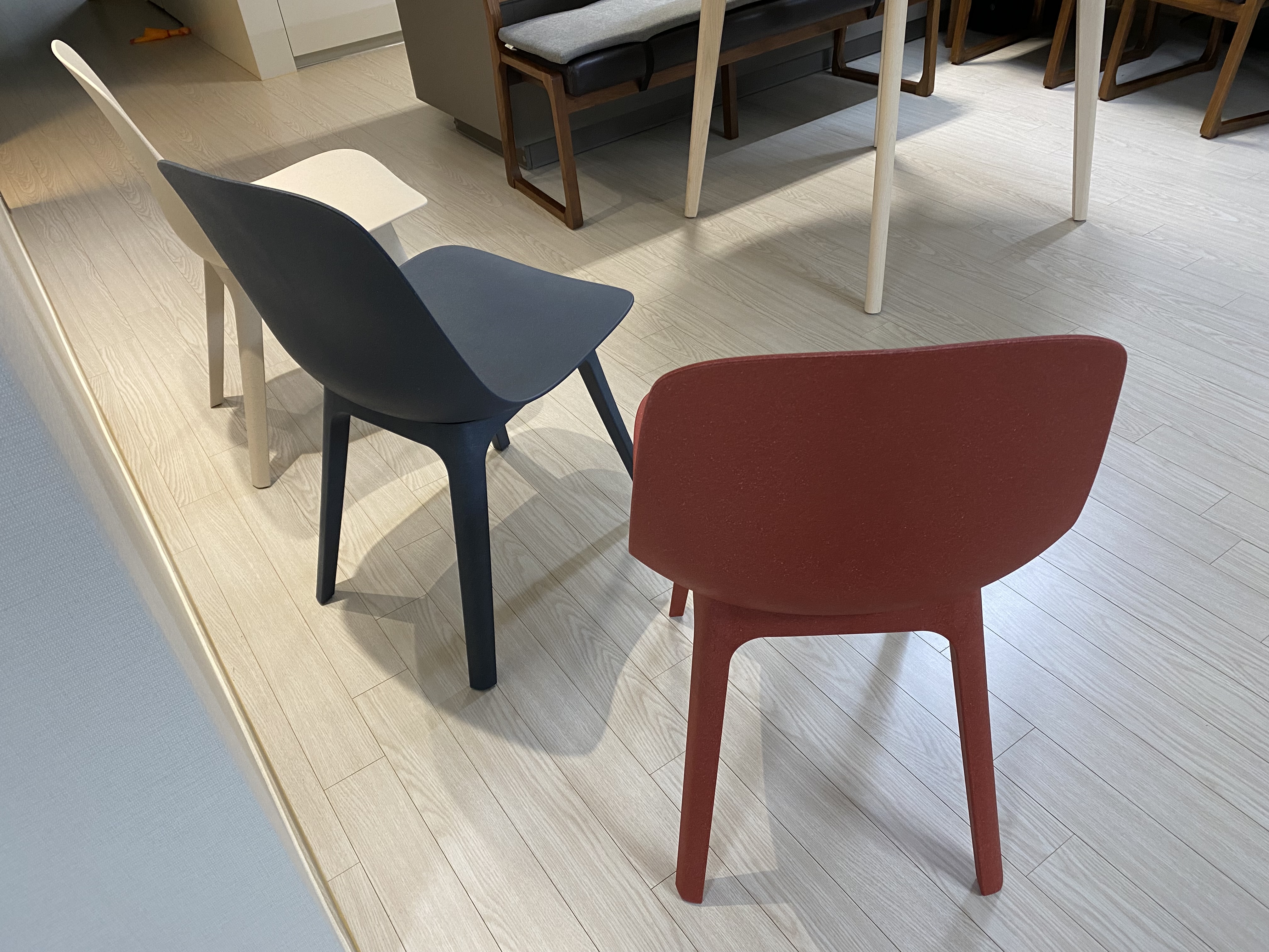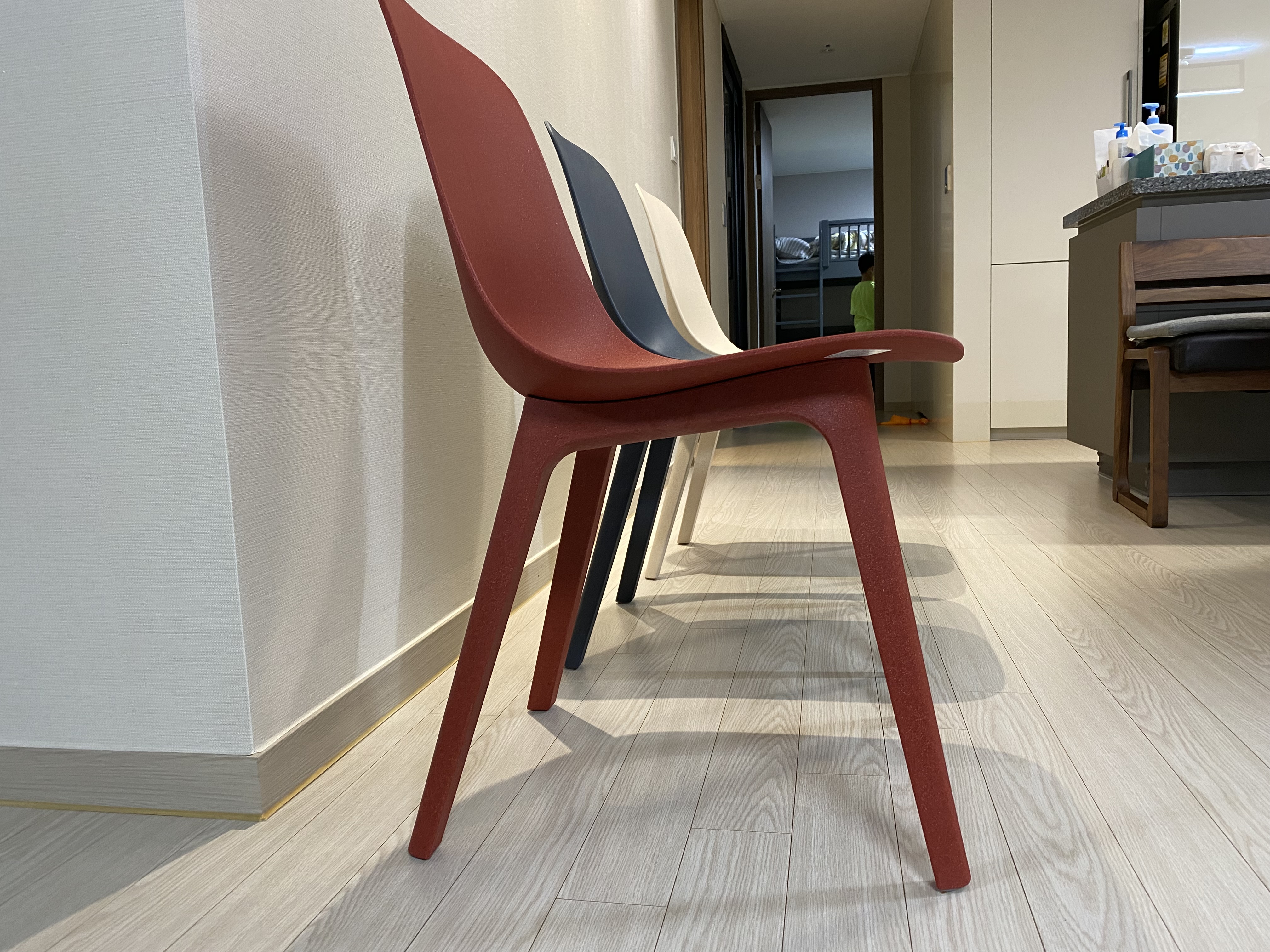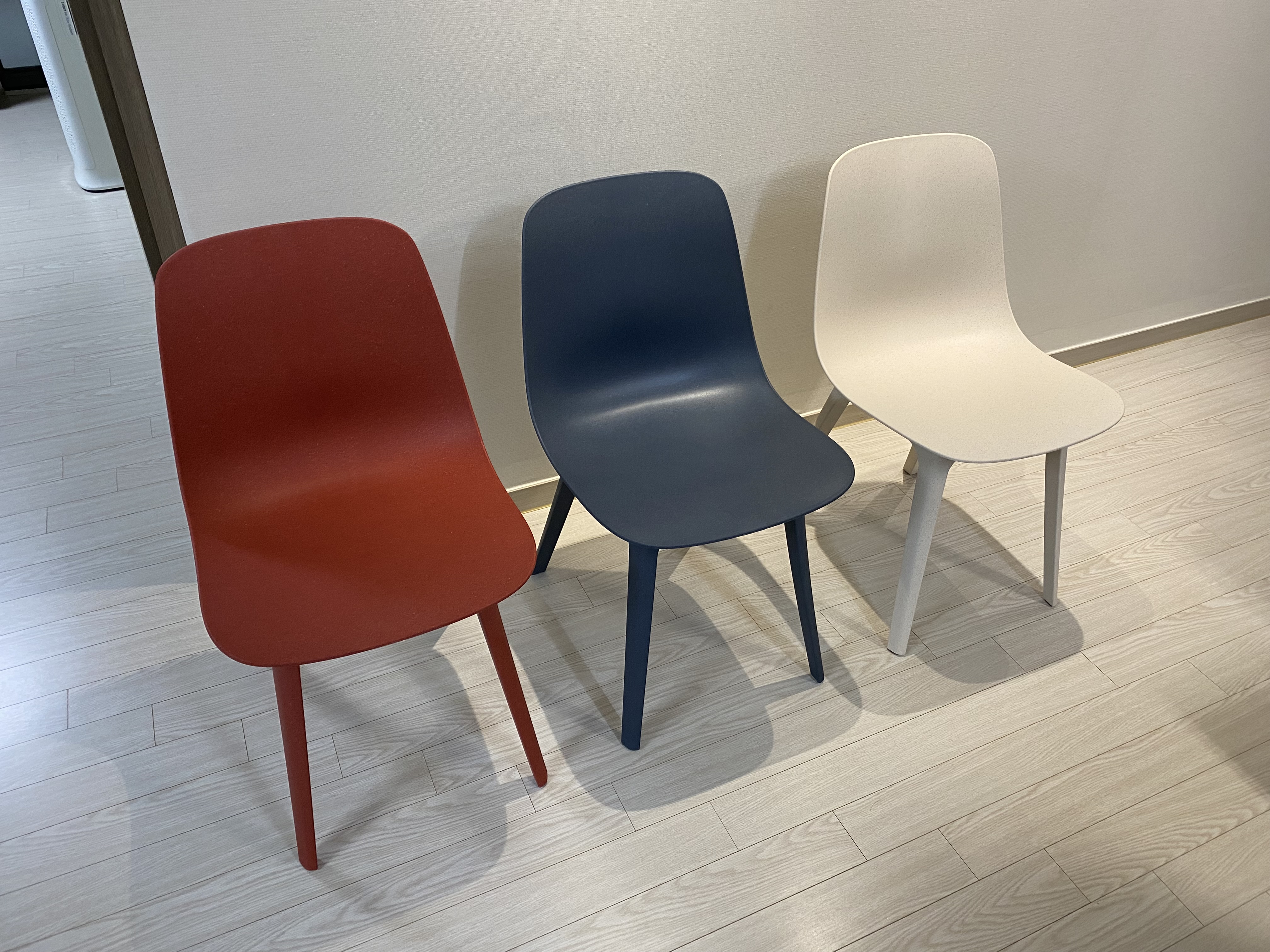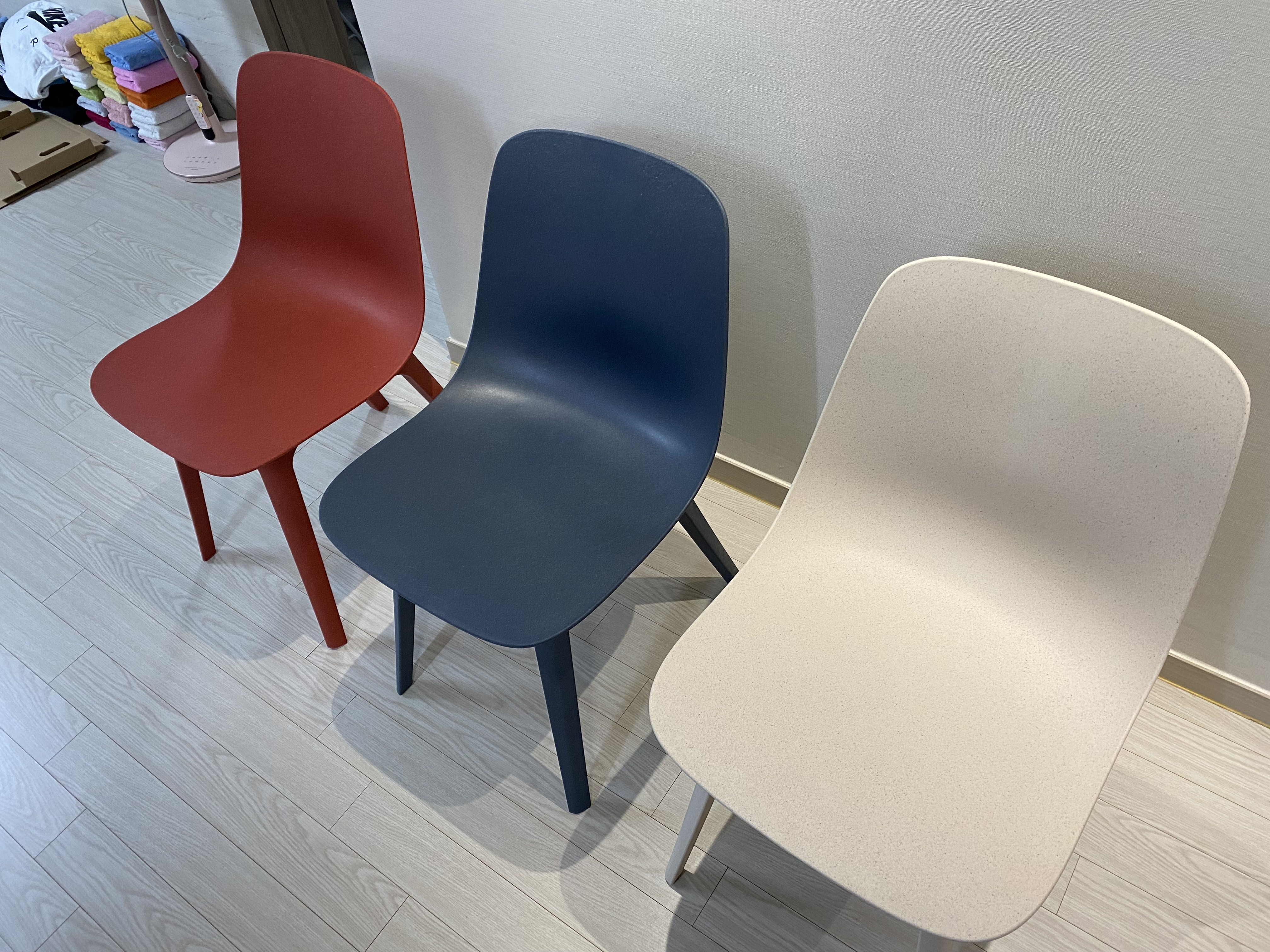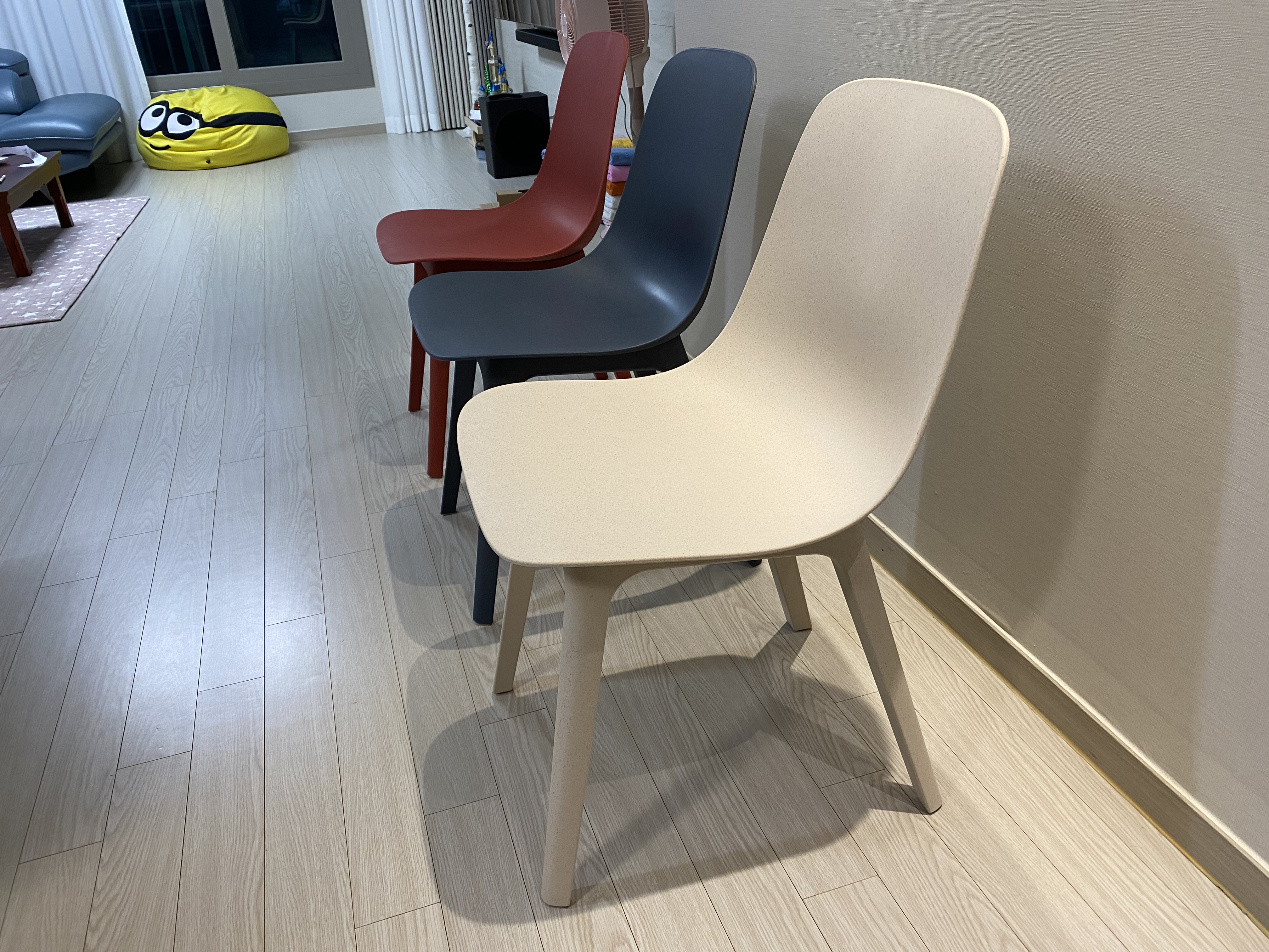 오드게르 의자 레드, 블루, 베이지 색상입니다. 지금 이케아 사이트에 들어가 보니 블루 말고 검은색에 가까운 제품을 팔고 있네요. 사실 블루라고 말을 했는데 약간 느낌이 다릅니다. 3가지 색상 다 마음에 들어서 어느 것 하나 고르기가 어렵네요. 디자인이 같아서 나름 조화롭게 사용이 가능합니다. 한 가지 색상으로 깔맞춤하는 것도 좋겠지만 이렇게 다 다른 색상으로 구매를 하는 것도 괜찮은 것 같습니다. 어울려요.