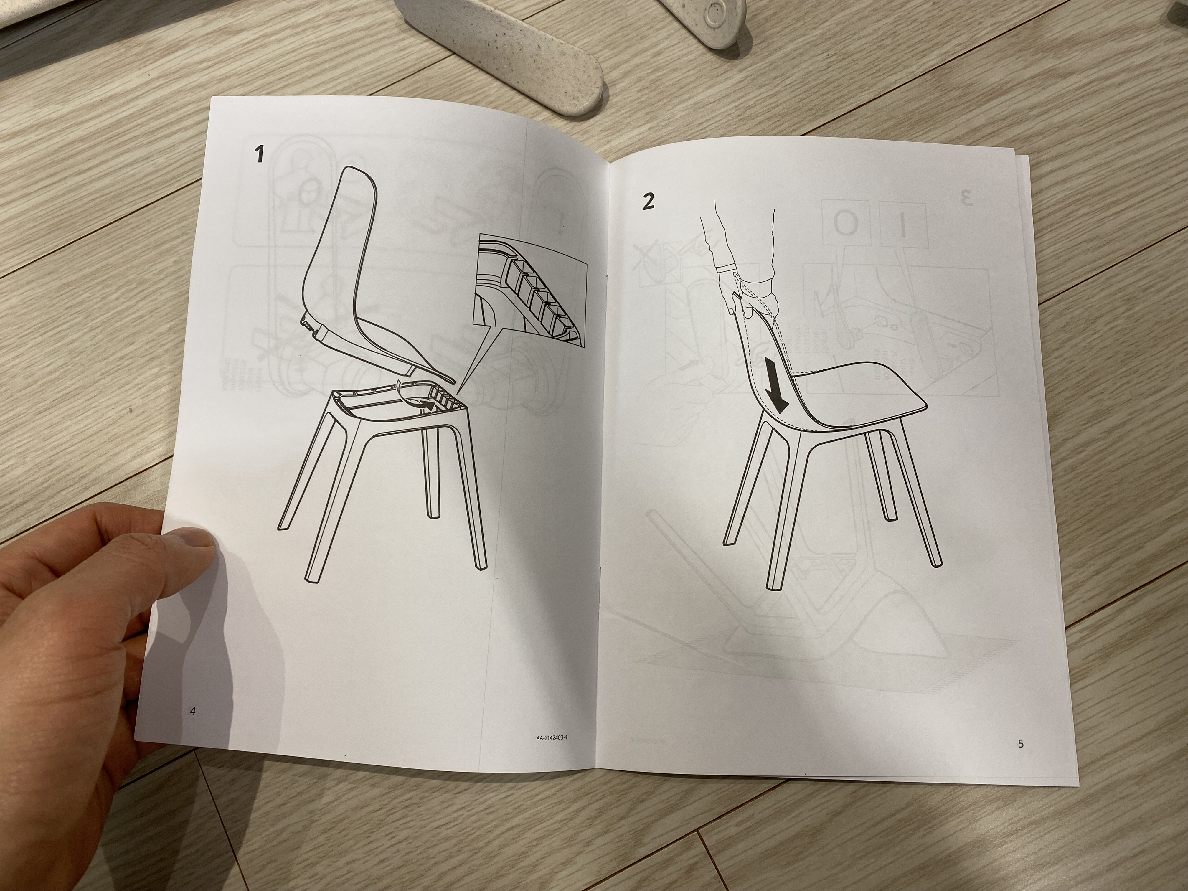 이케아 IKEA ODGER 오드게르 의자를 개봉한 모습입니다. 의자는 크게 두 부분으로 나뉘어져있고 2개의 연결 부품으로 고정을 하게 됩니다.