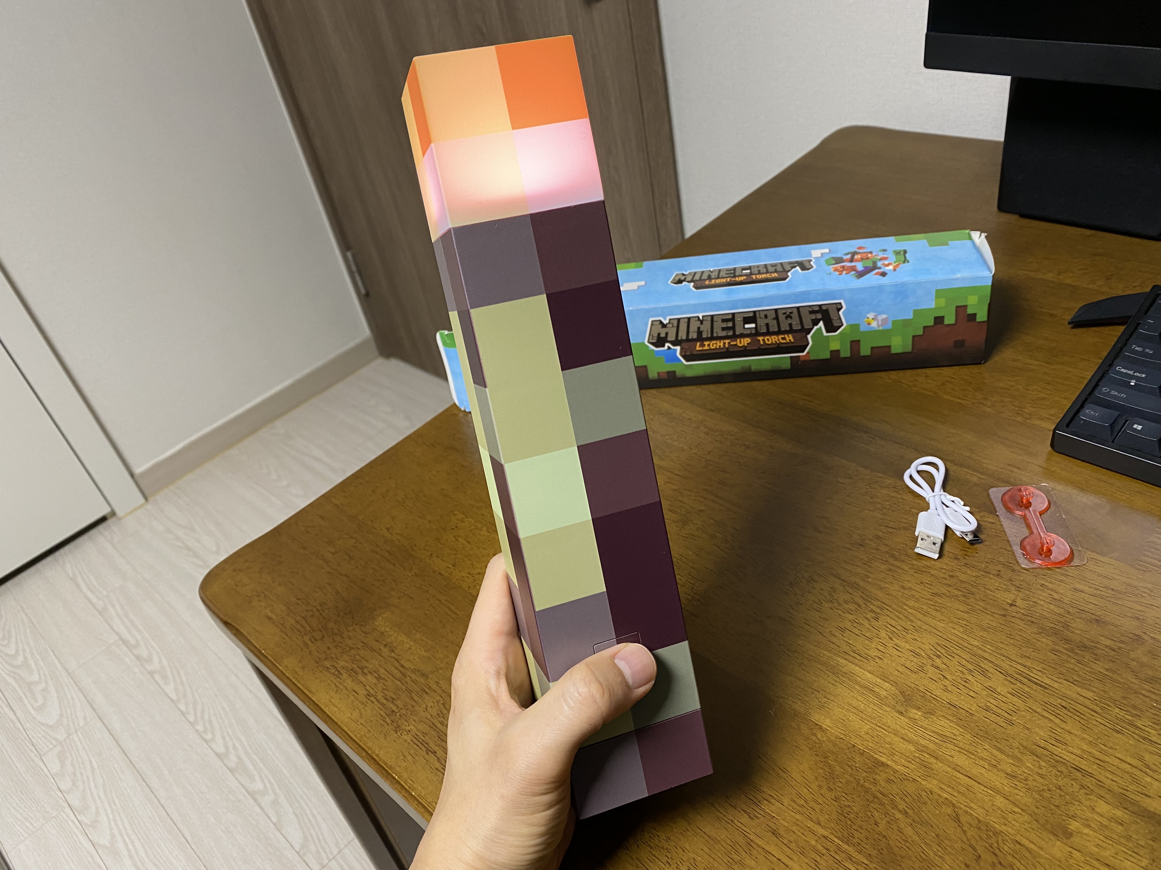 두둥... 마인크래프트 횃불의 모습입니다. 기대했던 것보다는 제품 상태가 양호합니다.