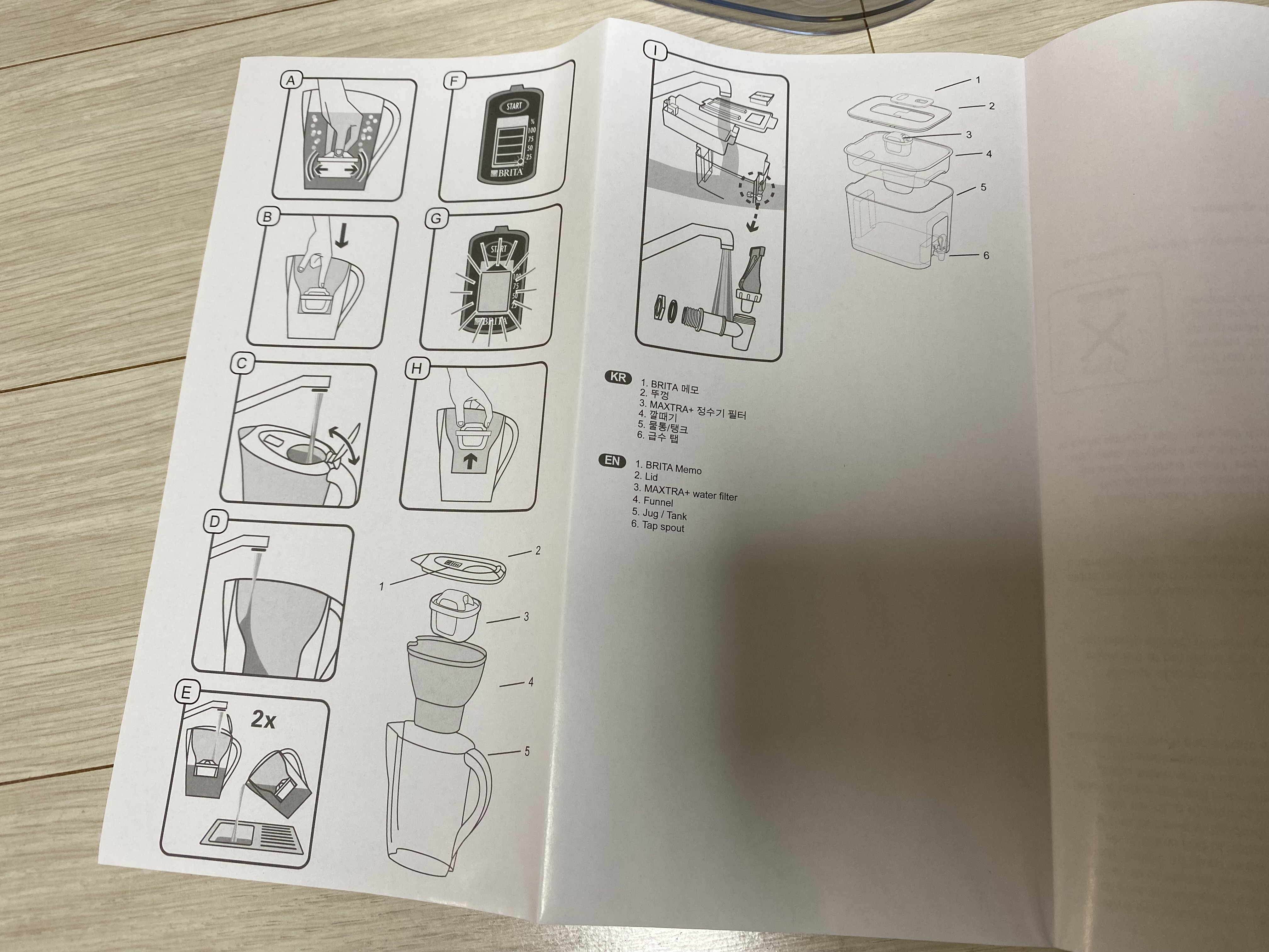 브리타 정수기 사용법은 설명서 그림을 보면 됩니다. 제가 정리하면 이렇습니다.
