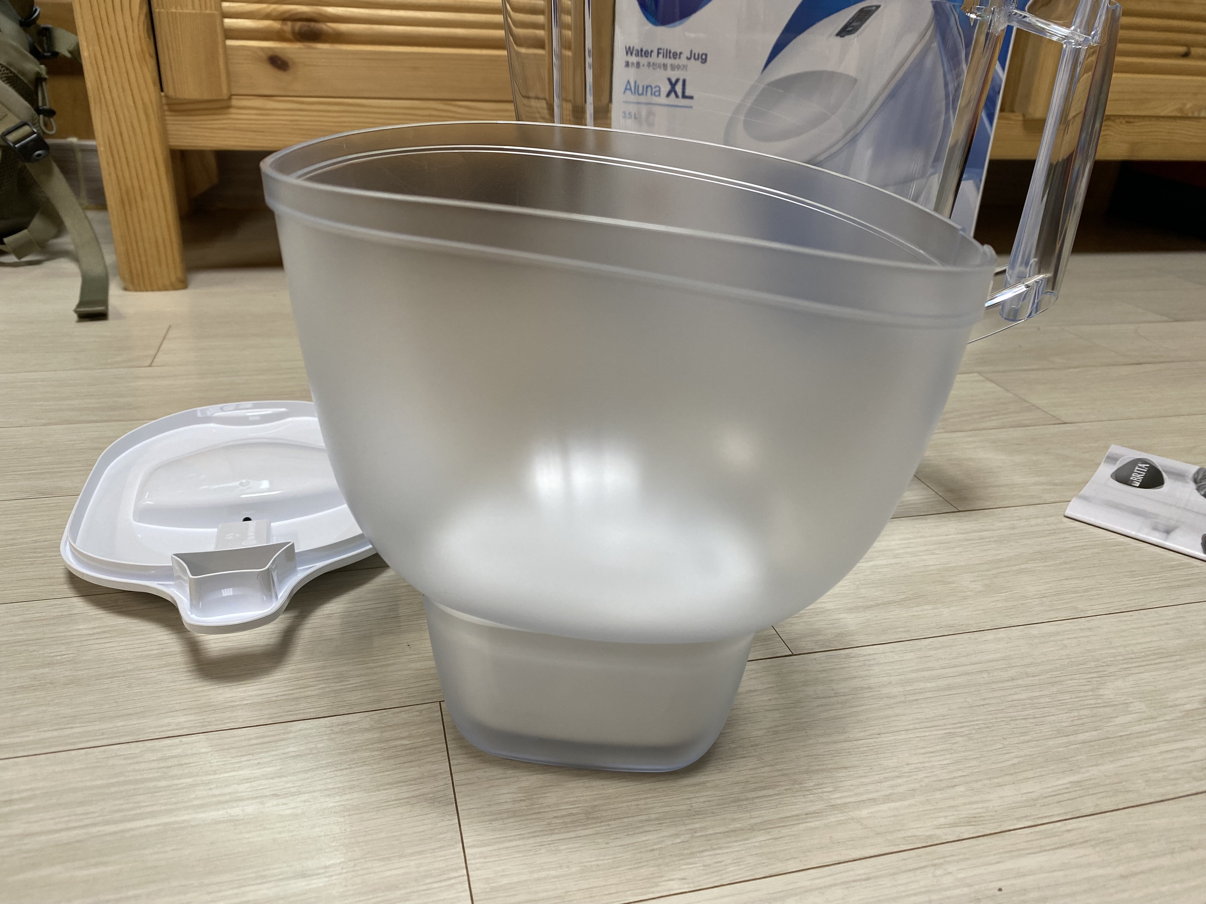 브리타 정수용기는 크게 세 부분(주전자, 깔때기, 뚜껑)으로 나누어집니다.