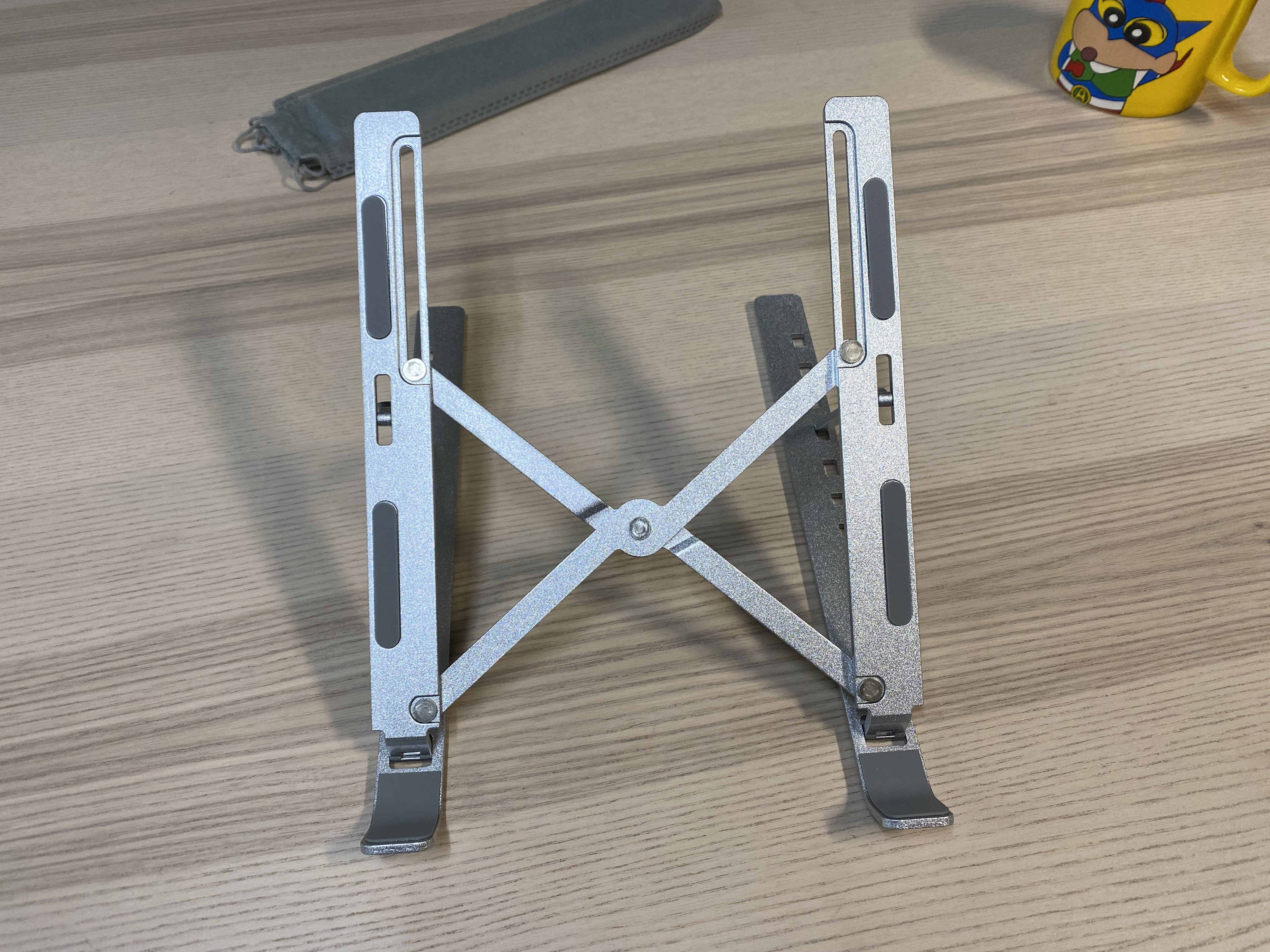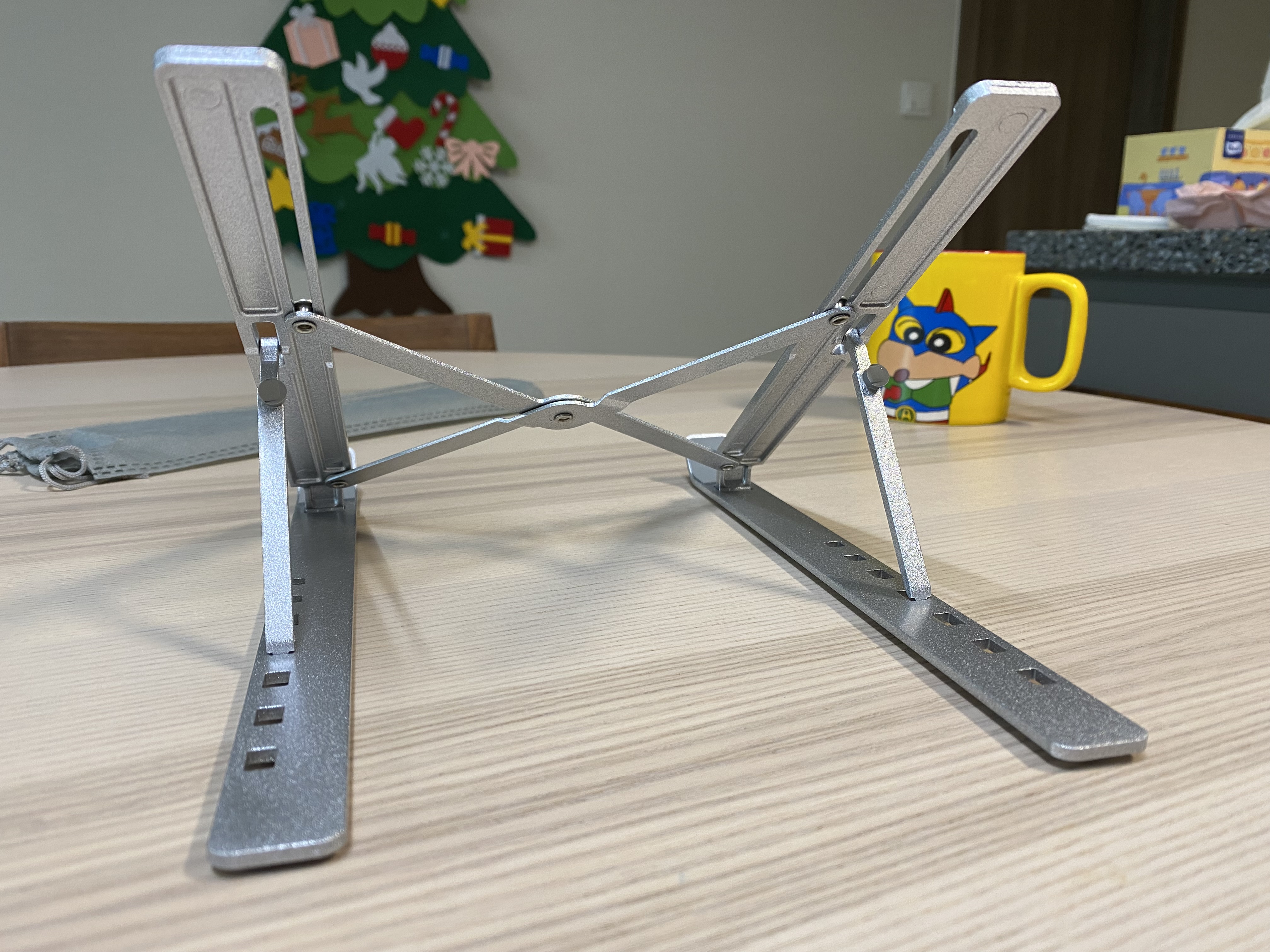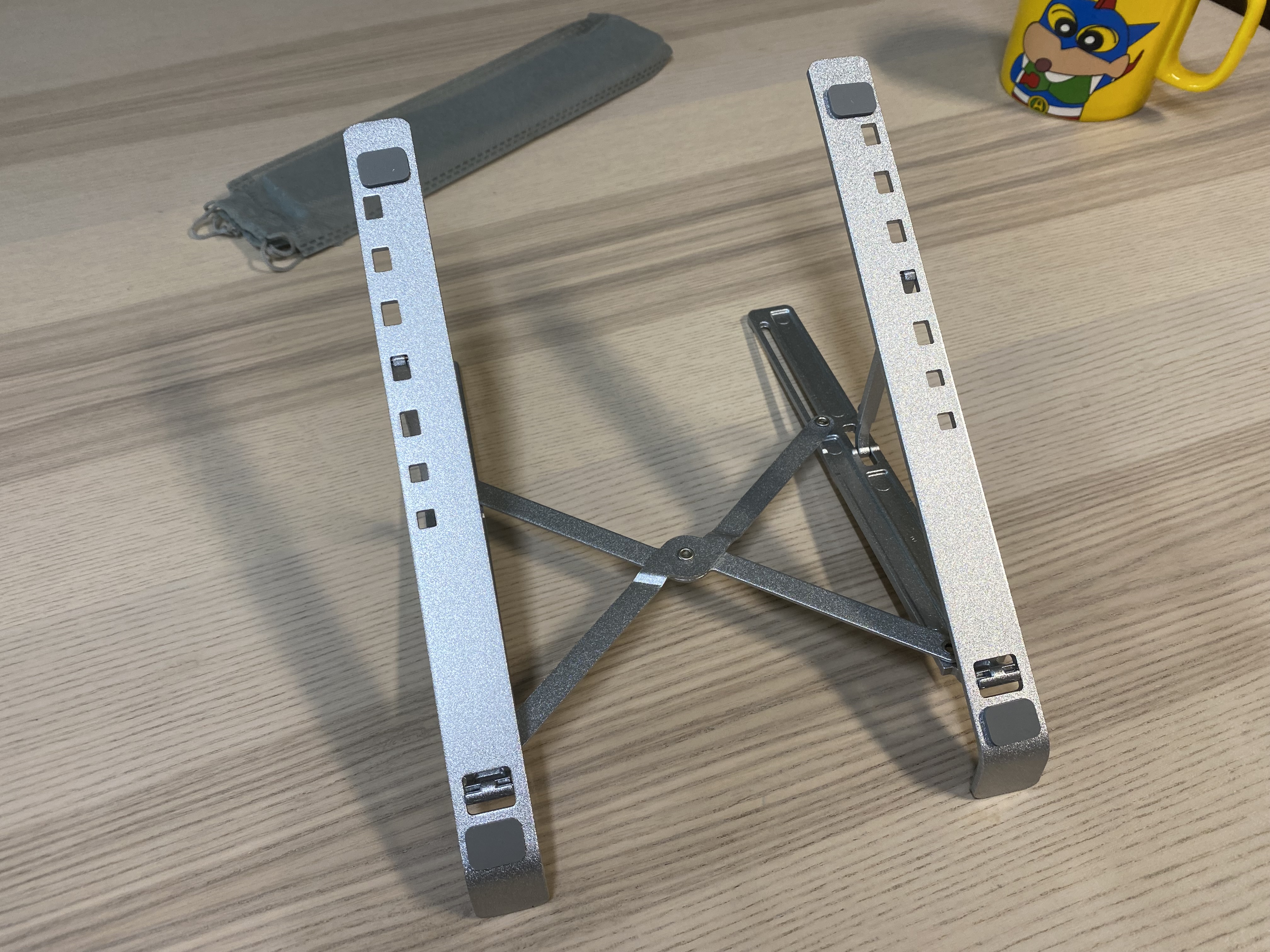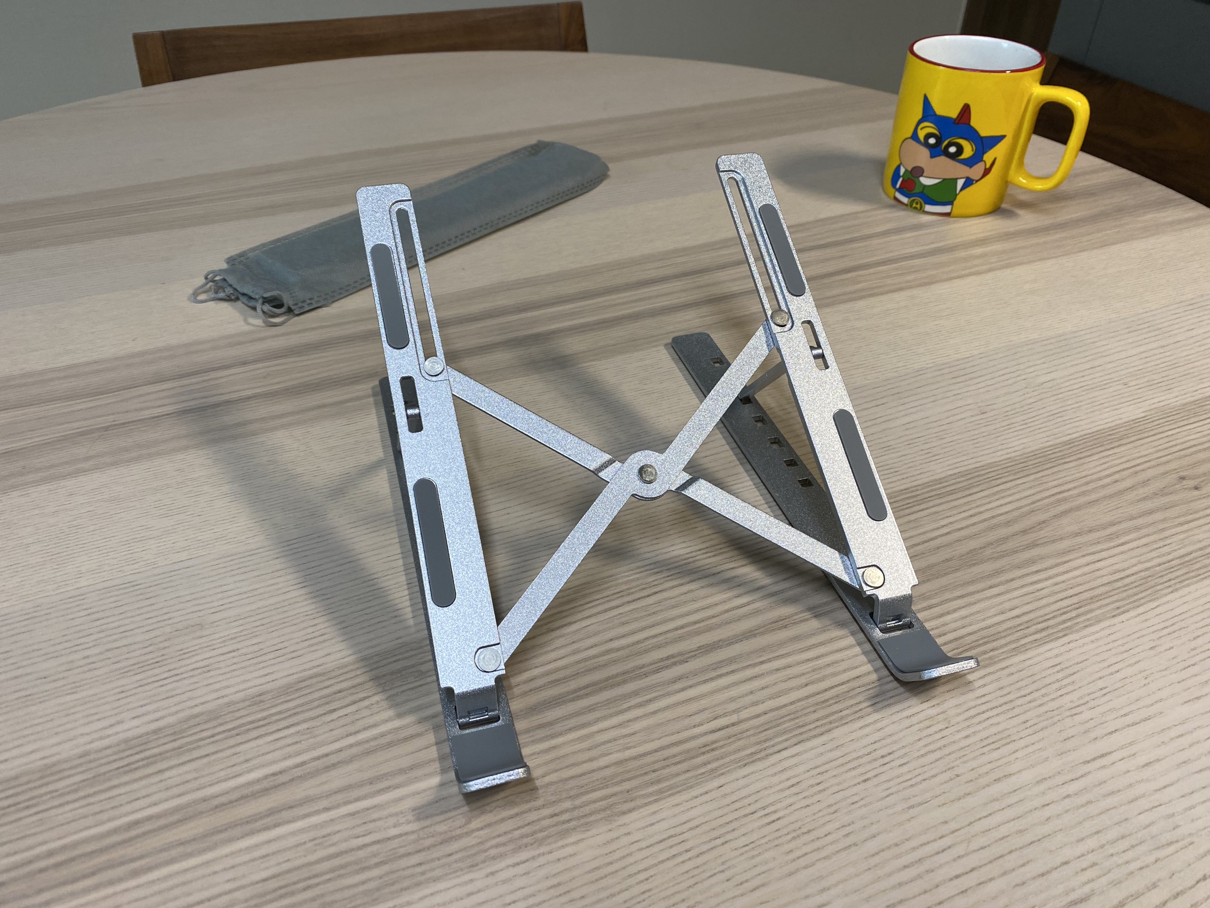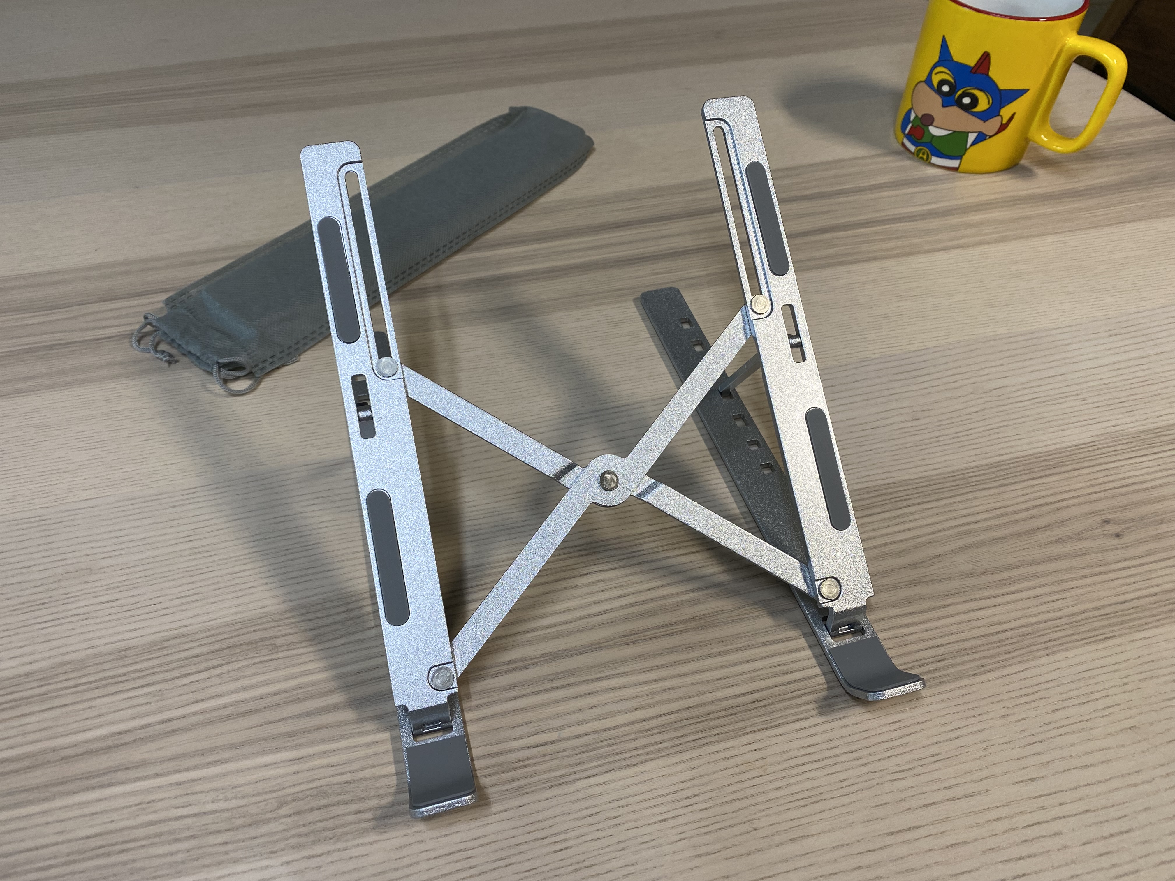 알리익스프레스 휴대용 알루미늄 노트북 스탠드. 3000원에 이정도 퀄리티의 알리미늄 거치대를 살 수 있다니 신기하네요. 마감처리나 약간의 뒤틀림이 있지만 사용하는데 큰 문제가 되지 않는 수준입니다. 노트북을 장시간 사용하거나 거북목이 걱정되는 분에게 추천합니다. 구조가 단순하고 튼튼한 제품이라 장시간 오래 사용할 수 있을 것 같습니다.