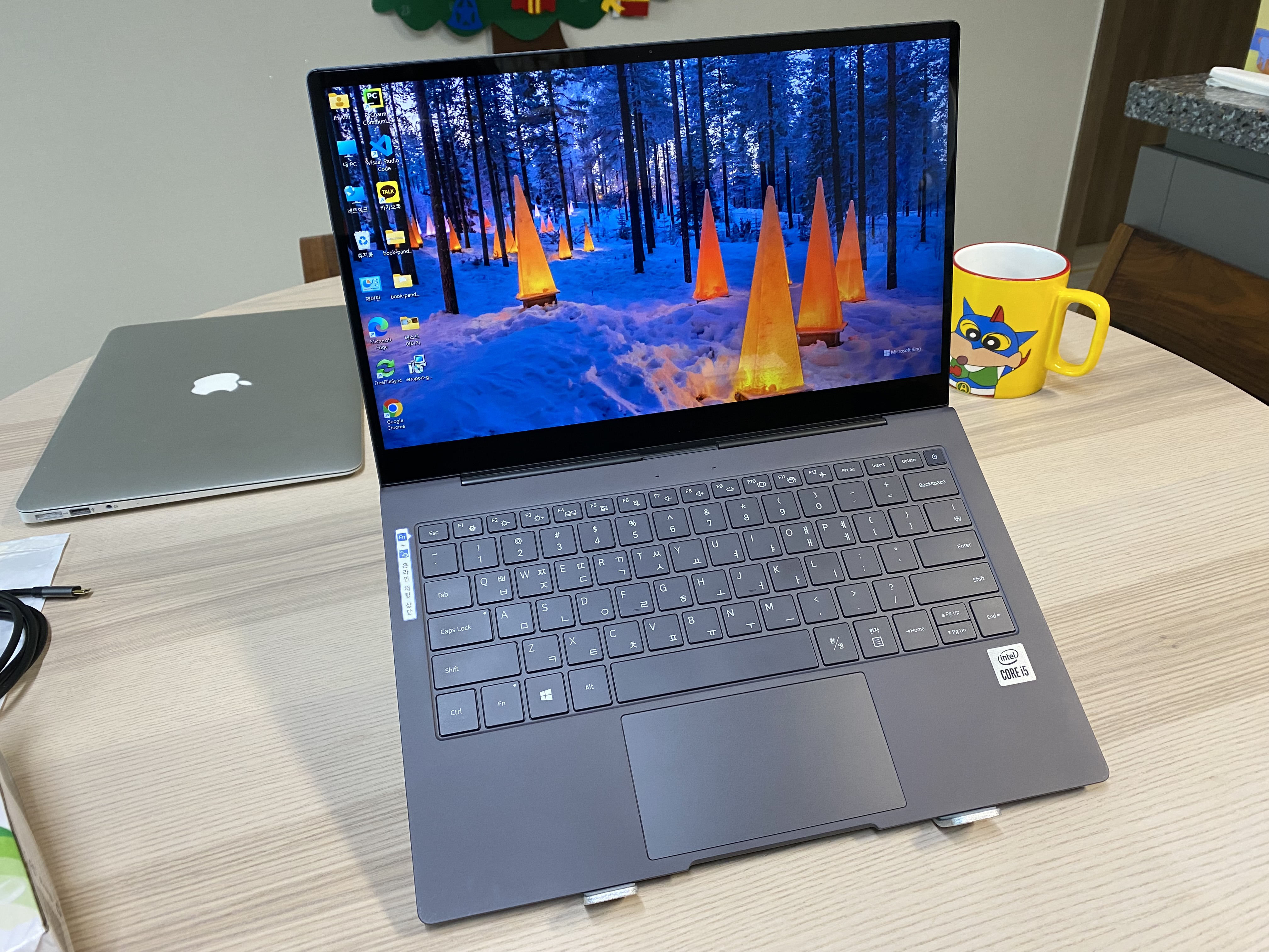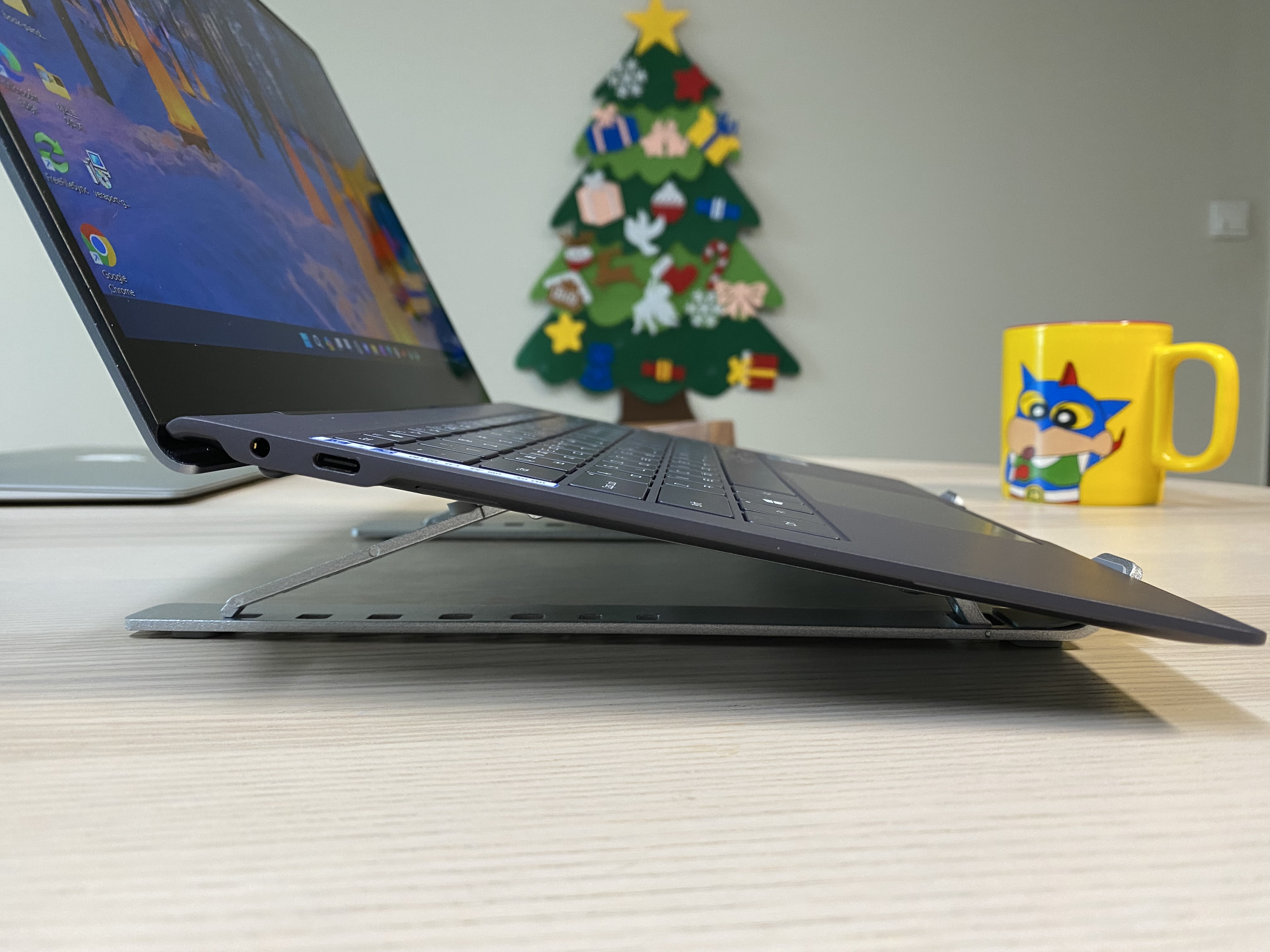 13인치 삼성 노트북을 거치한 모습입니다.