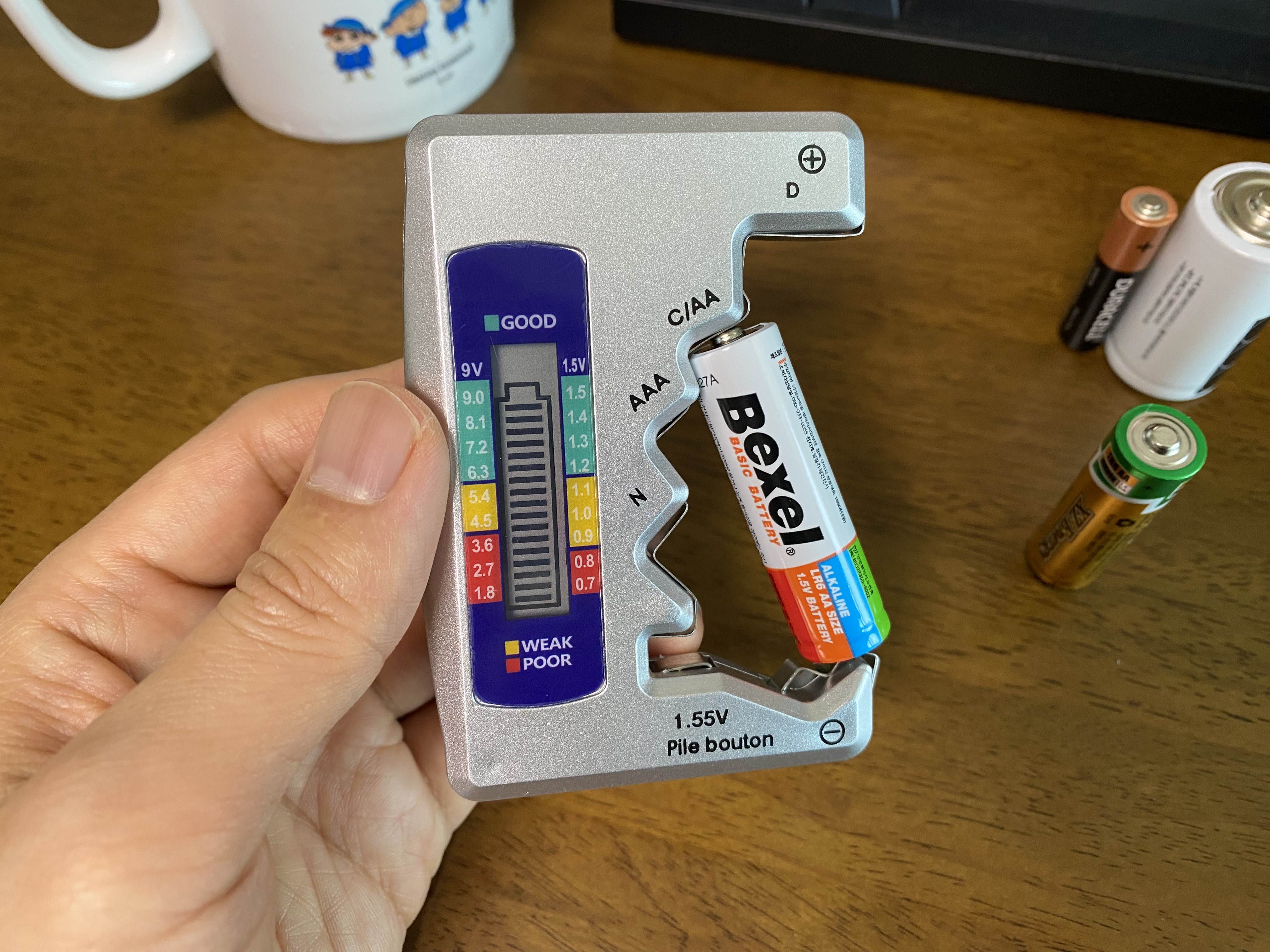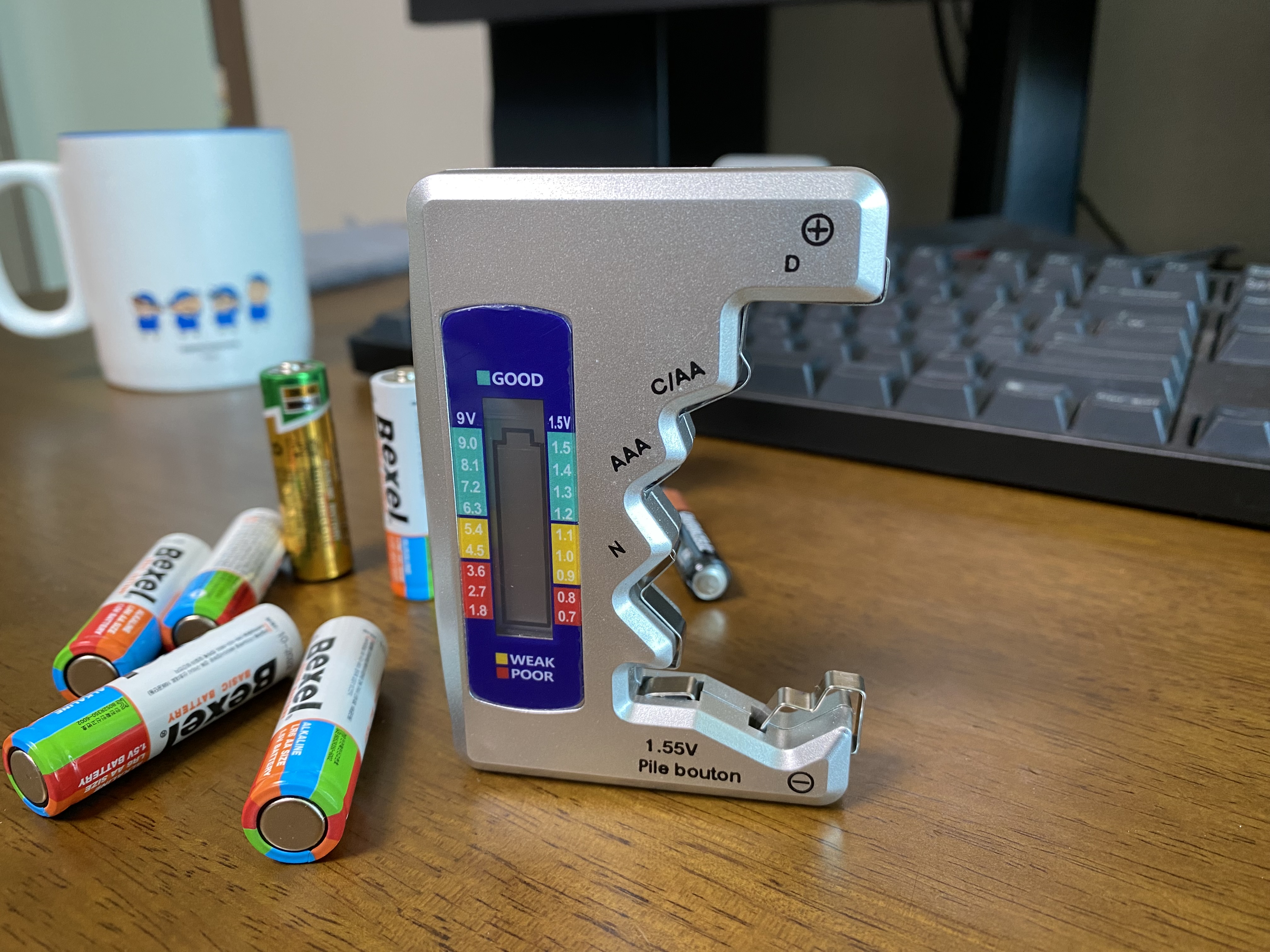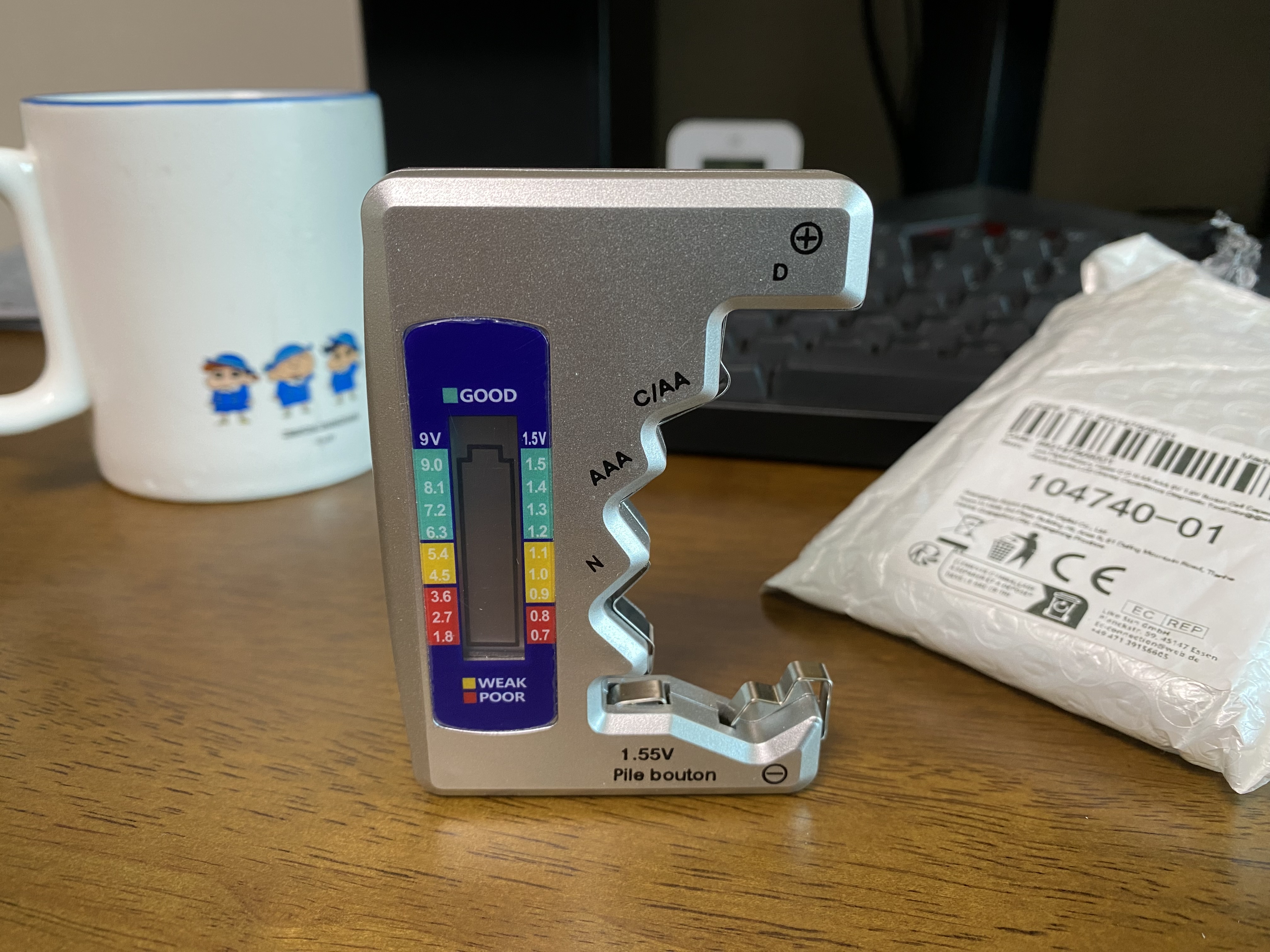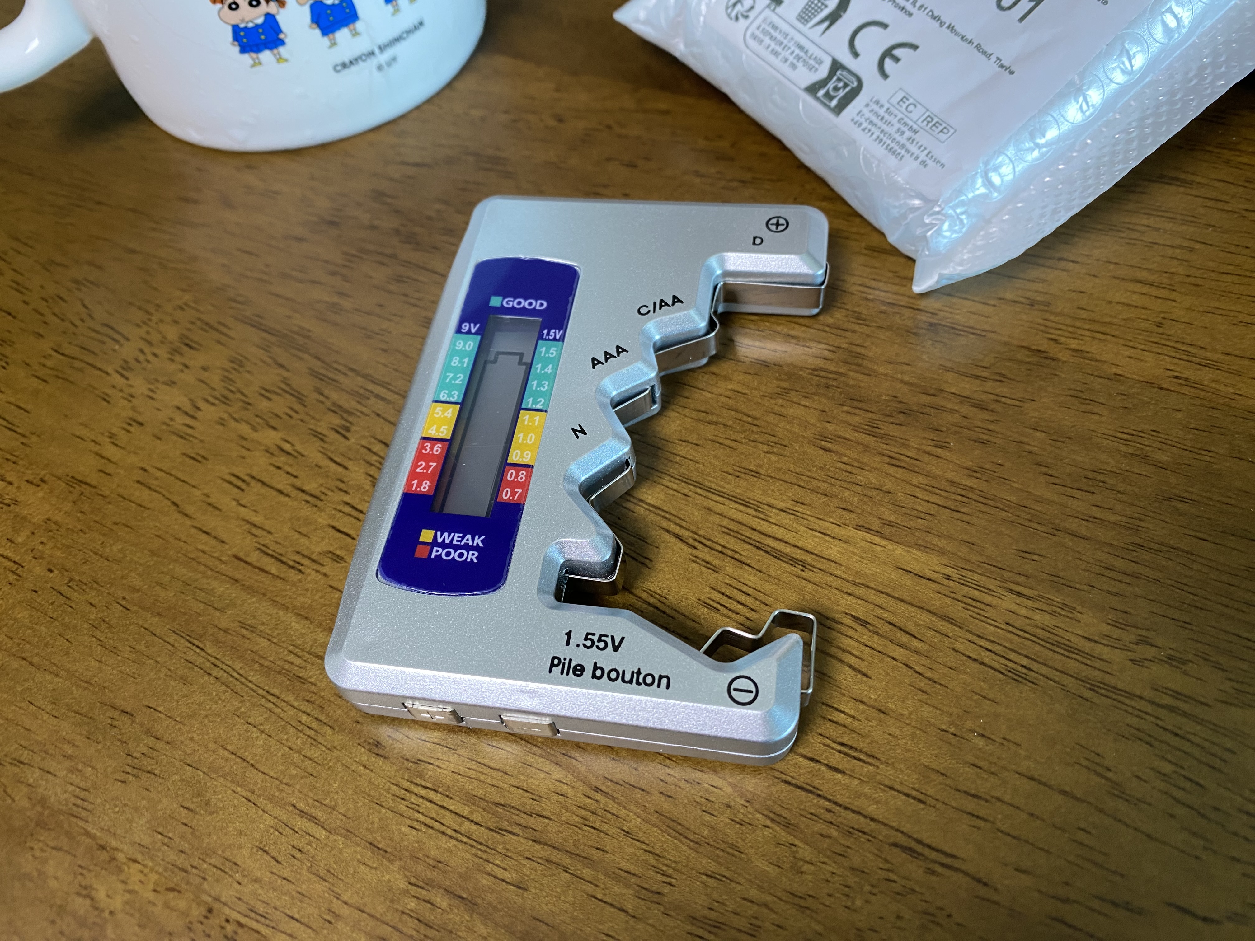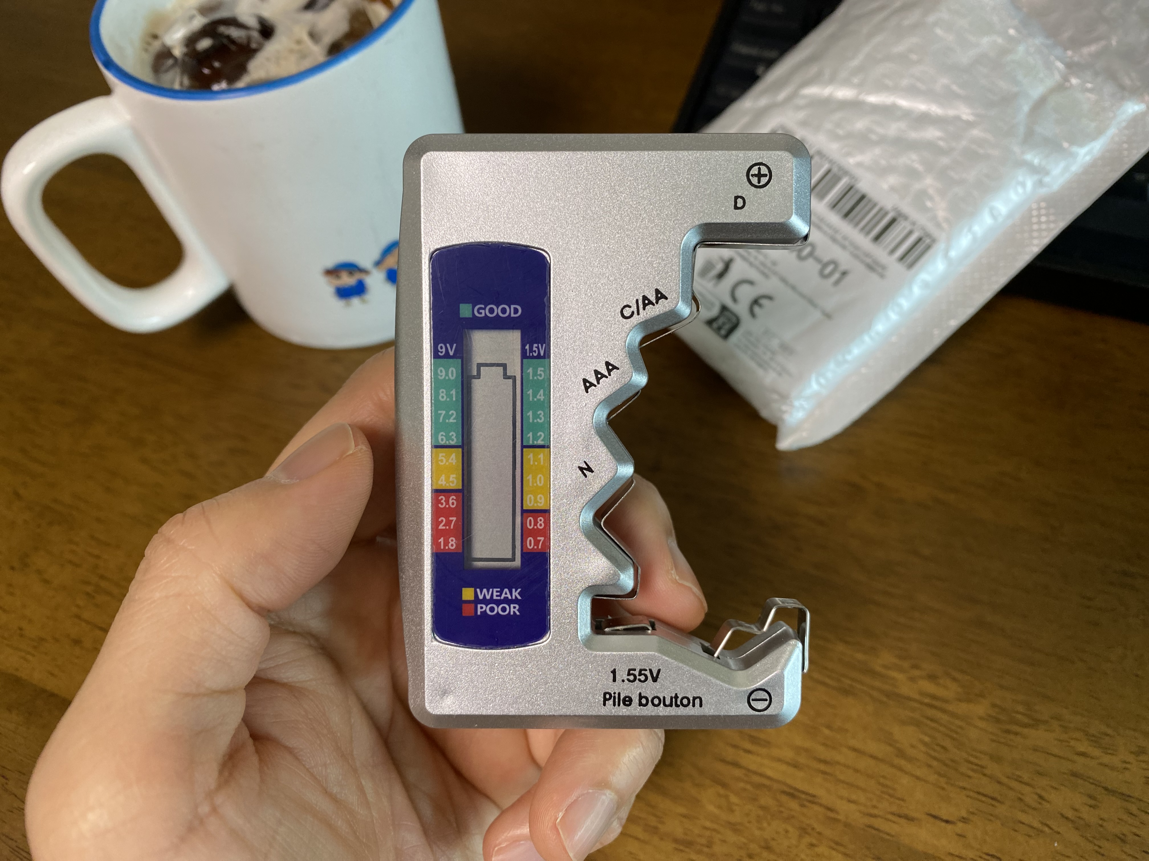 알리에서 구매한 디지털 배터리 테스터. 알리익스프레스 사이트에는 '디지털 배터리 테스터 C D N AA AAA 9V 1.5V 단추 셀 용량 검사 감지기, LCD 디스플레이 용량 진단 도구'라고 이름이 적혀있네요.