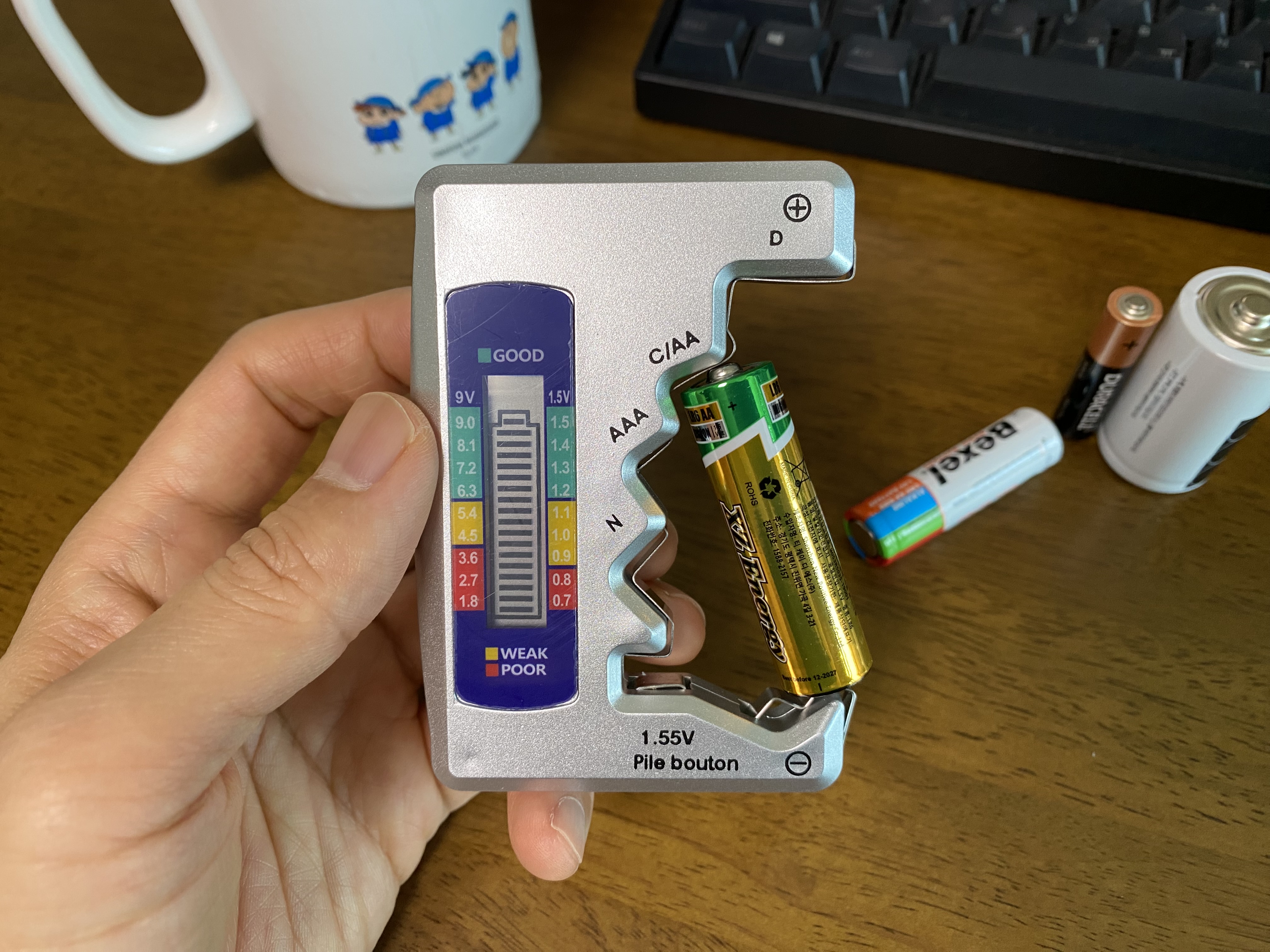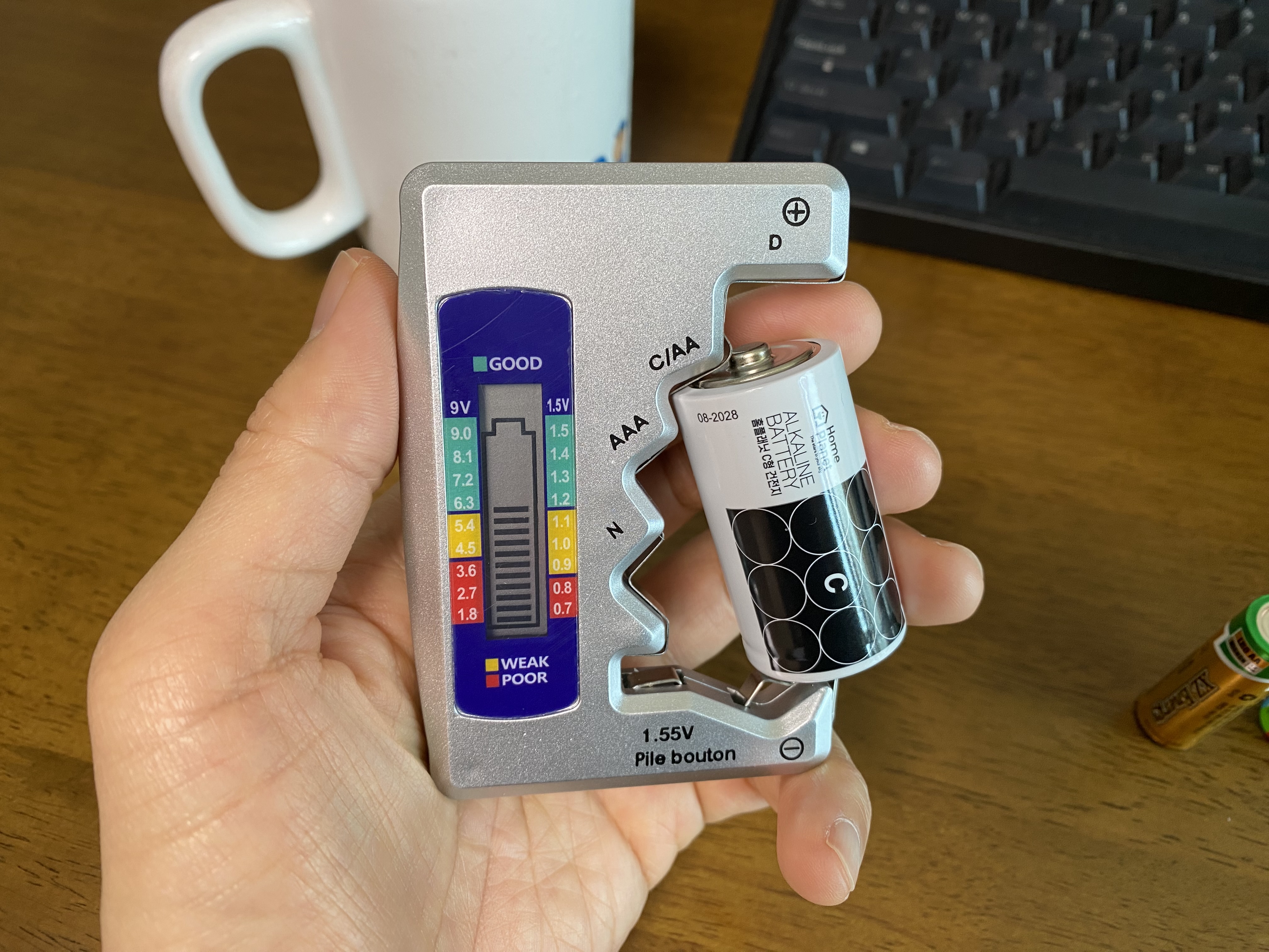 테스트한 건전지들이 거의 다 배터리가 많은 걸로 나와서 제품에 문제가 있나 생각했는데 그건 아니네요. C 타입 건전지를 측정해 보니 위 사진처럼 부족한 상태를 보여주네요.