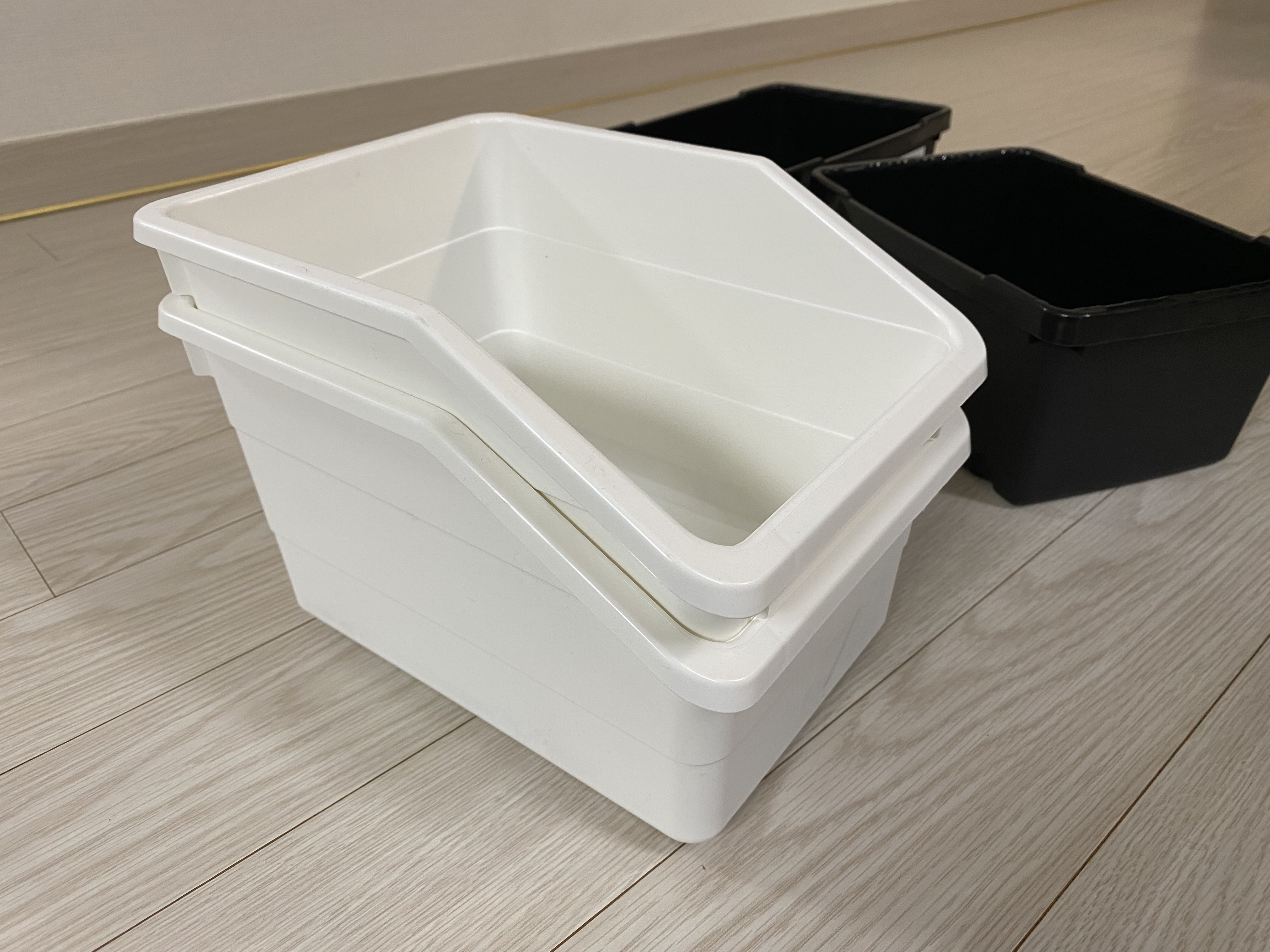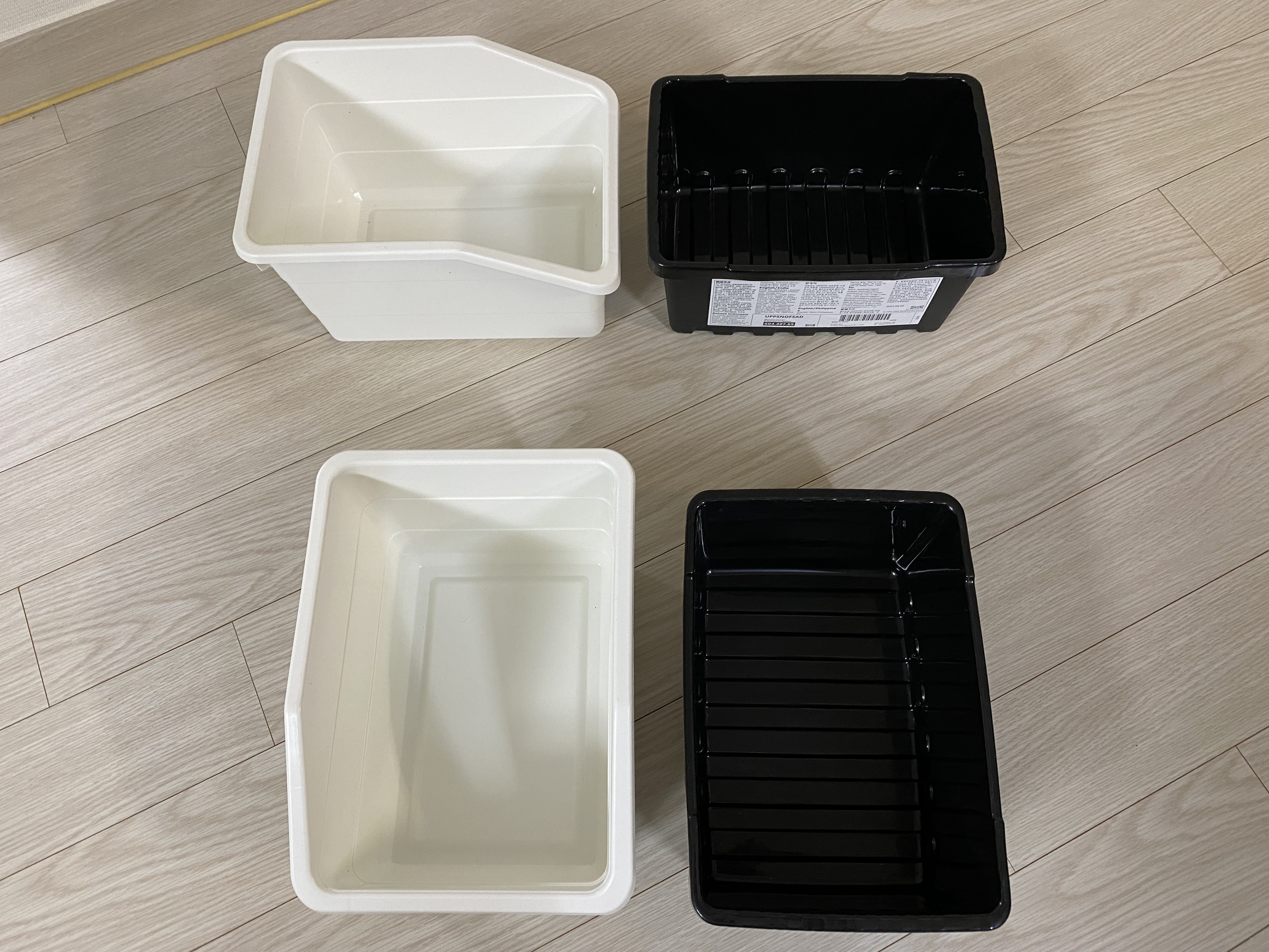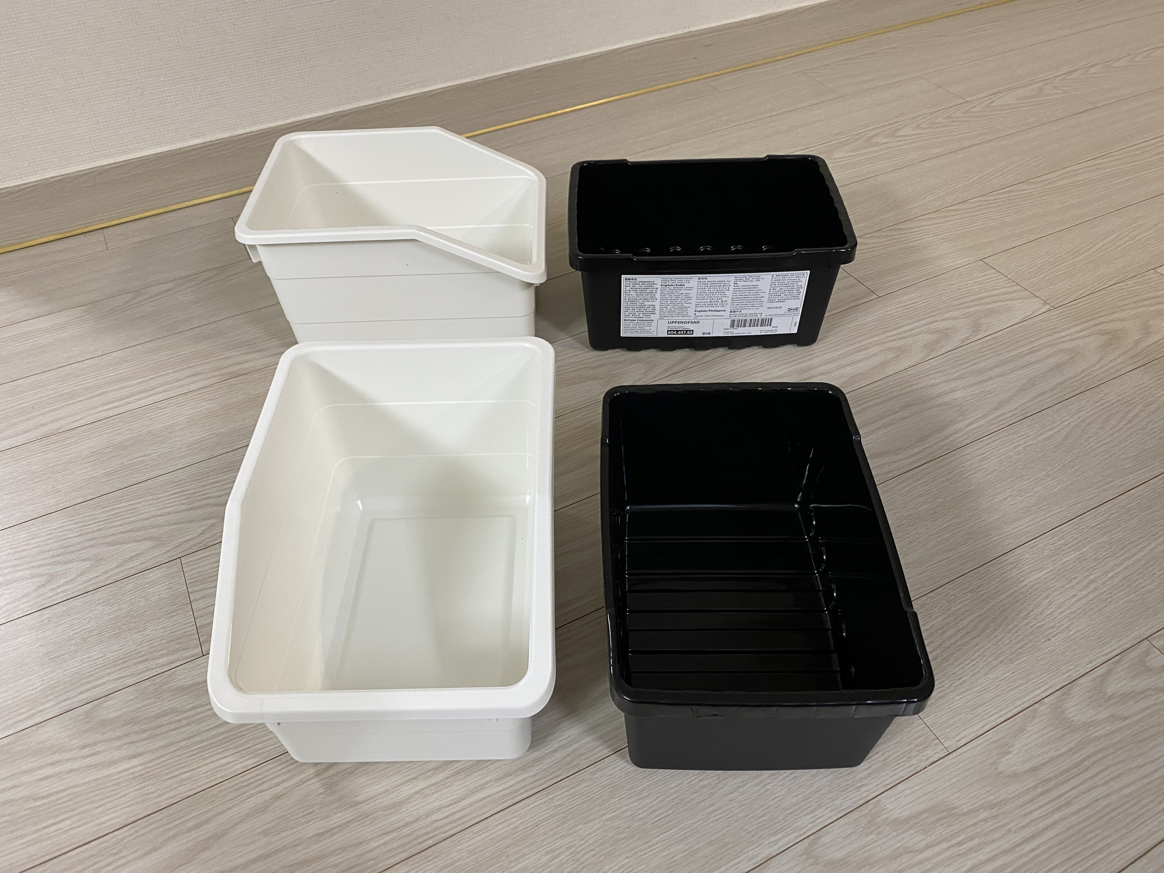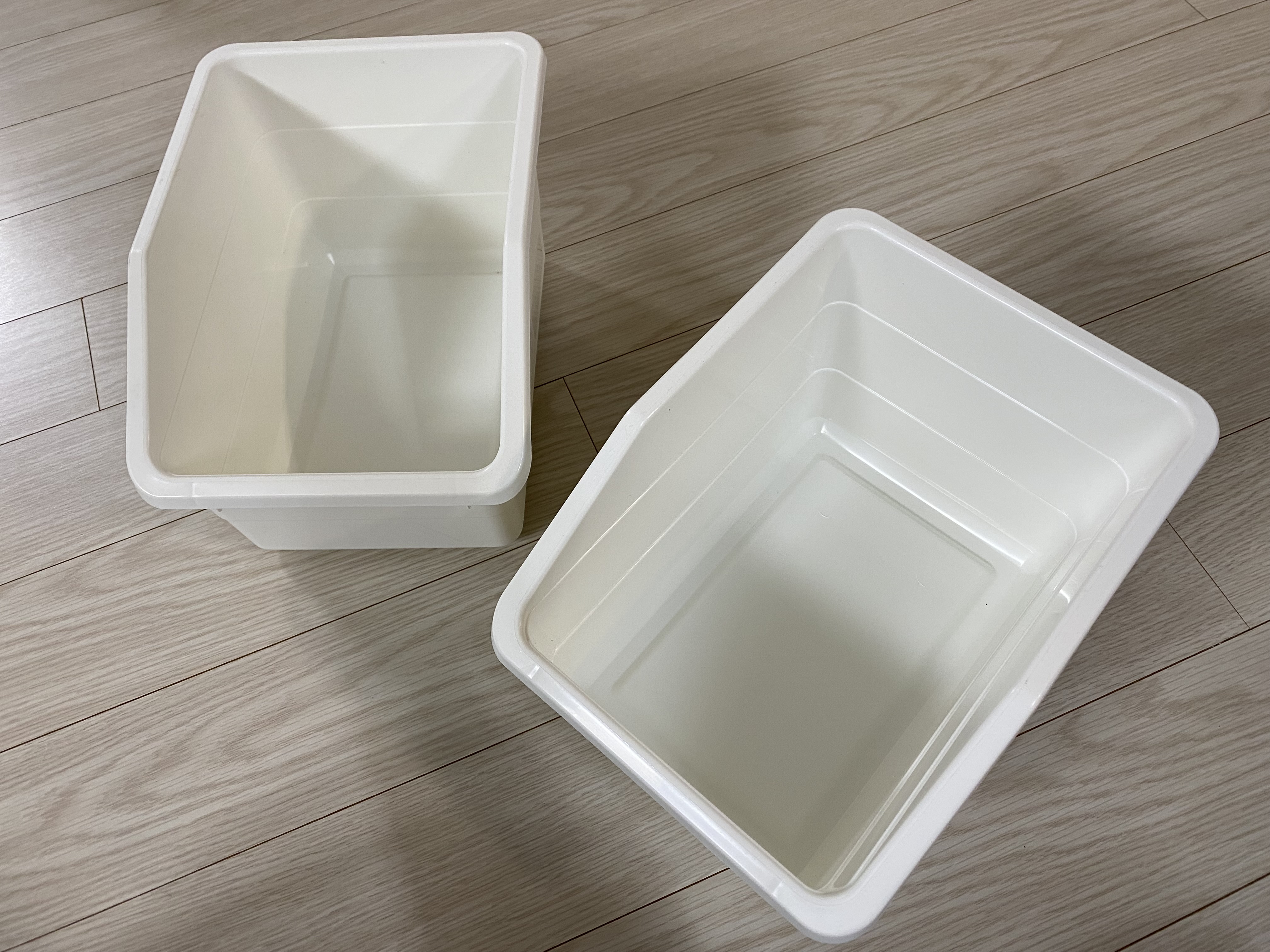 다른 이케아 제품인 웁스노프사드 수납상자(1000원)와 비교 사진입니다. 소케르비트 수납함 가격이 2배 가까이 비싸서 그런지 퀄리티, 튼튼함 면에서 웁스노프사드 수납상자보다 낫습니다. 근데 웁스노프사드는 위로 쌓을 수 있는 구조라 나름 장점도 있습니다. 창고에는 웁스노프사드가 더 어울릴 것 같습니다.