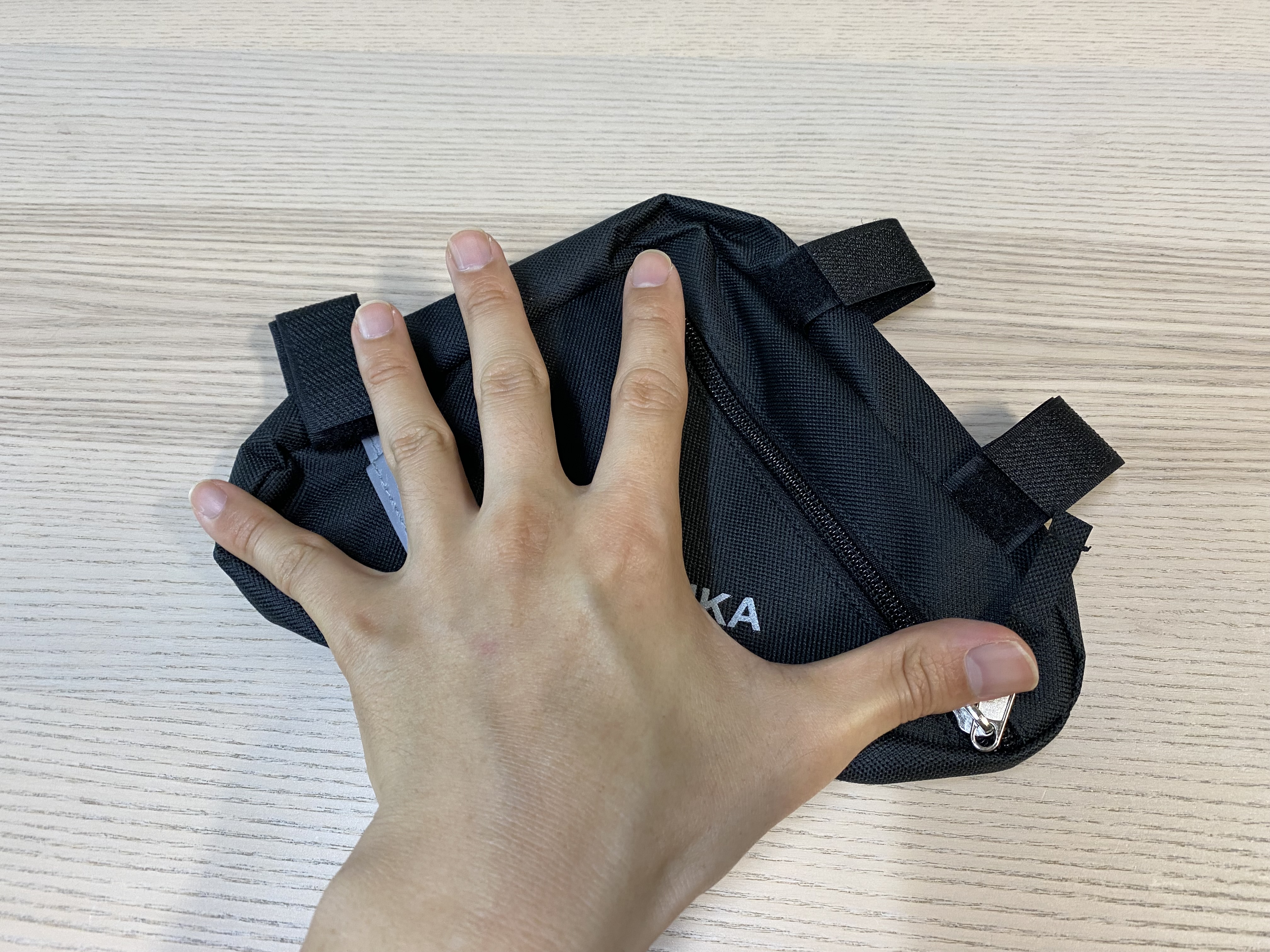 자전거 가방 사이즈는 성인 남자 한뼘정도. 작은 사이즈이지만 아이폰 큰 거도 들어갑니다. 그래도 물병을 넣기에는 작은 사이즈라 생각합니다.