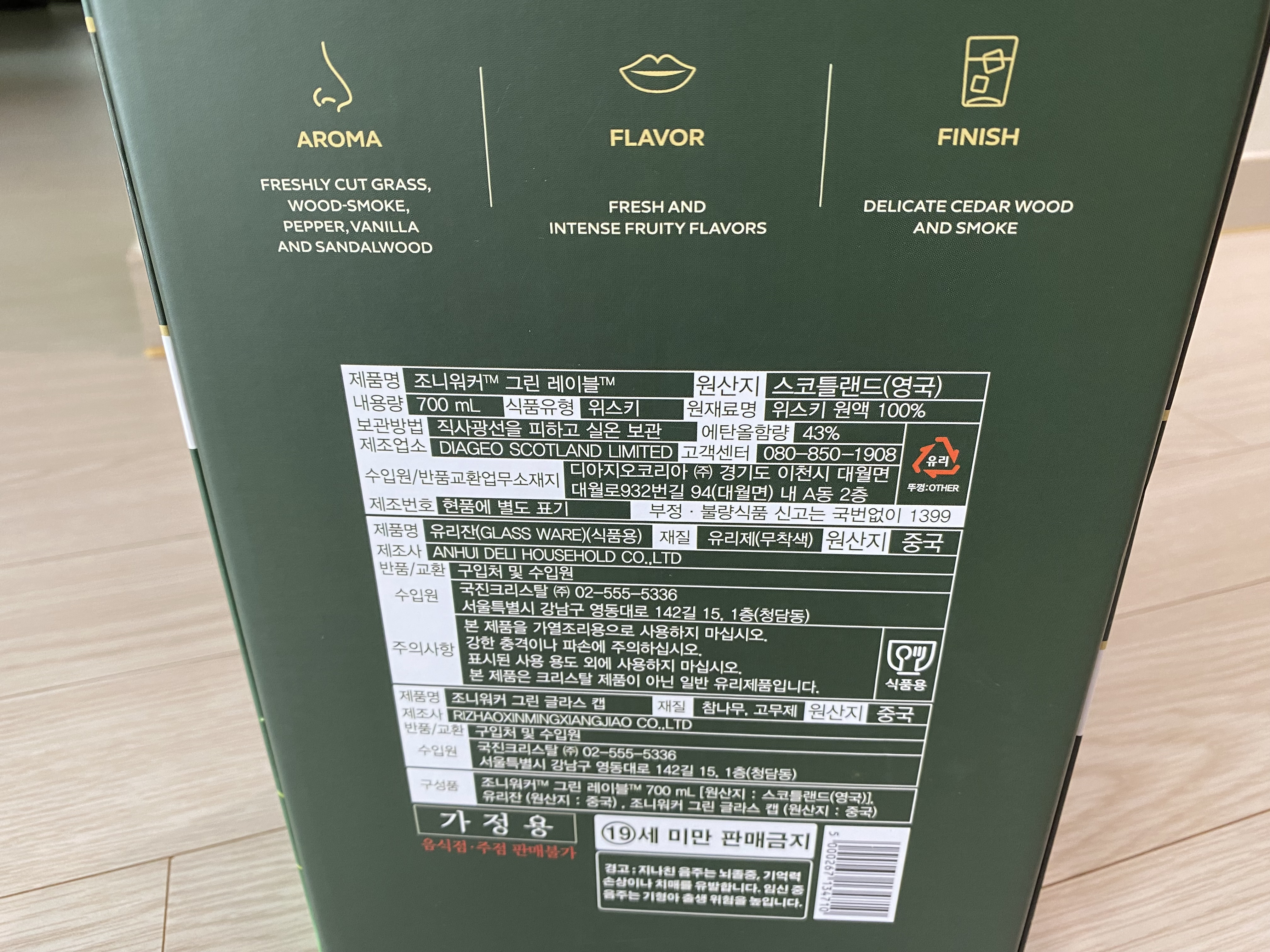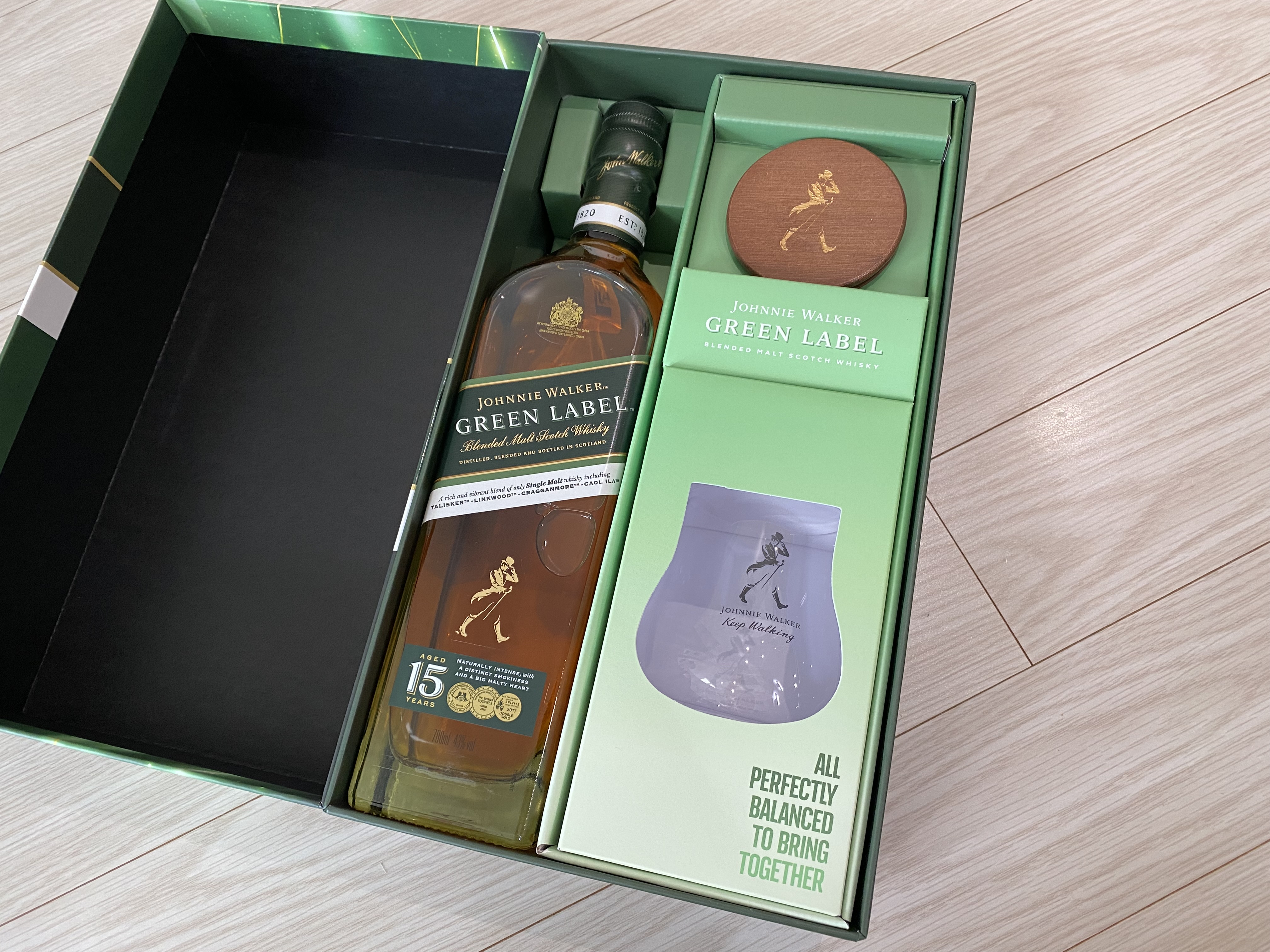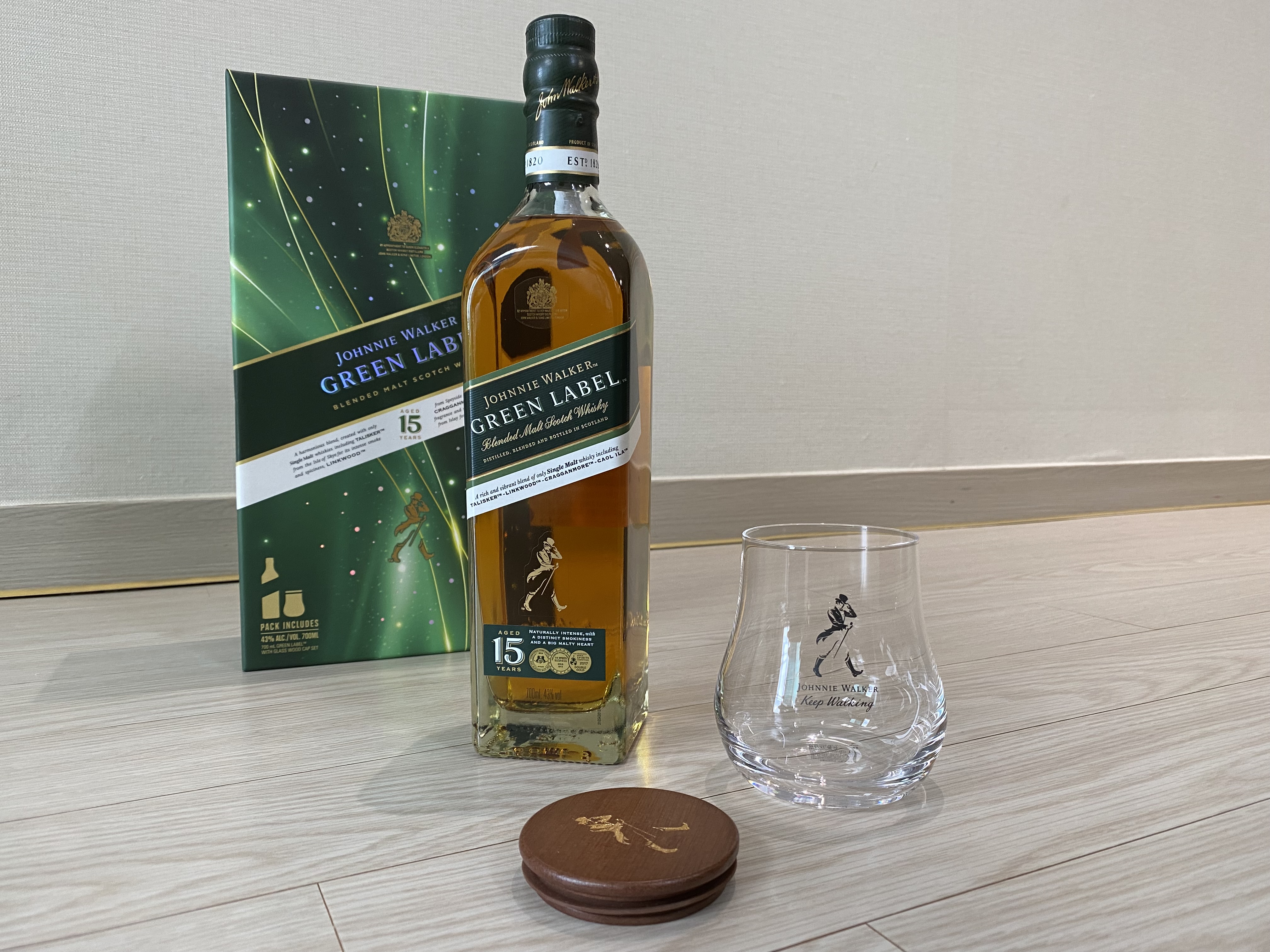 집에 가져온 조니워커 그린 레이블 세트. 조니워커 15년산입니다.