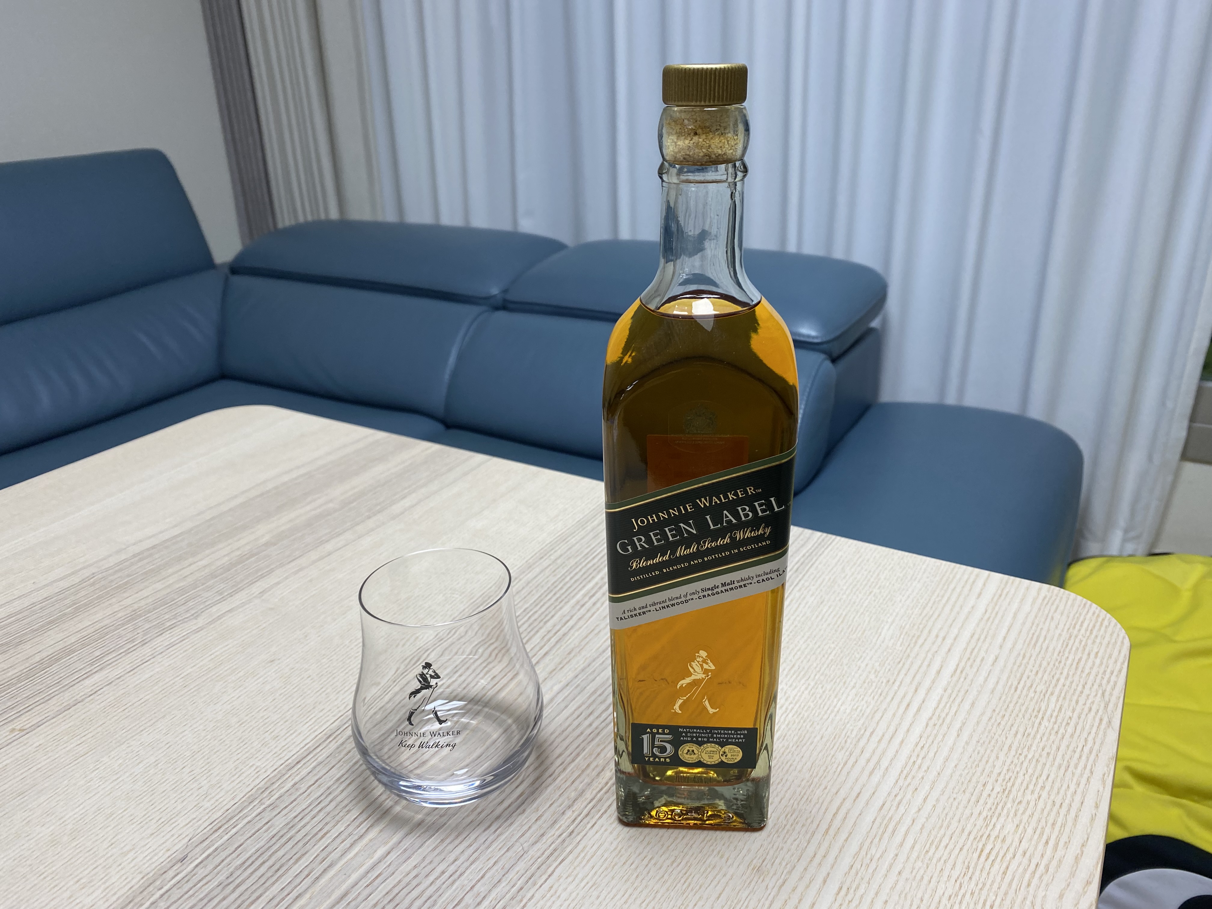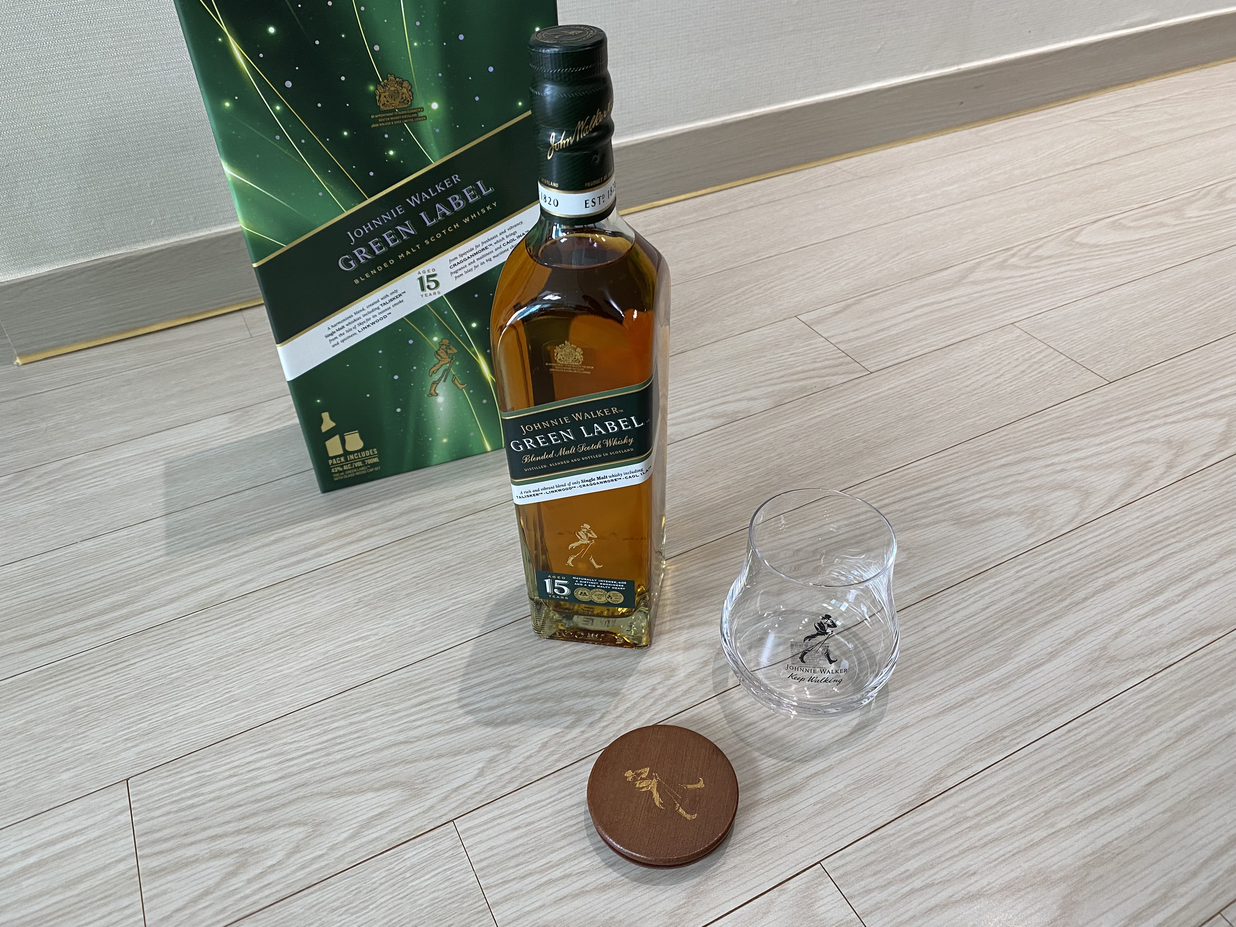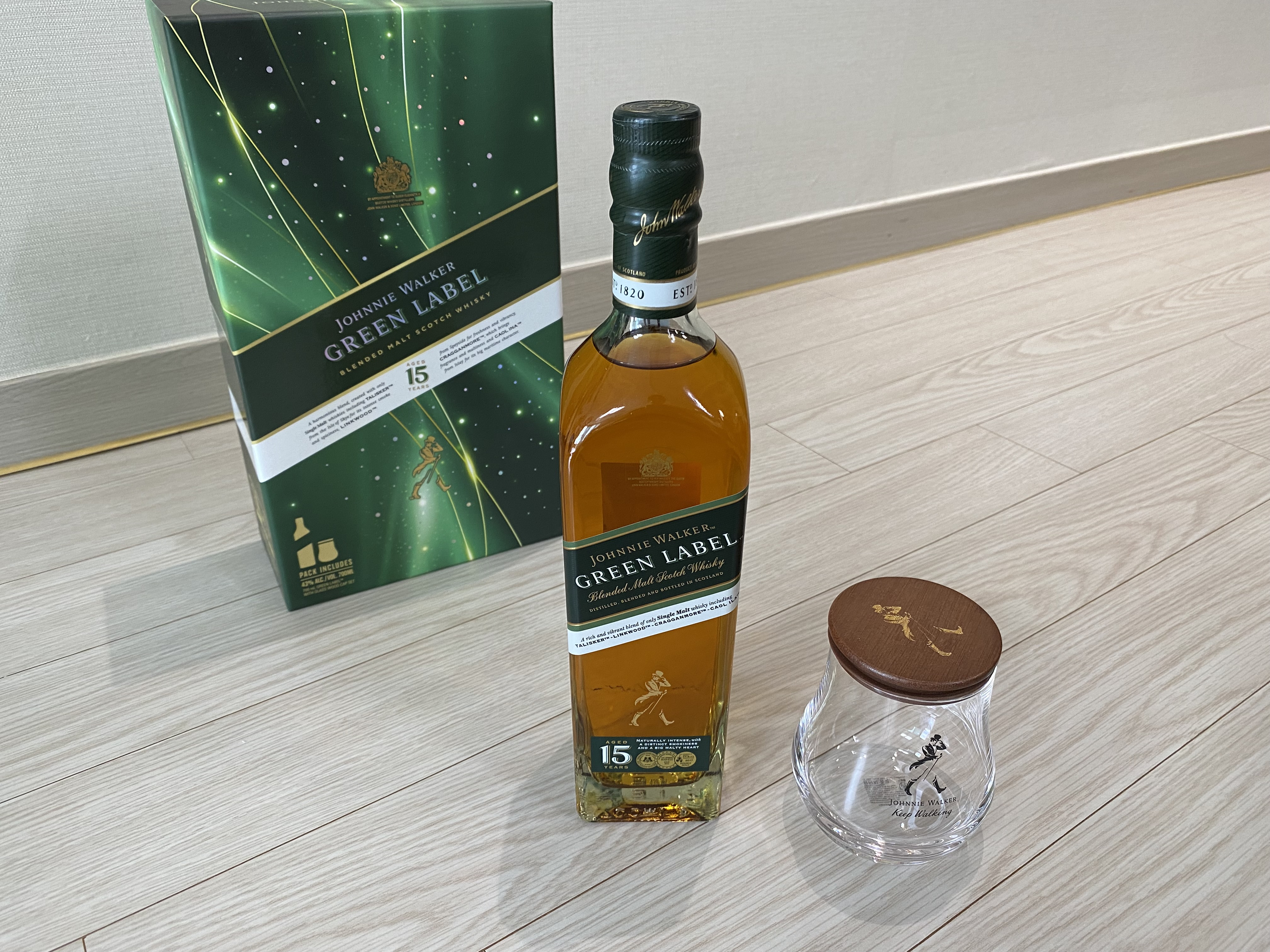 집에 가져온 조니워커 그린 레이블 세트. 조니워커 15년산입니다.