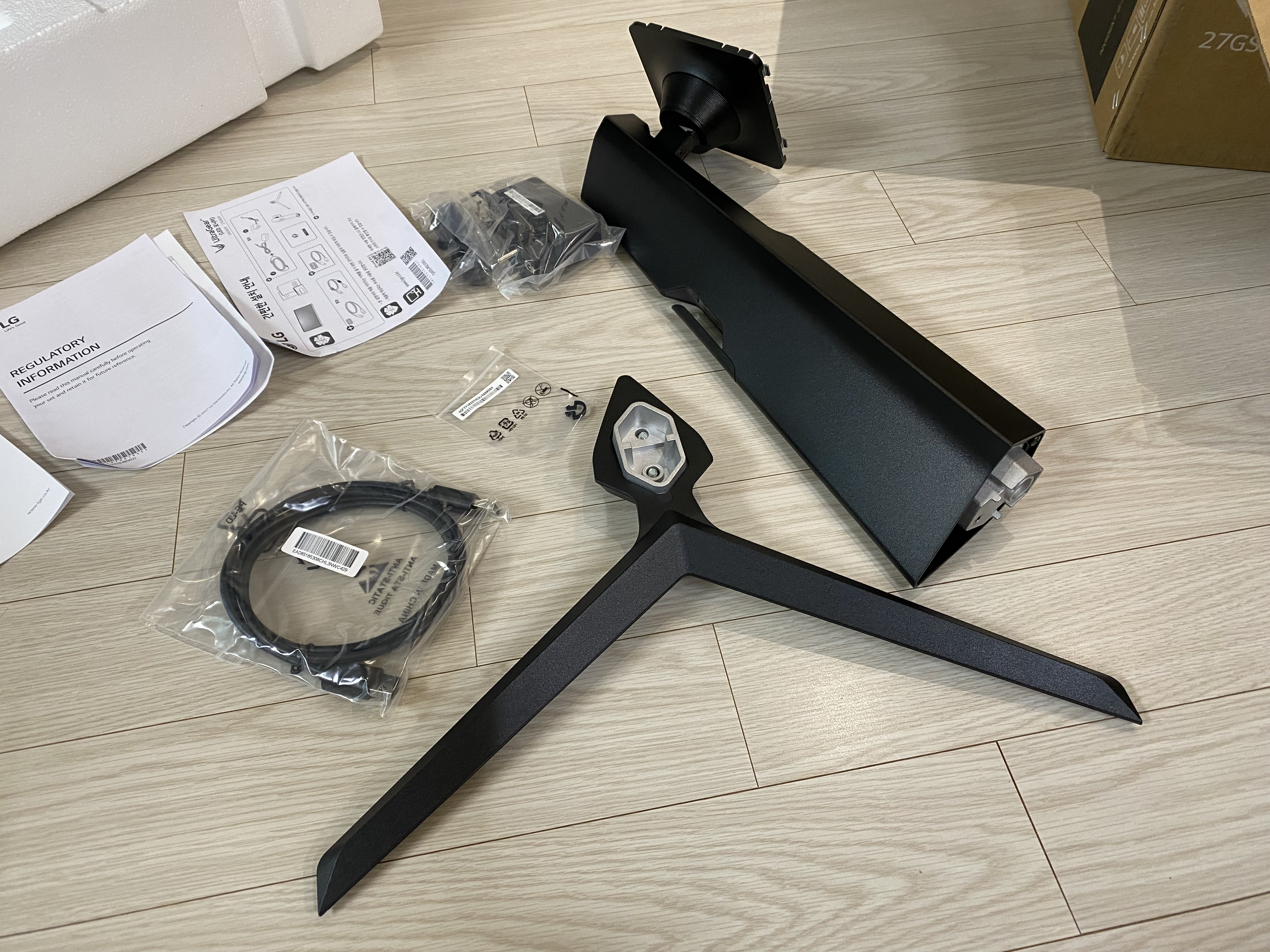 LG 27GS65F 27인치 울트라기어 게이밍모니터 거치대를 준비한 모습입니다.