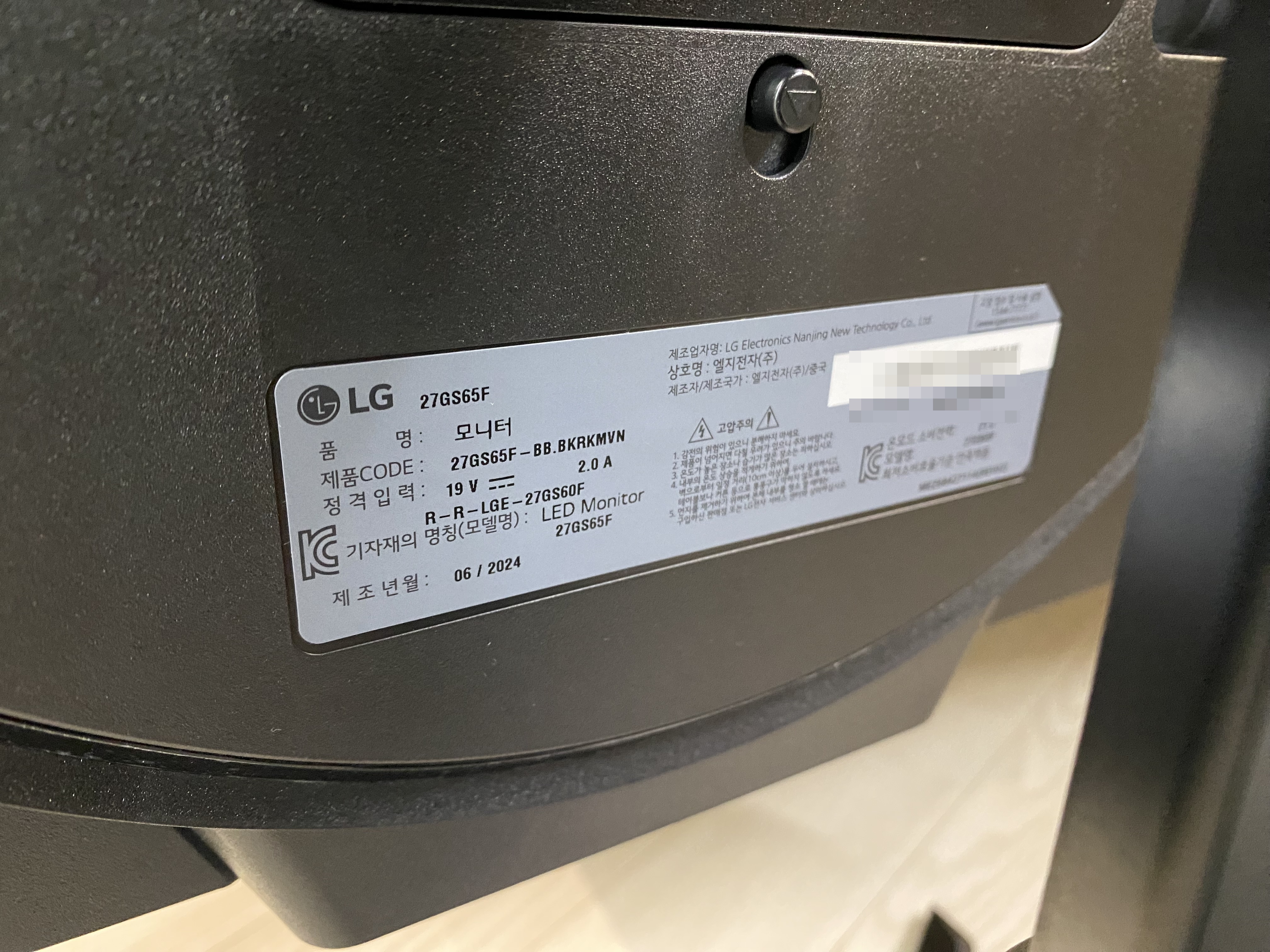 이번 LG 게이밍모니터의 품명은 27GS65F입니다. 예전에 샀던 건 27GN650인데 매번 주사율 같은 사양을 조금씩 변경하며 제품명을 바꾸는 것 같습니다. 사실 일반적인 용도로는 큰 차이 없습니다.