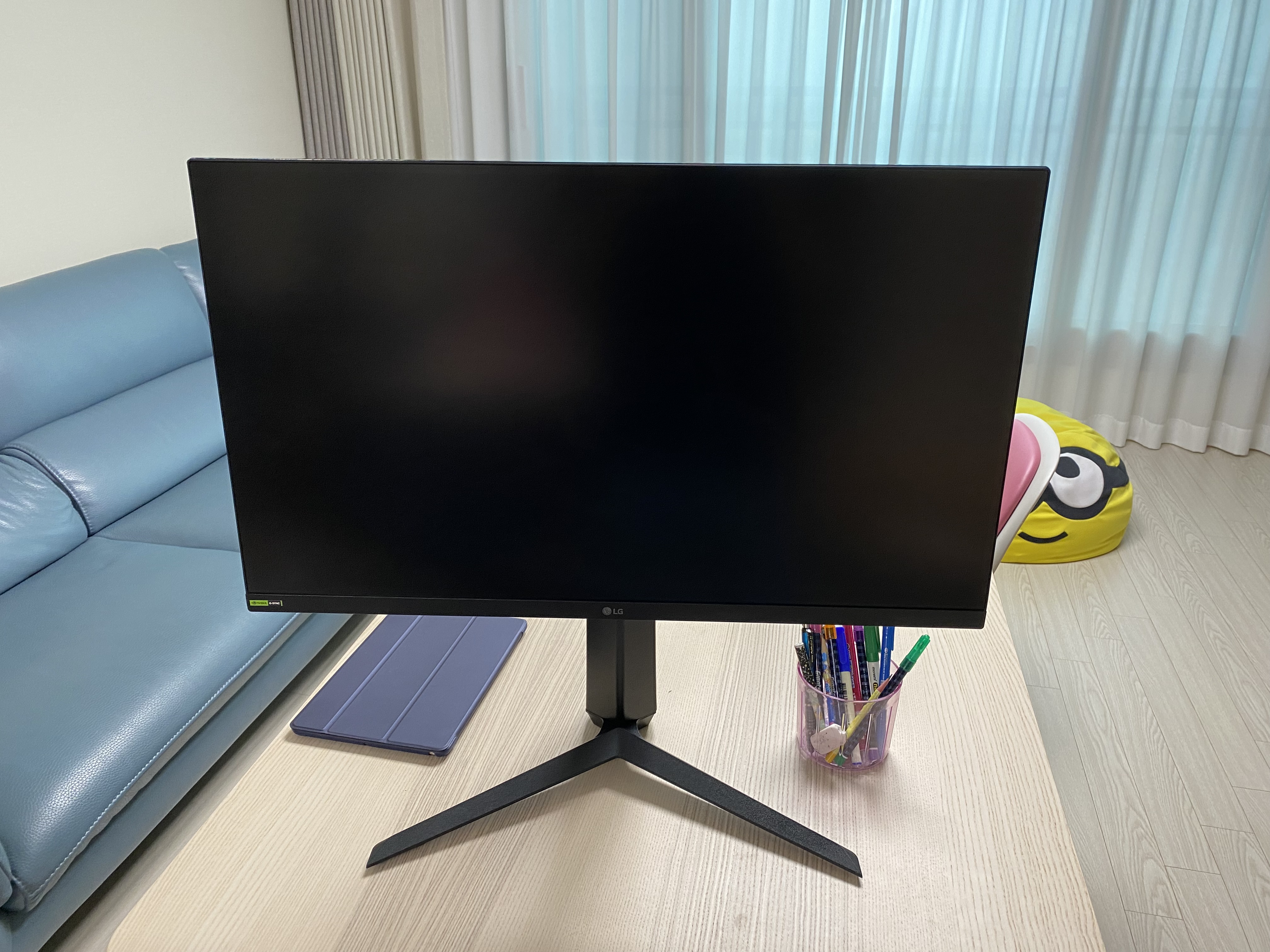 LG 게이밍 모니터는 거치대가 참 좋습니다. 살 때마다 매번 느낍니다. 튼튼하고 모니터 높이조절, 위아래 각도조절 움직임도 괜찮고. 아무튼 마음에 듭니다.