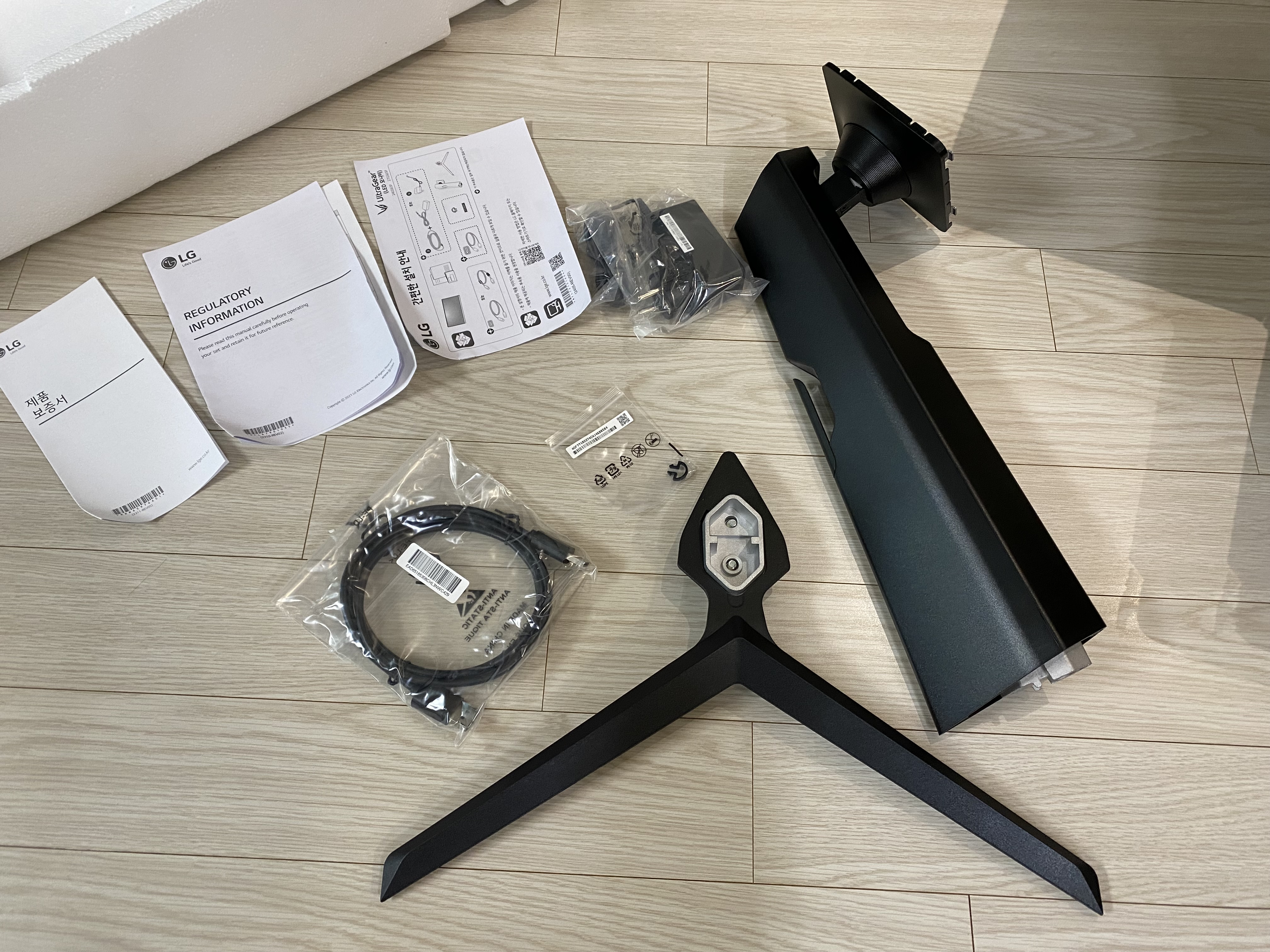 LG 27GS65F 27인치 울트라기어 게이밍모니터 본체를 제외한 상품 구성은 이렇습니다.