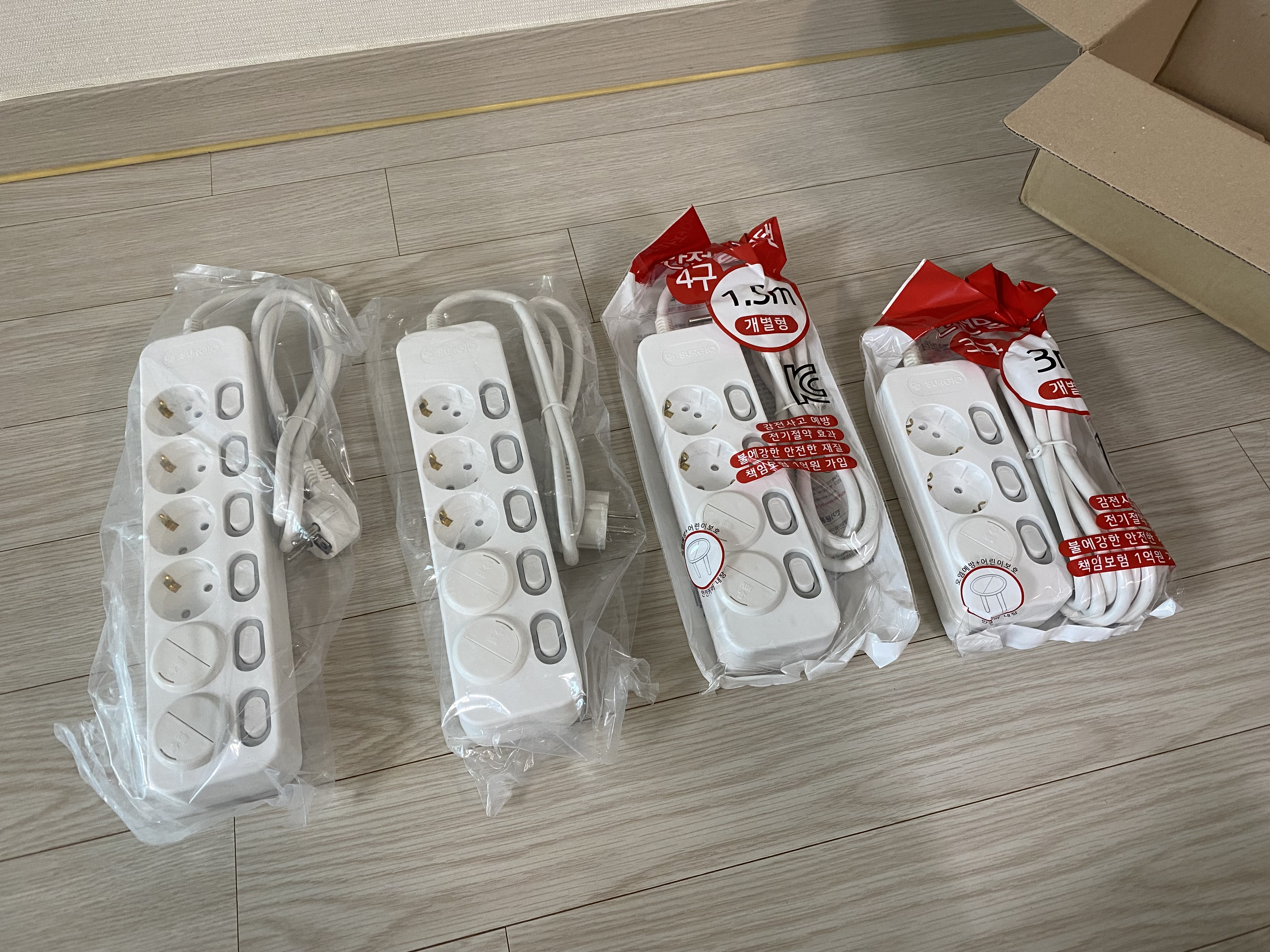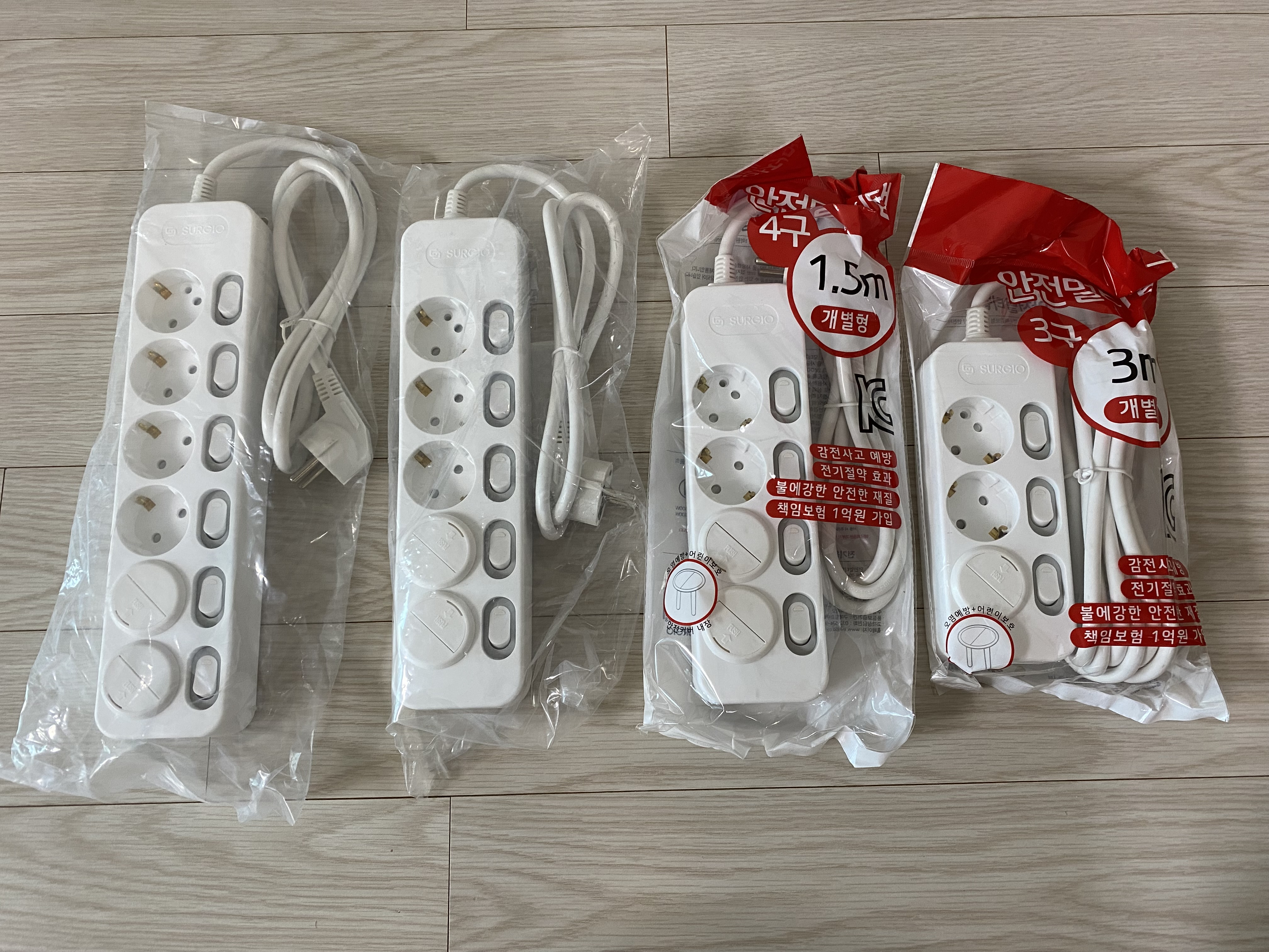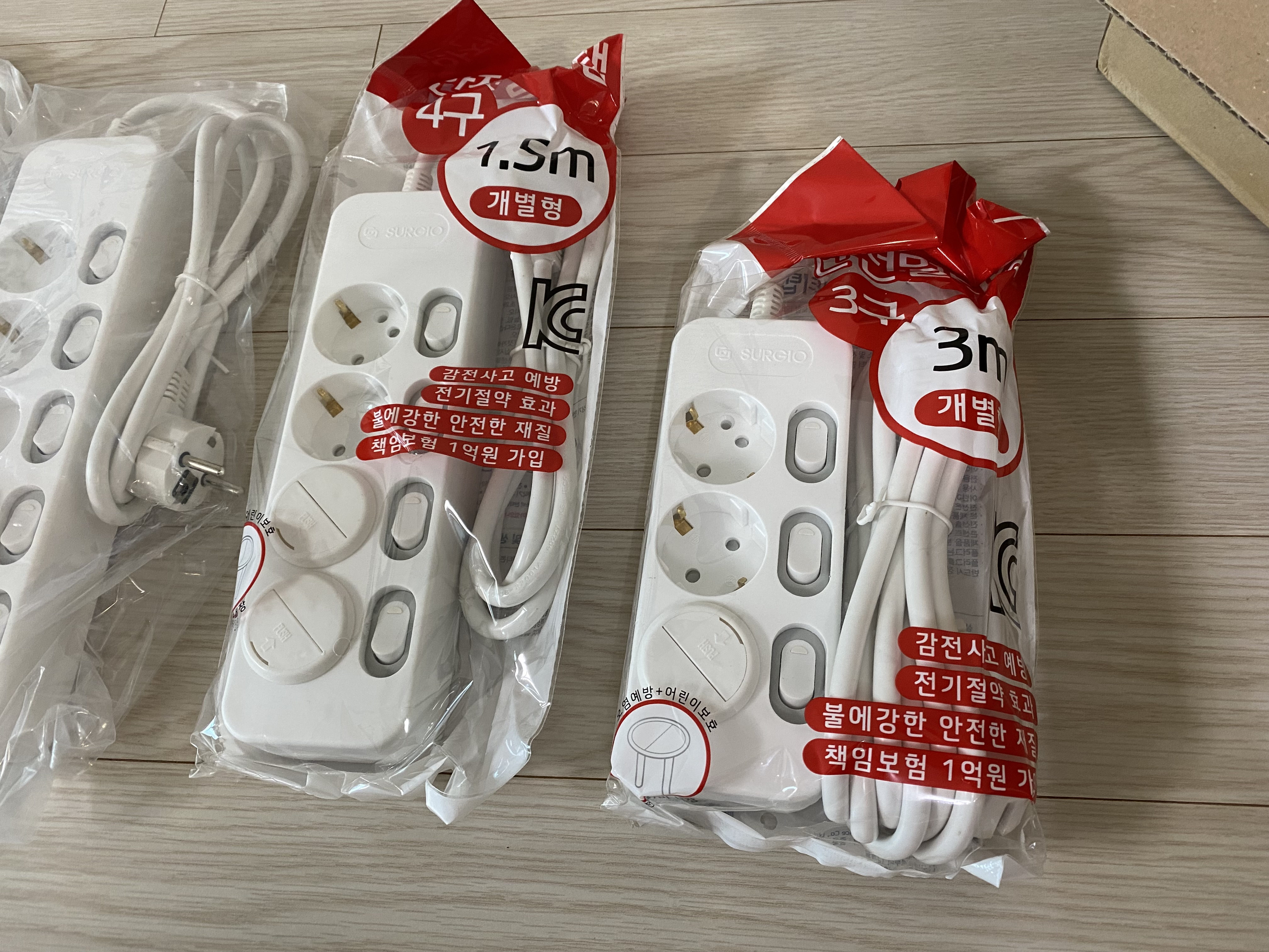 써지오 멀티탭 6구, 5구, 4구, 3구 이렇게 4개. 길이도 1.5m, 3m 필요에따라 종류별로 샀습니다.